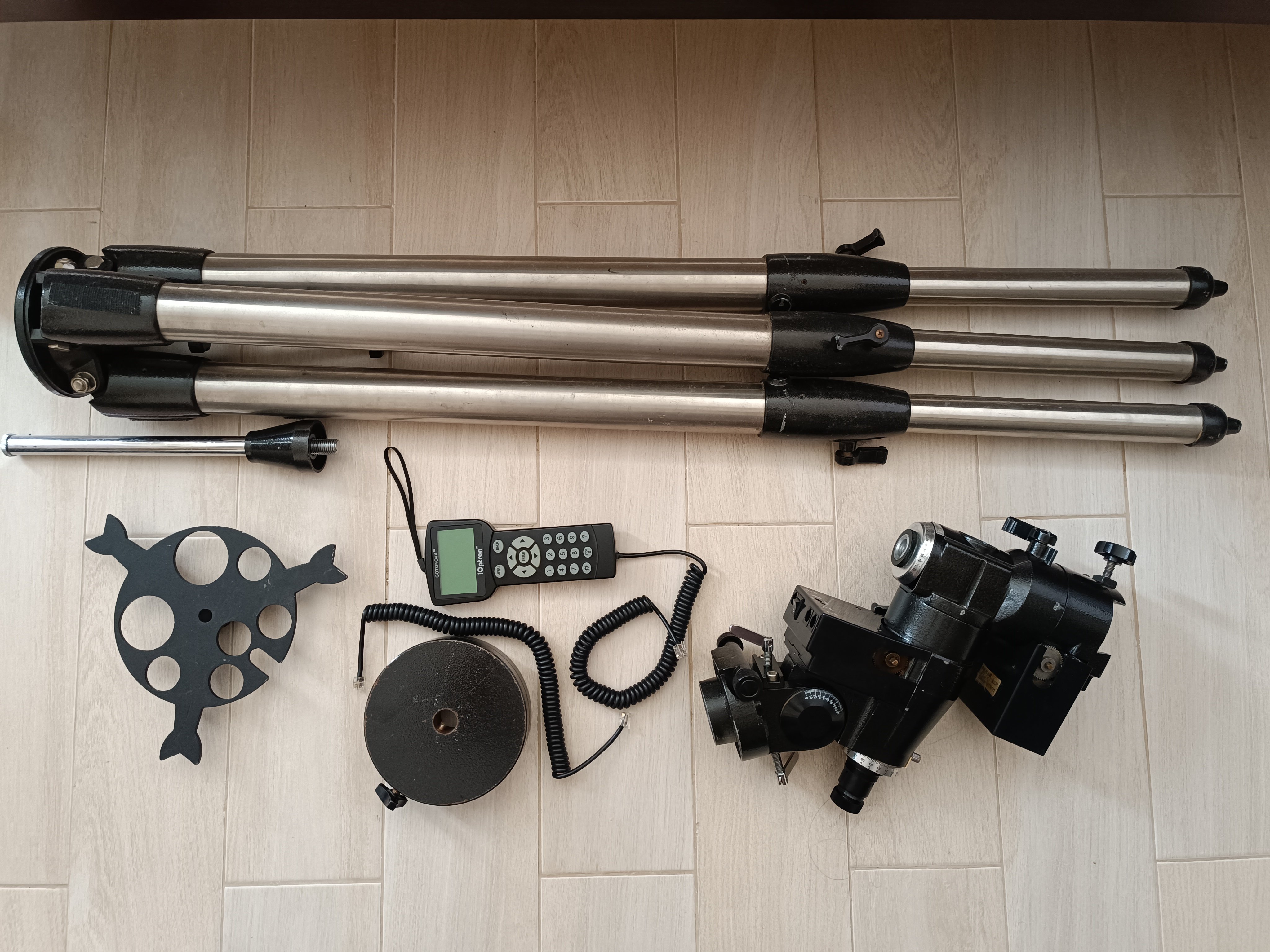 Μαζί περιλαμβάνεται και το 2ιντσο τριποδο, ένα αντίβαρο, polarscope και το accessory tray,