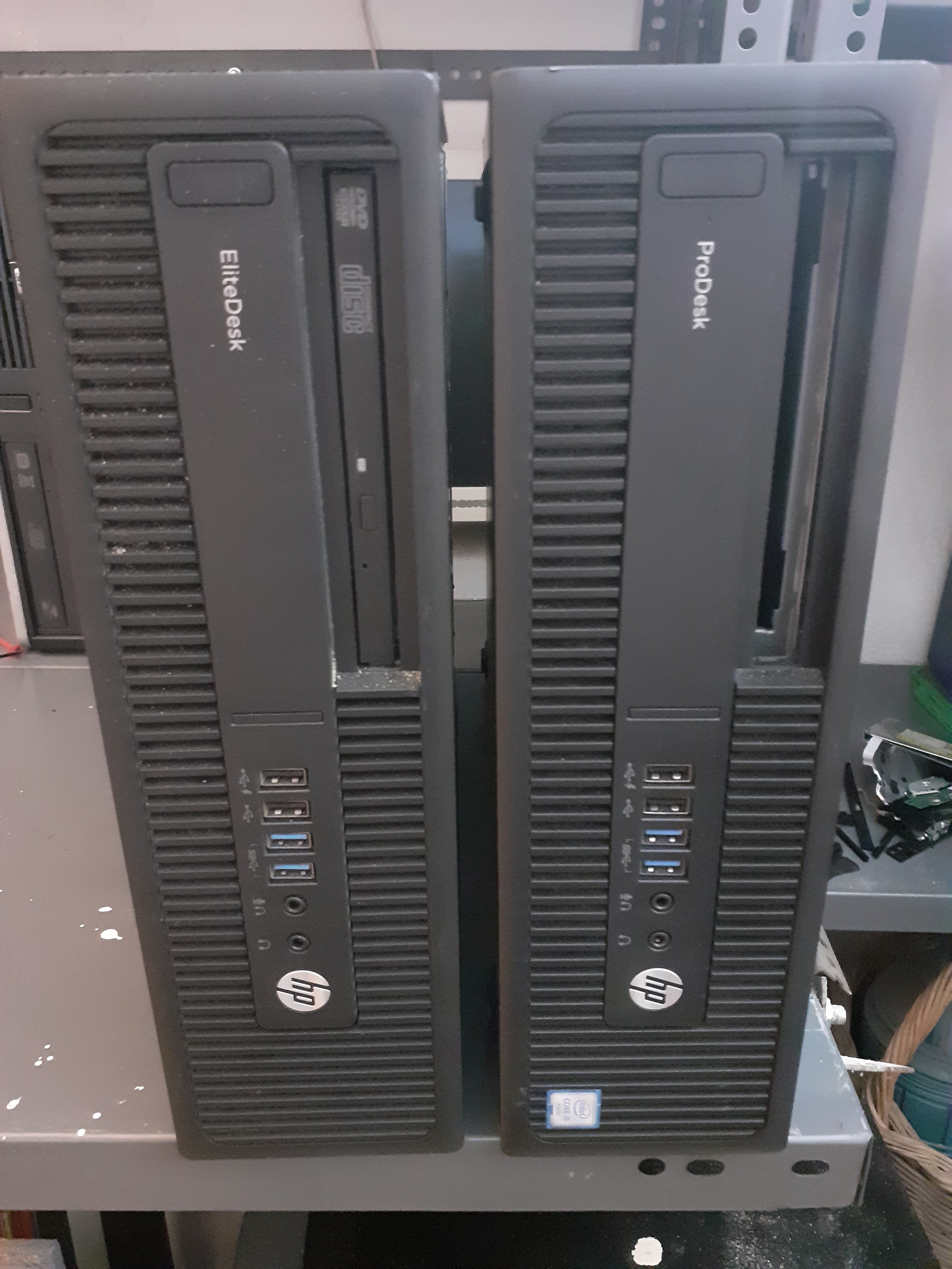Πωλούνται τα δύο παρακατω sff desktop HP 600 g2 Elitedesk χωρίς μνήμη-επεξεργαστή και σκληρό δίσκο. Αγοράστηκαν για μόνιμη τοποθέτηση σε ταράτσα-σπιτάκι χωρίς την ανάγκη λαπτοπ αλλά δυστηχώς το σχέδιο δεν έγινε ποτέ λόγω πολεοδομίας. Δεν ξέρω αν λειτουργούν μιας και ποτέ δεν δούλεψαν. Θα ηταν ευκολο και φτηνο να βρίσκαμε εναν ι5-6500 ή εναν ι7-6700 λιγη μνημη DDR4-2133 και εναν ssd. Επίσης διαθέτουν 4 θύρες USB 2.0 και 6 θύρες USB 3.0. Υποστηρίζουν και Windows 7 και Windows 10.