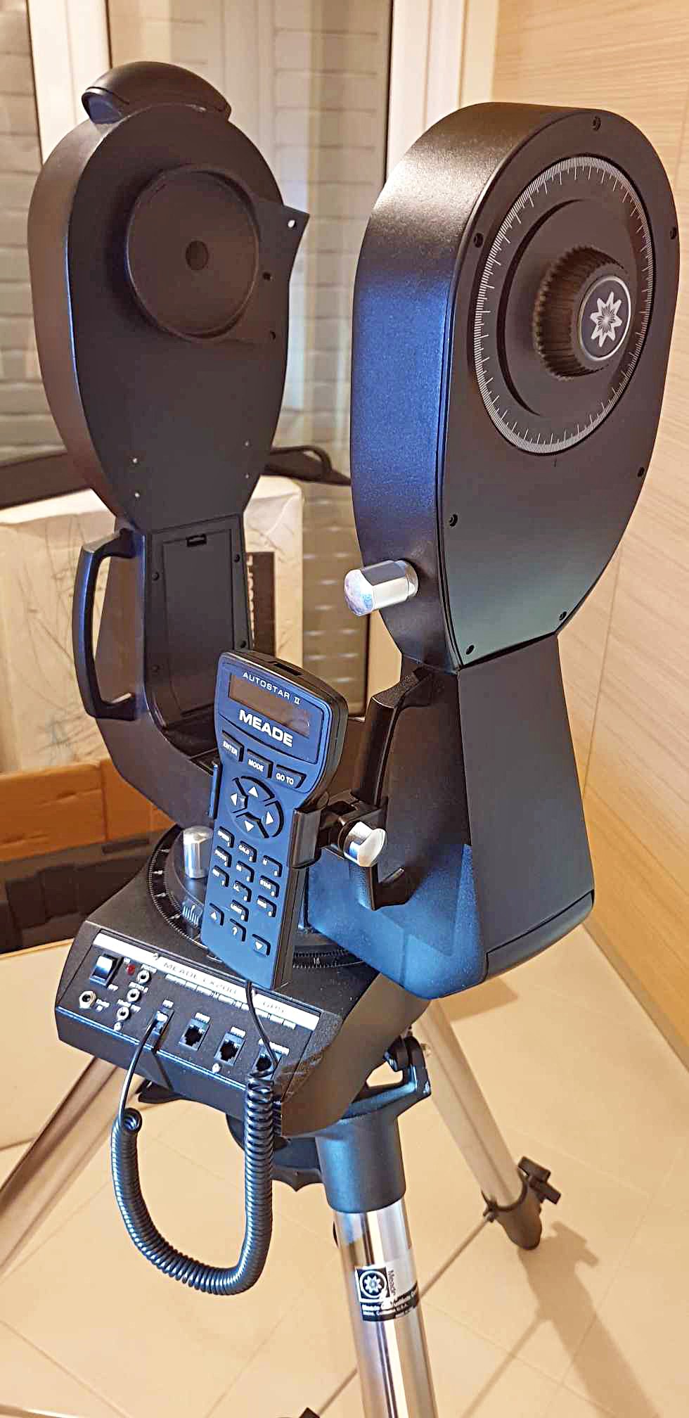 1 --- Φουρκέτα (fork mount) από MEADE LX200 8in GPS με το χειριστήριό του. Έχει βλάβη σε κάποια πλακέτα στα ηλεκτρονικά της στήριξης. 100 ευρώ
