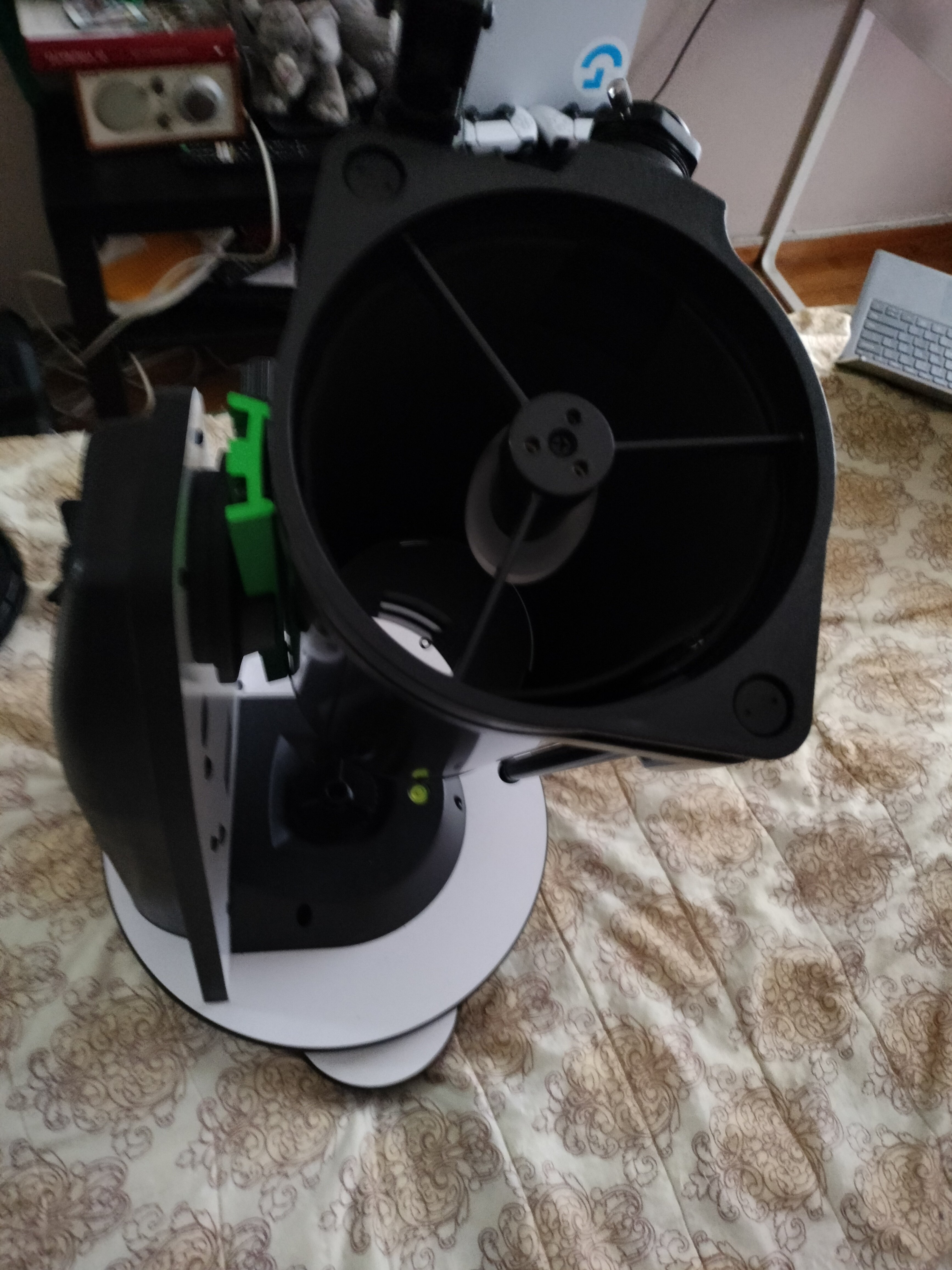 Σε άριστη κατάσταση, ελάχιστα χρησιμοποιημένο με ιδιοκατασκευή πτυσσόμενο φωτοχιτώνιο (φαίνεται στις φωτό). Καθώς έχω άλλο φορητό τηλεσκόπιο και το συγκεκριμένο δεν χρησιμοποιείται, καλό είναι να μην μαζεύει σκόνη και να χρησιμοποιηθεί αλλού.