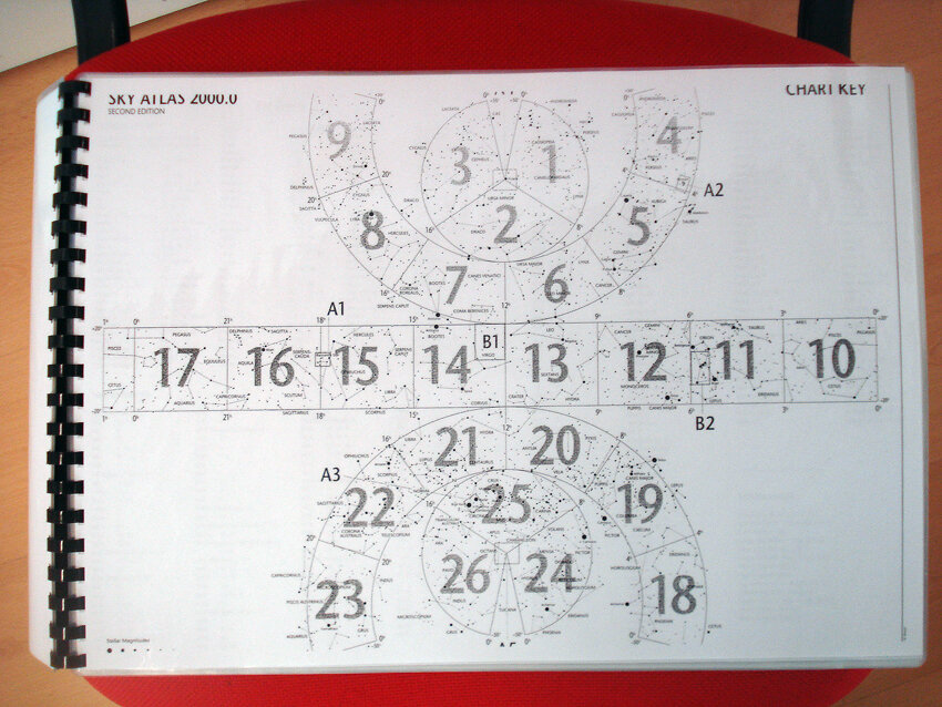 Πωλείται ο γνωστός SKY ATLAS 2000 Desk Version. Είναι πλήρως πλαστικοποιημένος σε σπιράλ και μέγεθος σελίδων Α3. Επίσης όπως φαίνεται στις φωτογραφίες είναι σχεδιασμένοι με ανεξίτηλο μαρκαδόρο οι αστερισμοί.