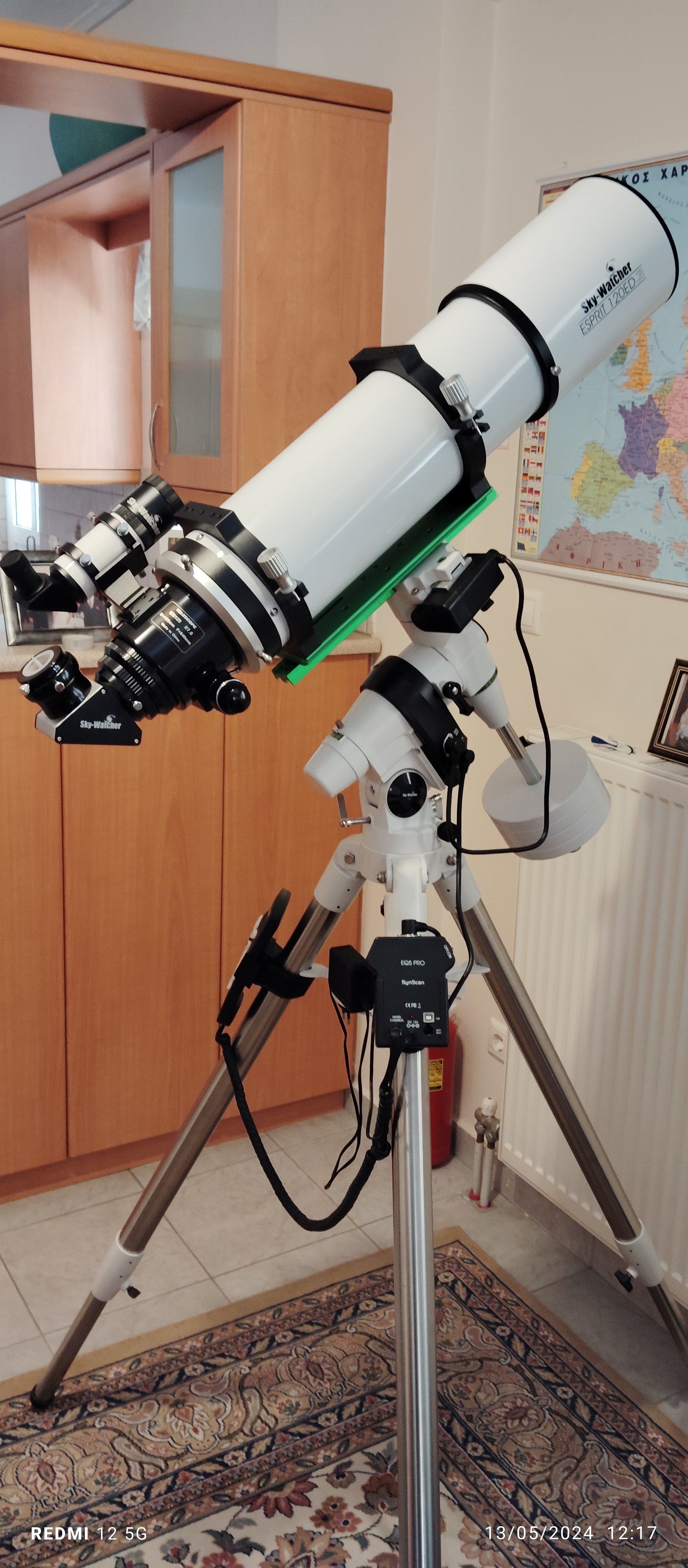 Πωλείται σε κατάσταση καινούργιου skywatcher esprit 120ed super apo triplet και ισημερινη στήριξη EQ5 goto πλήρως αυτοματοποιημενη τιμή πακέτου 2800 ευρώ. Βασίλης από Αθήνα 697 338 9174.