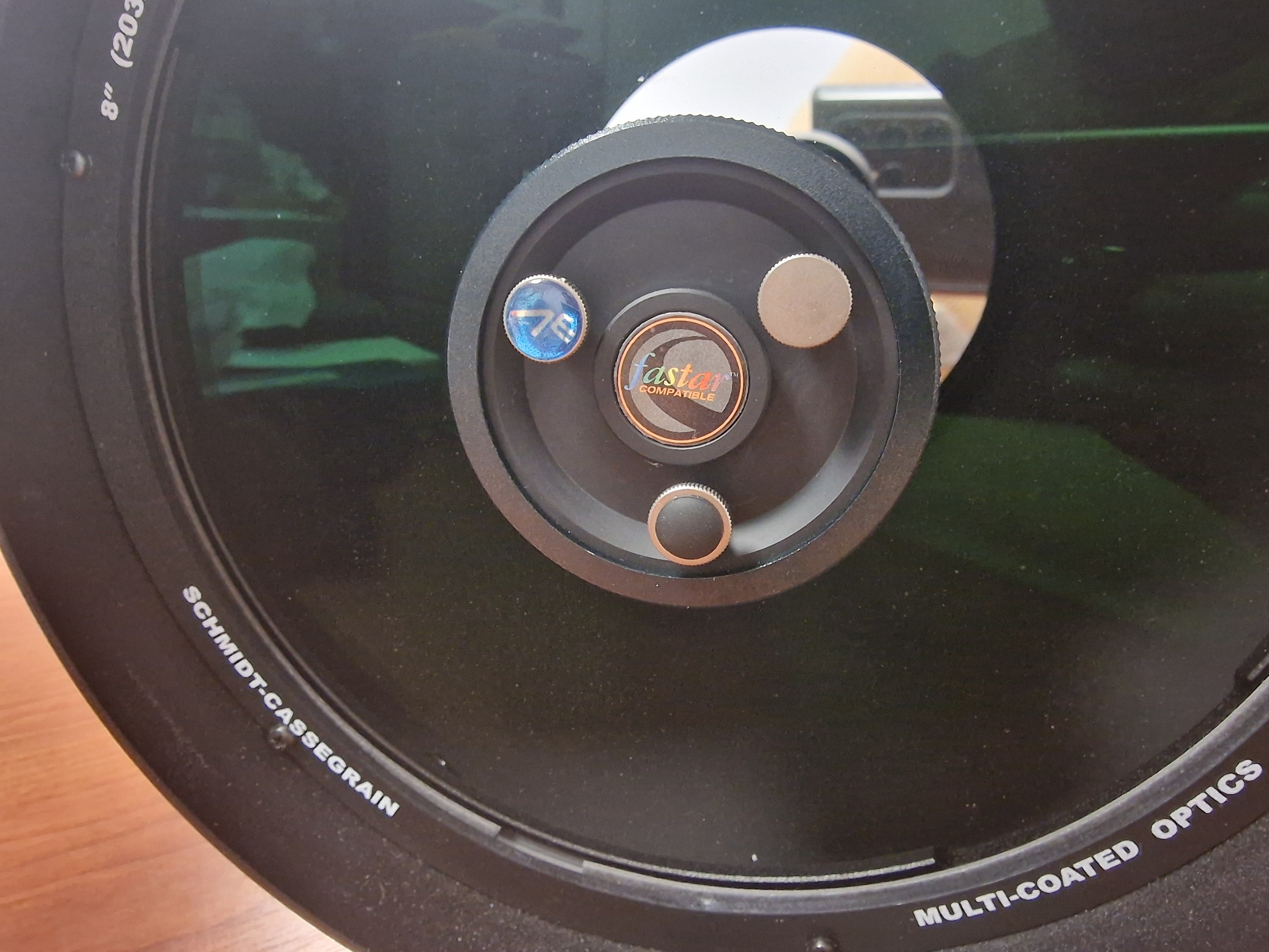 Celestron sct8 νέο μοντέλο με αλλαγμένο φαρδύ dovetail plate(υπάρχει και το vixen style) ,και αλλαγμένες βίδες ευθυγραμμισης για εύκολο collimation.Υποδοχη για fastar.Επισης διαγωνιο,ερευνητής και ένα προσοφθαλμιο. Βάρος σωληνα 5 κιλά.