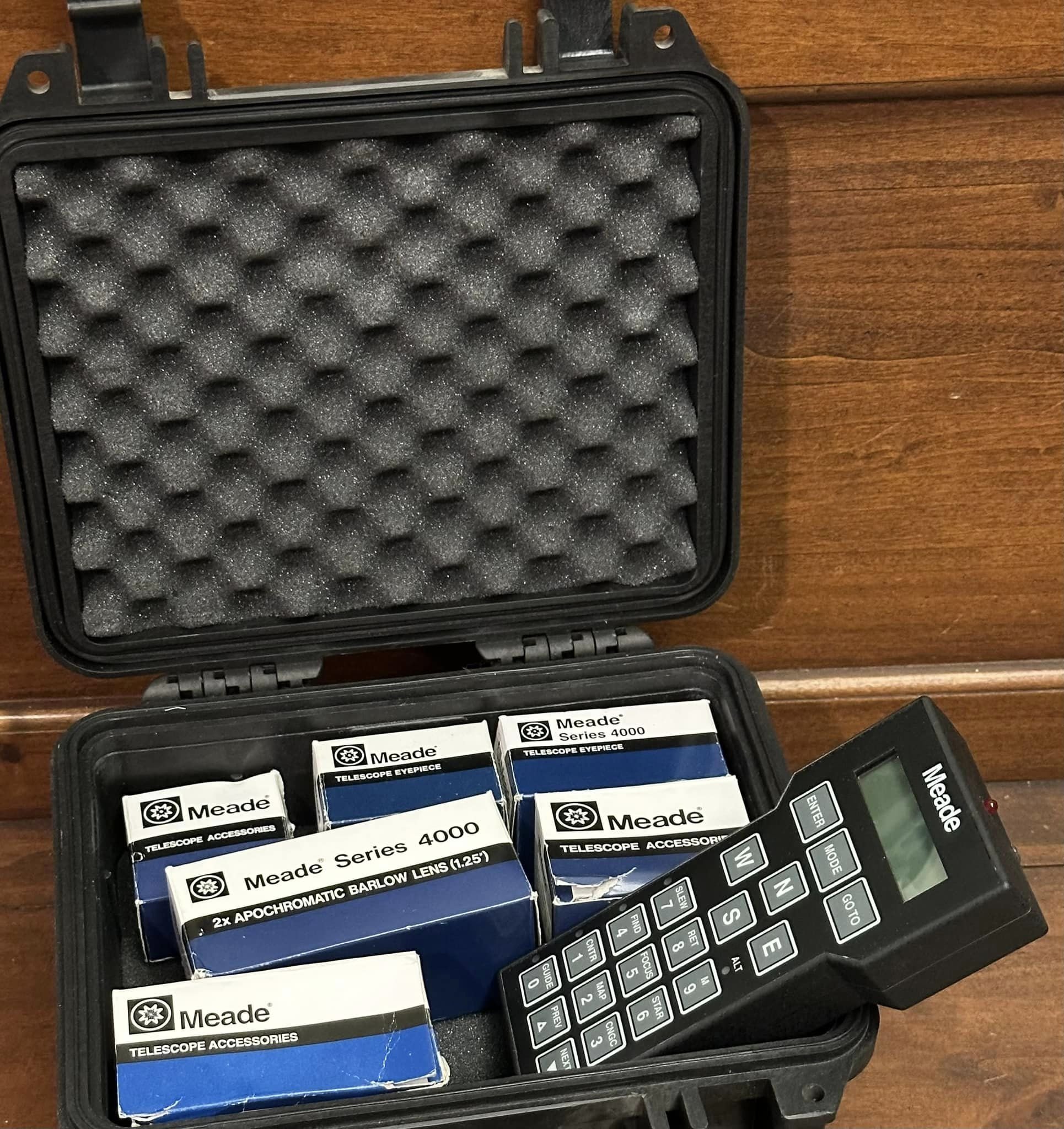 Meade LX 200 8'' σε άριστη λειτουργική κατάσταση με πλήρες σετ προσοφθαλμίων, φίλτρων, Barlow κ.λ.π. Επιπλέον ηλιακό φίλτρο και βαλιστάκι Pelican για μεταφορά των αξεσουάρ. ΤΙμή 1300 ευρώ.