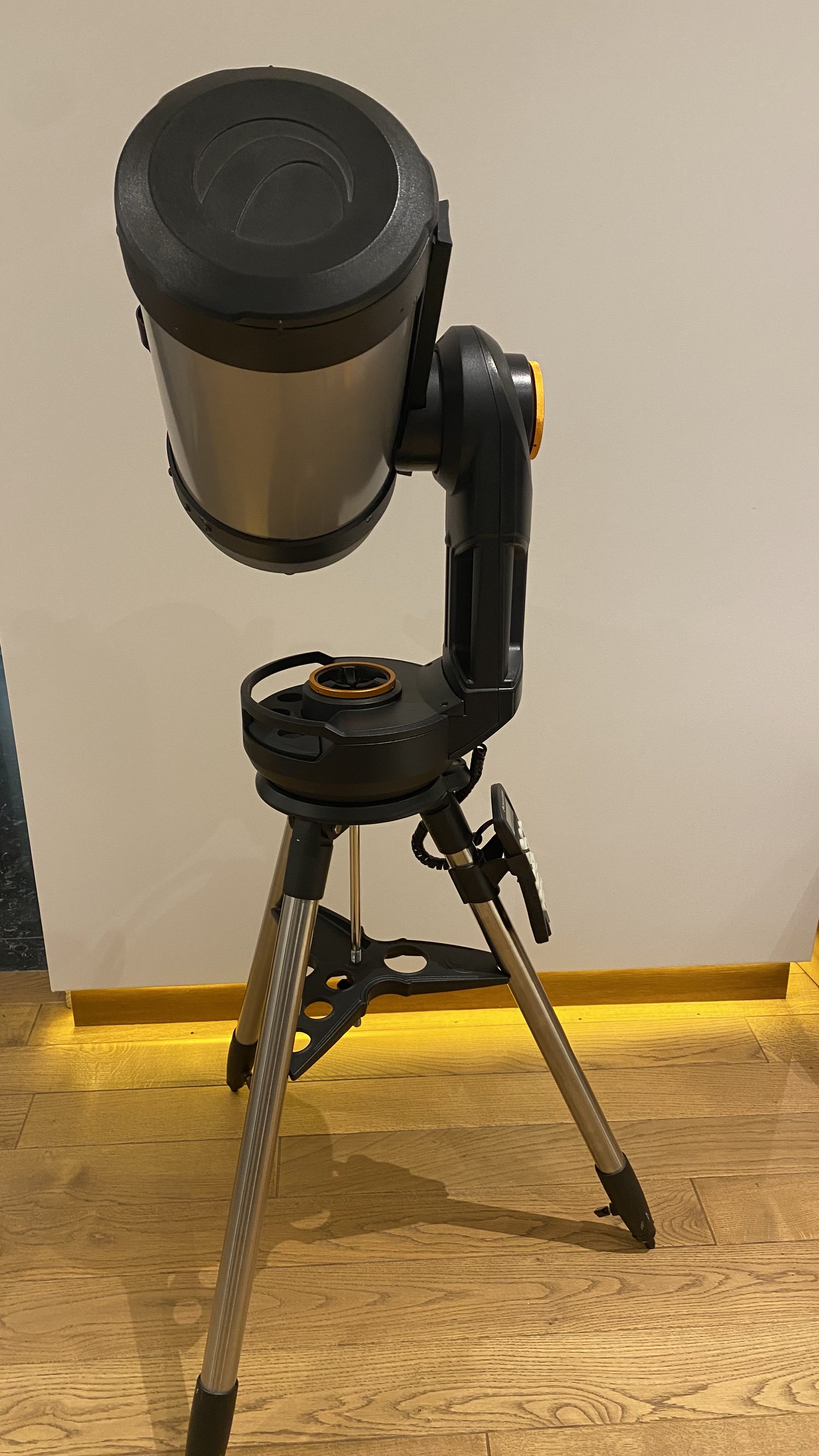Το τηλεσκόπιο είναι πραγματικά σε άριστη κατάσταση! Είναι πραγματική ευκαιρία καθώς έχει χρησιμοποιηθεί μόνο 3 φορές σε ταράτσα, πότε στην ύπαιθρο, δεν έχει εκτεθεί σε πολύωρη παρατήρηση Ήλιου ή Αστροφωτογράφιση. Η λειτουργία του από την εφαρμογή του κινητού, καθιστά την εύρεση πλανητών και στοιχείων βαθέως ουρανού να μοιάζει με παιχνίδι! Μαζί συμπεριλαμβάνονται προσοφθάλμια Celestron 40mm και 13mm. Δεκτός κάθε έλεγχος! Τιμή συζητήσιμη..