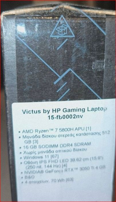 Hp Gaming laptop VICTUS R7-5800, GeForce rx 3050 Ti 4g