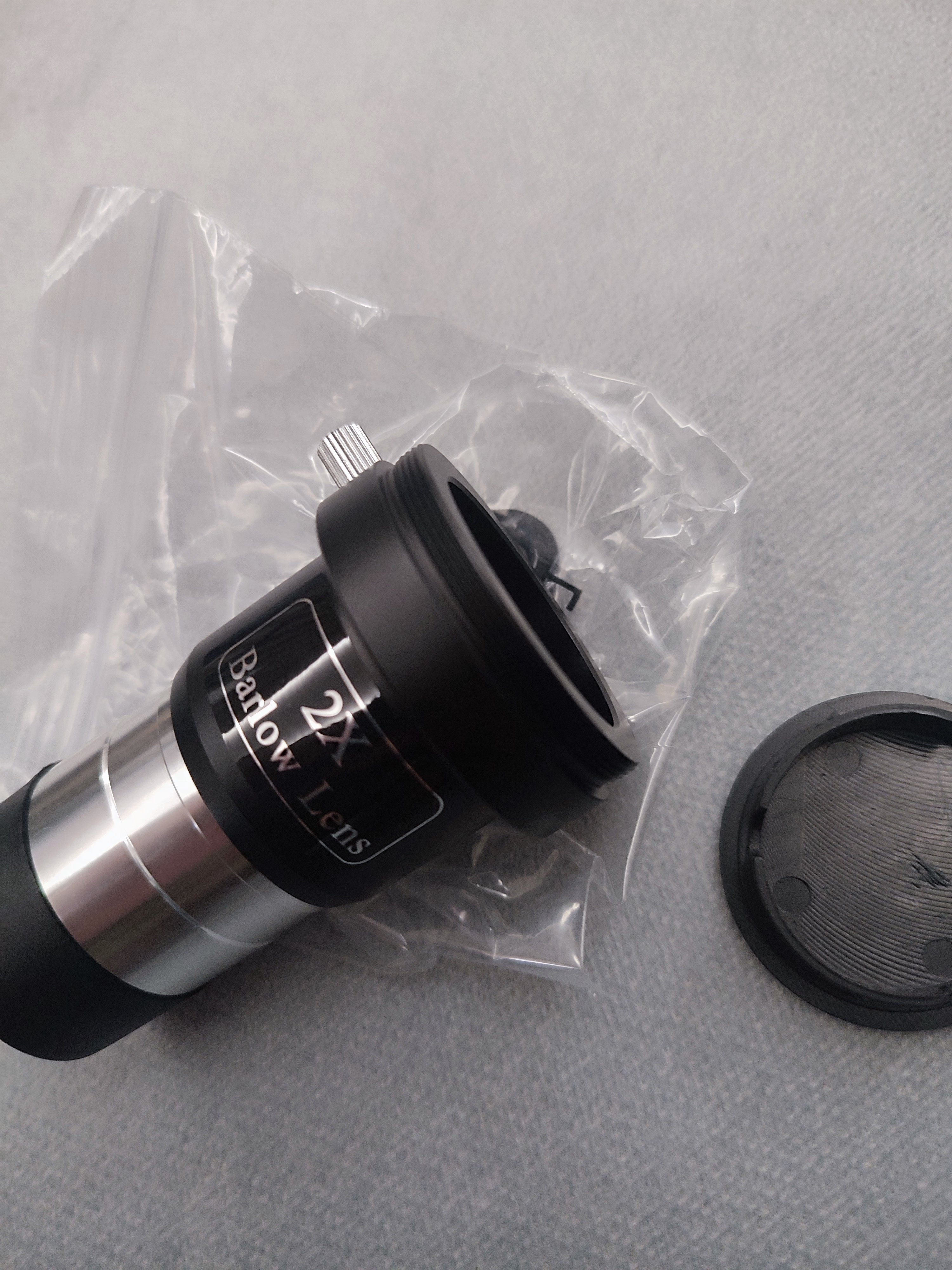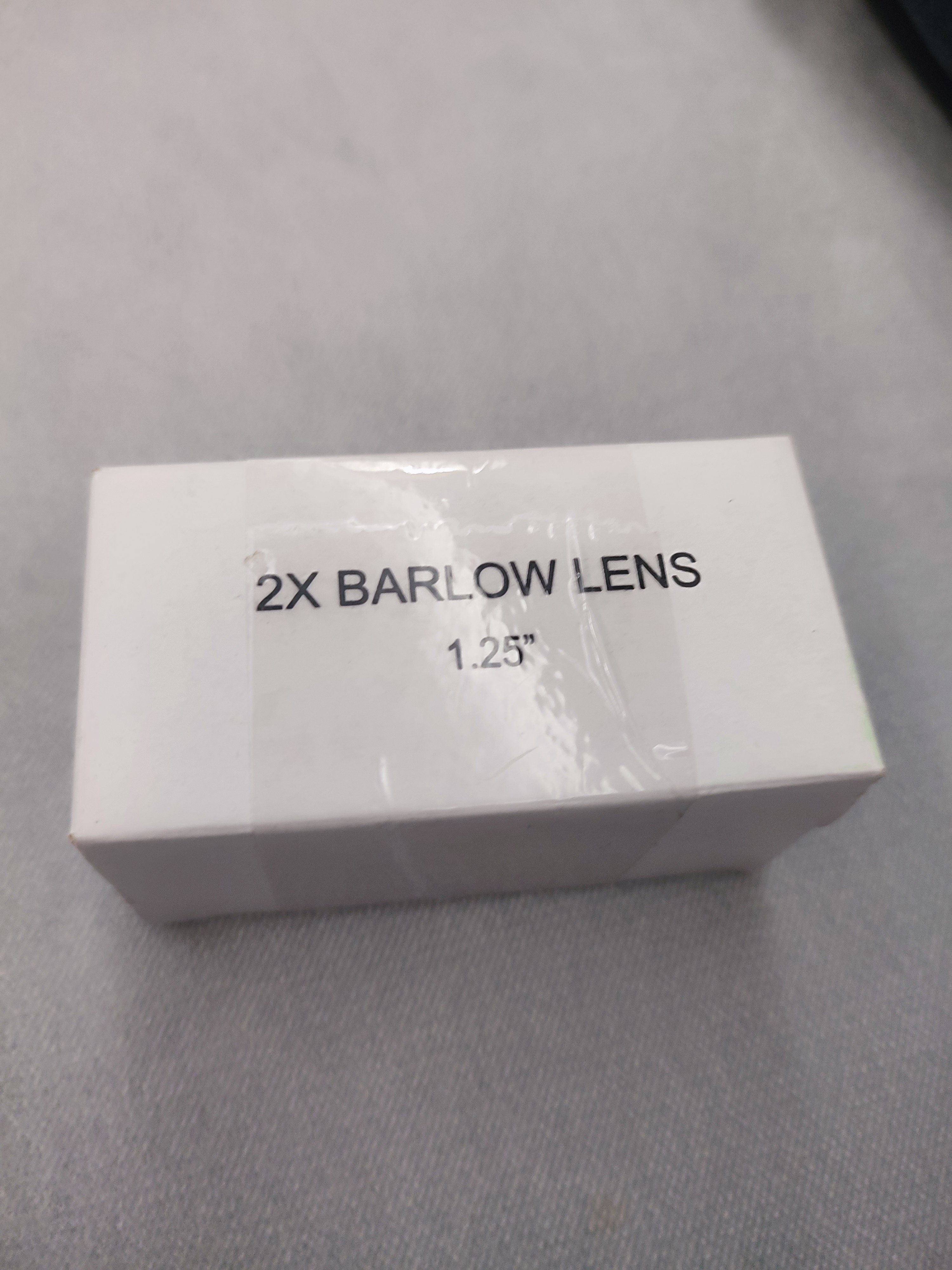 Πωλείται ο 2x Barlow της φωτογραφίας καινούργιος. Έρχεται από πακέτο τηλεσκοπίου Skywatcher. Είναι καλής ποιότητας Barlow ο οποίος έχει το πλεονέκτημα να λειτουργεί σαν ανταπτορας με υποδοχή m42 για να βάλετε απευθείας τη κάμερα σας. Ο Barlow στο κάτω μέρος επίσης είναι αποσπώμενος και γίνεται περίπου 1,5x αν το κουμπωσετε απευθείας σε προσοφθαλμιο χωρίς το κύριο σώμα.
