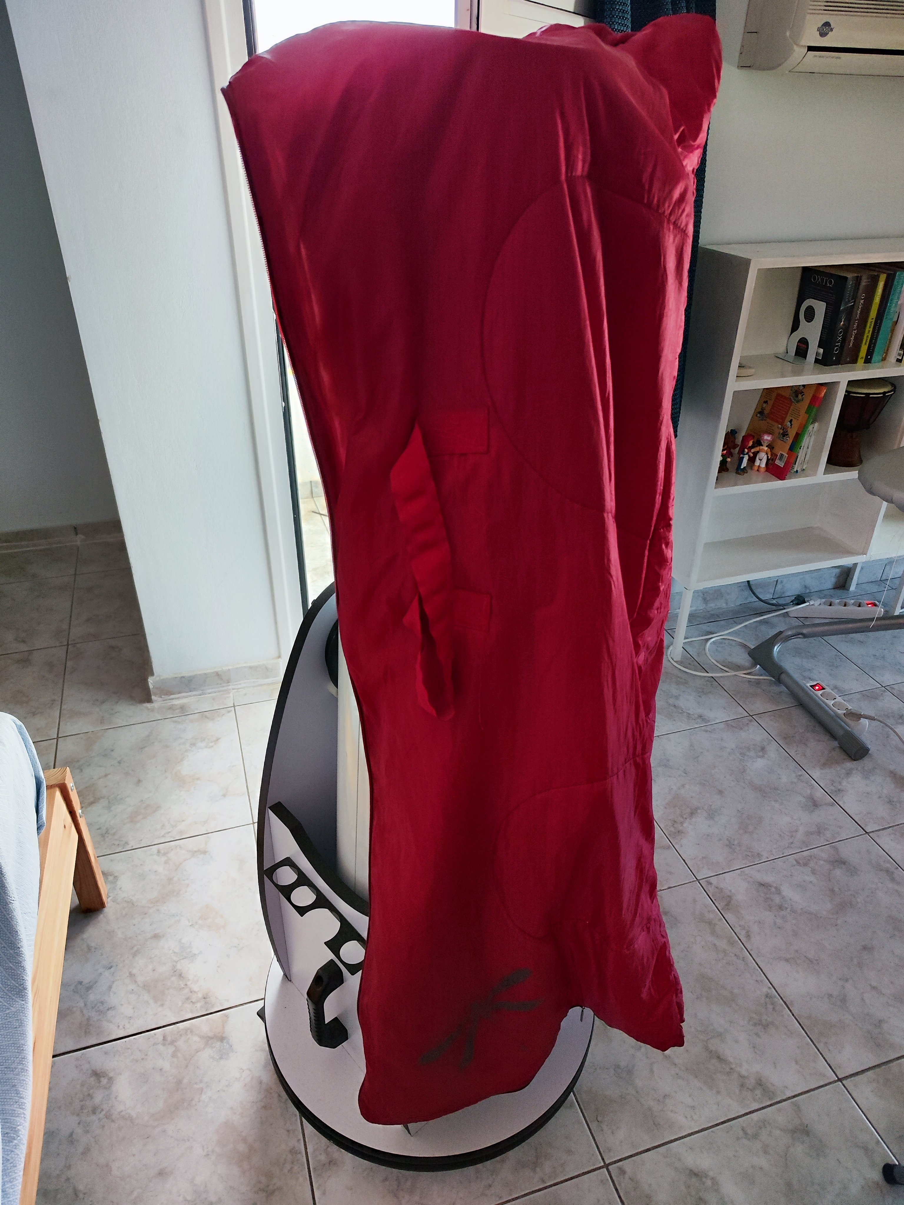 Ο σωλήνας διαθέτει custom θήκη με χειρολαβές, μετατροπή από υπνόσακο (ο κόκκινος της φωτογραφίας), ο οποίος χρησιμοποιείται και για προστασία από τη σκόνη όταν είναι στημένο.