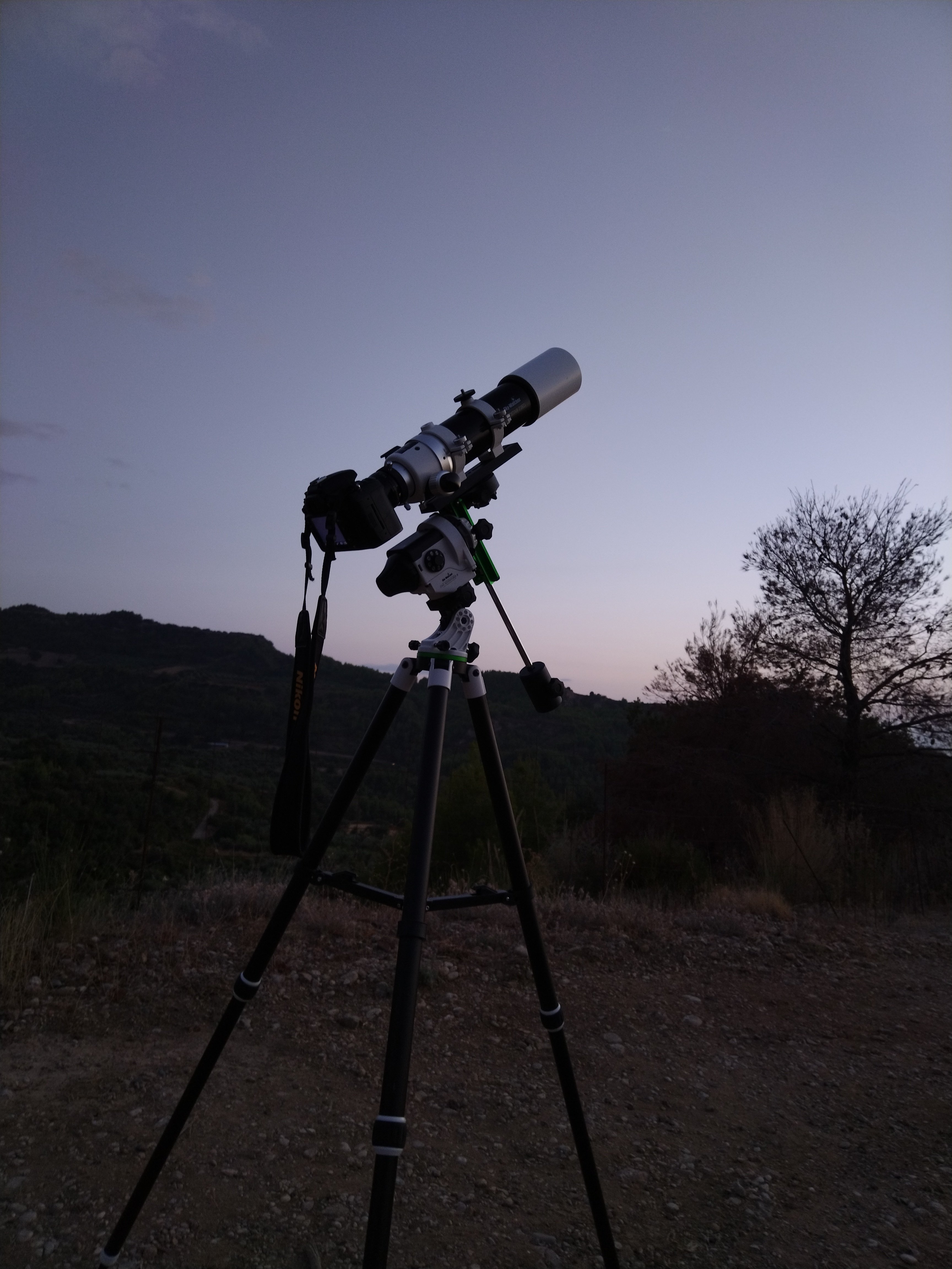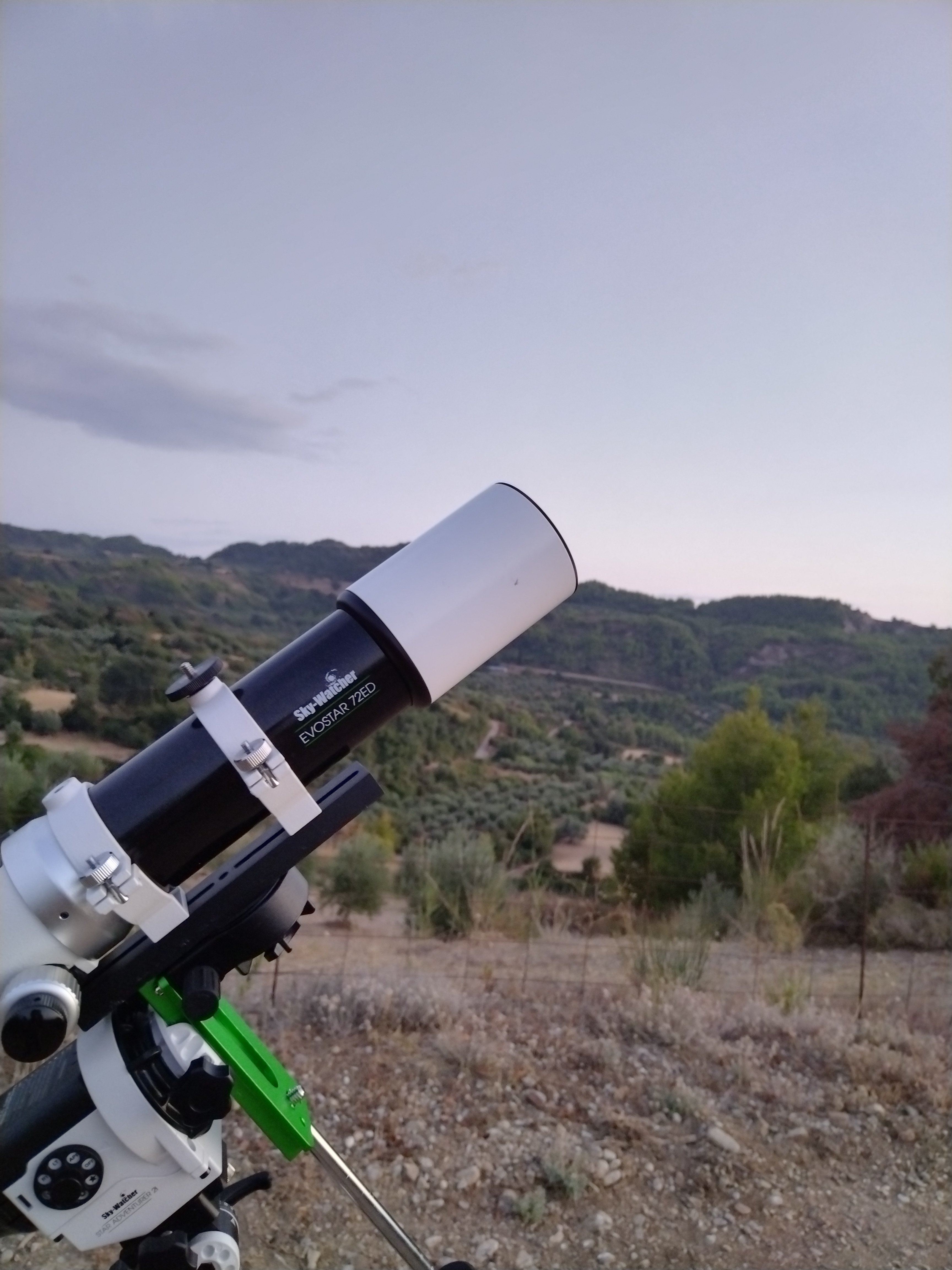 1 Τηλεσκόπιο skywatcher evostar 72ed με φλατενερ 1:1 τα καπάκια του με την αυθεντικη βαλίτσα του, το ορίτζιναλ dovetail καθώς κι ένα πιο μακρύ για καλύτερο ζύγισμα.