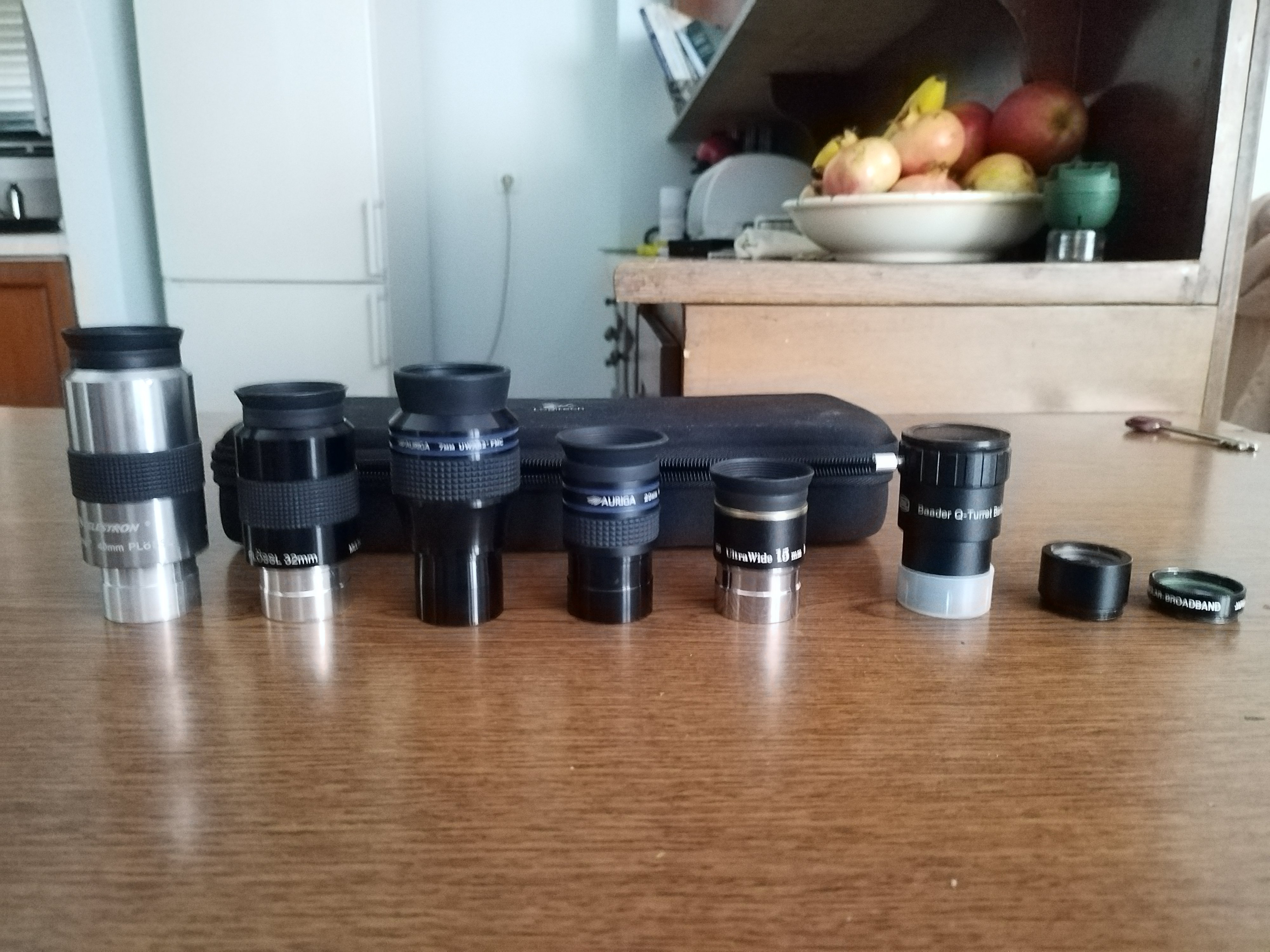 SkyWatcher UWA 15mm, SkyWatcher PLOSSL 32mm, Celestron OMNI 40mm, Auriga WA65 FMC 20mm,