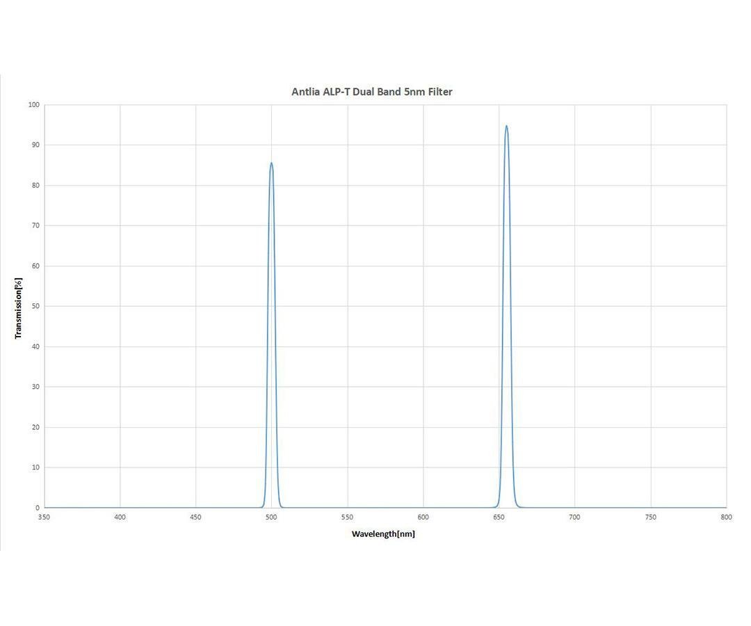Το φίλτρο διπλής ζώνης Antlia ALP-T 5nm (Gold Filer) είναι ένα φίλτρο διπλής διέλευσης γραμμής που σχεδιάστηκε για χρήση κυρίως με έγχρωμες κάμερες μίας λήψης (OSC) όπως φωτογραφικές μηχανές DSLR ή αστρονομικές κάμερες OSC.