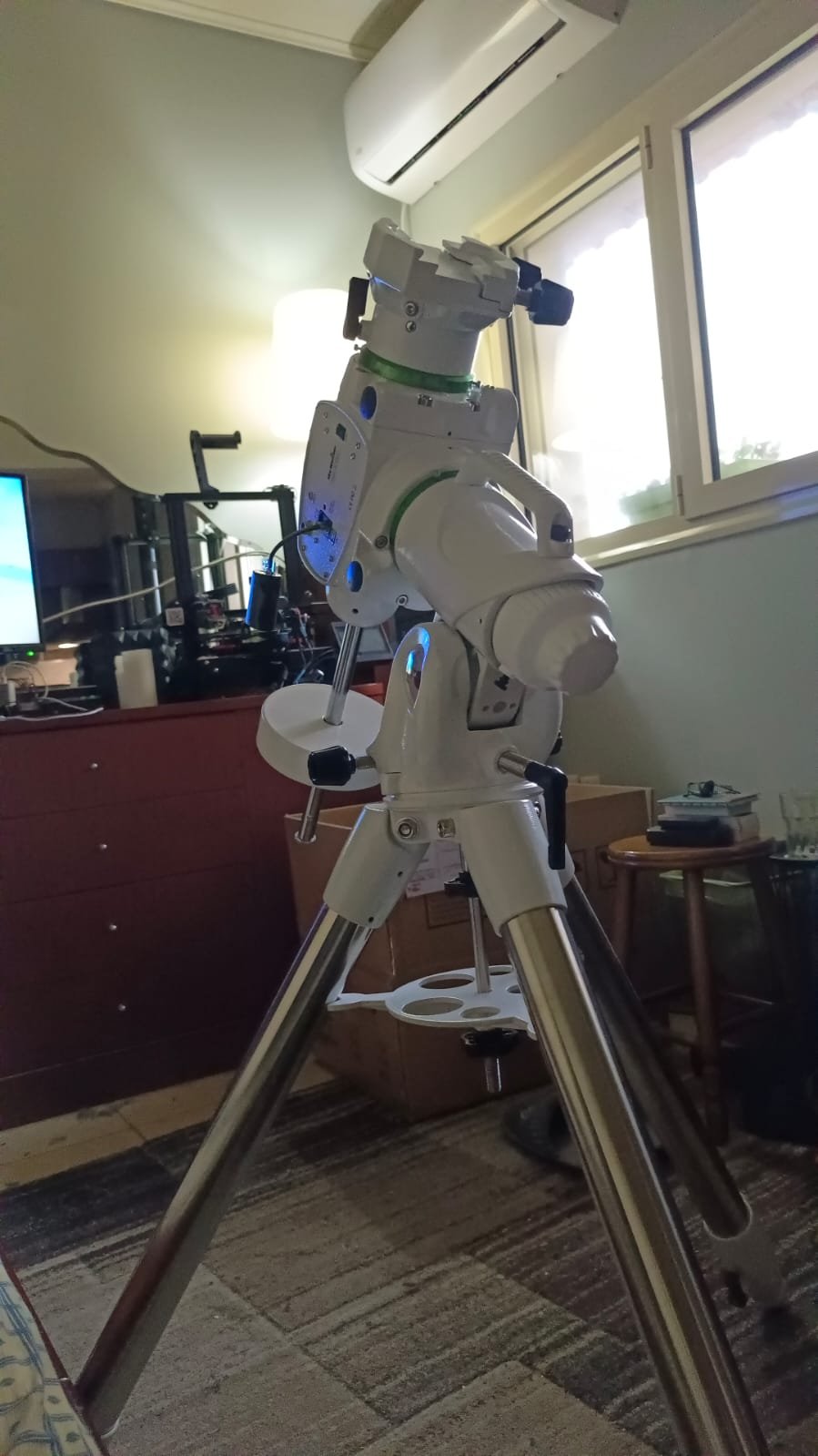 1. Skywatcher EQ6-Ri σε άριστη κατάσταση(οδήγηση στα 0,4 με 0,5. Σύντομα θα ανεβάσω και log ώστε να το διαπιστώσετε), αγορασμένη από το Πλανητάριο Θεσσαλονίκης(εντός εγγύησης για 1 χρόνο ακόμη) μαζί με δύο αντίβαρα(του κουτιού) σε θήκη η οποία θα δοθεί δώρο, όπως επίσης θήκη μεταφοράς Oklop για την βάση. Η βάση δεν έχει χειριστήριο καθώς τα τελευταία κομμάτια έρχονται με το ασύρματο wi-fi και συνδέεται η βάση μεσώ κινητού τηλεφώνου η tablet. Στο πακέτο περιλαμβάνονται η κεφαλή ,τα δυο αντίβαρα και το τρίποδο της βάσης. -Μη διαθέσιμη -