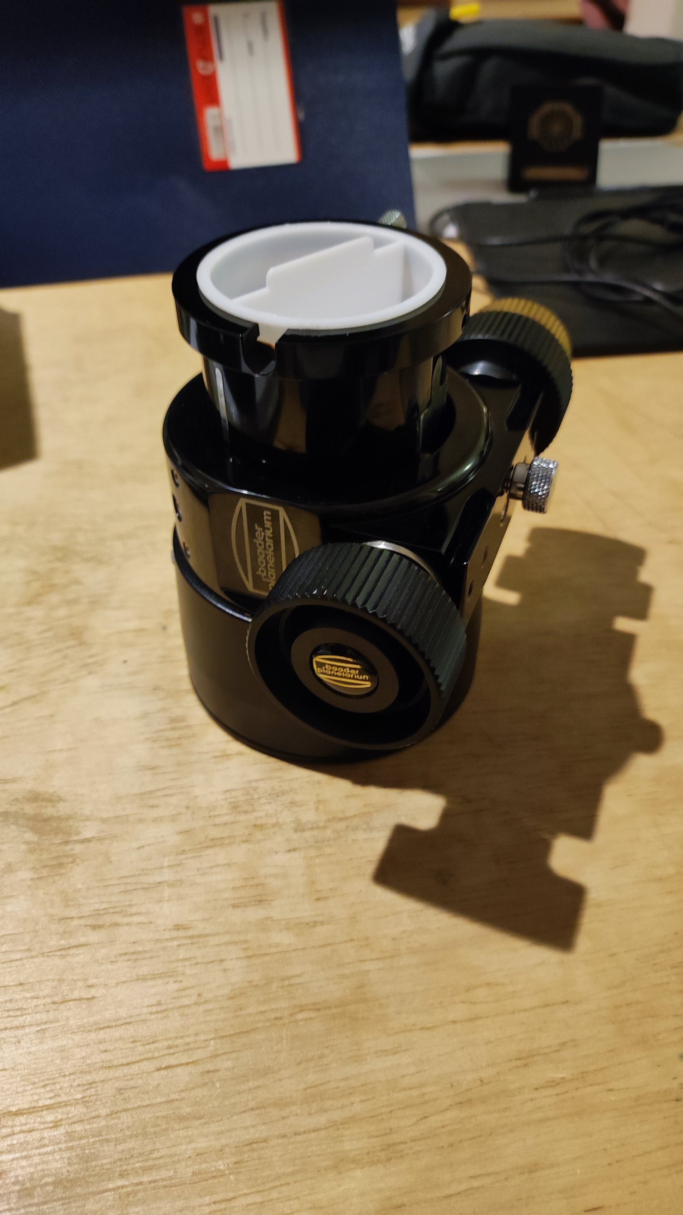 Από τους καλύτερους εστιαστές για τηλεσκόπια Schmidt-Cassegrain με διπλή ροδέλα για πολύ ακριβή ρύθμιση της εστίασης. Αντέχει πάνω οποιοδήποτε προσοφθάλμιο. Τιμή καινούργιου 365€