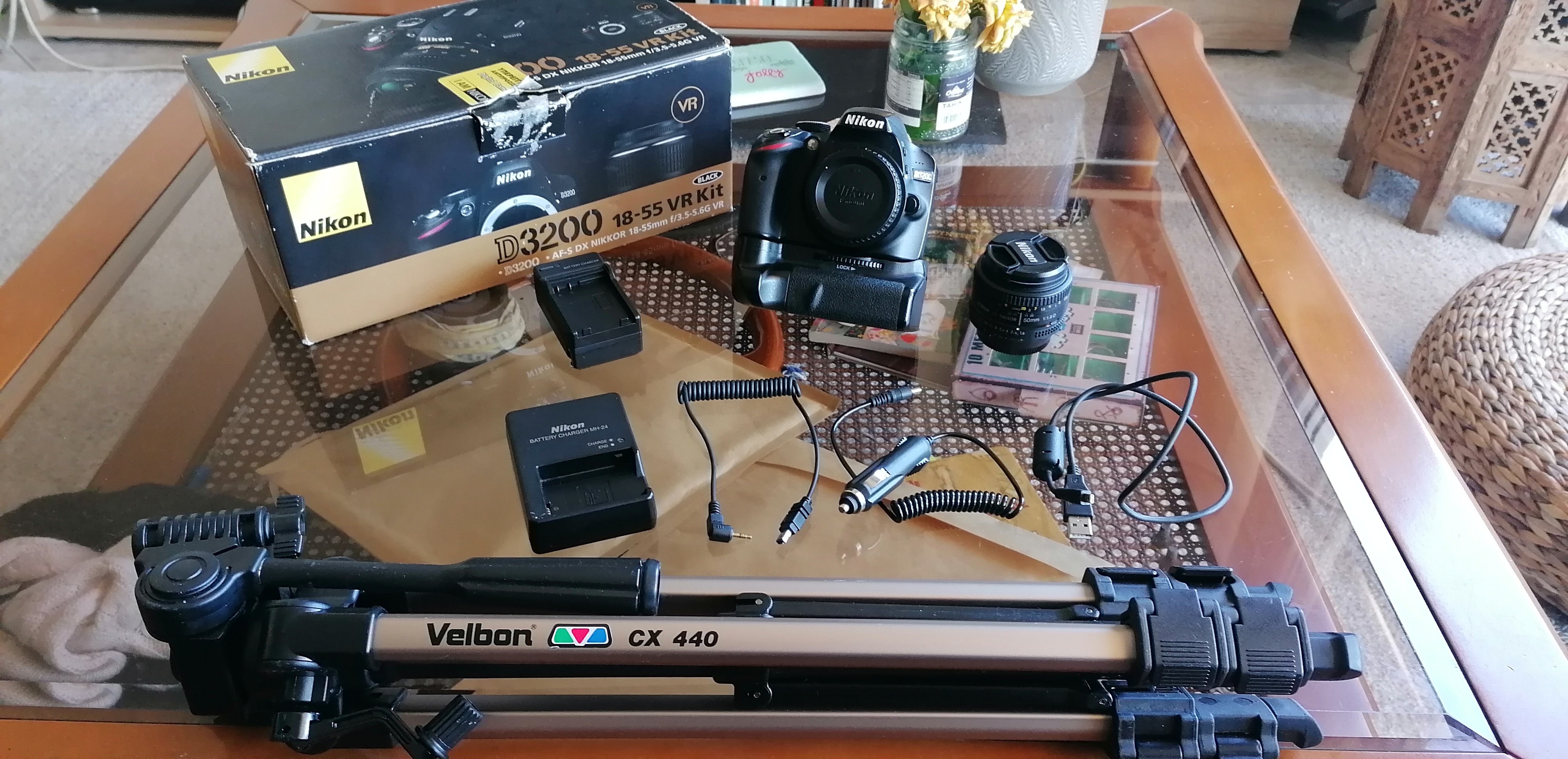 Nikon d3200 με battery pack, τρίποδο αλουμινίου, φακο nikkor 50mm 1.8d