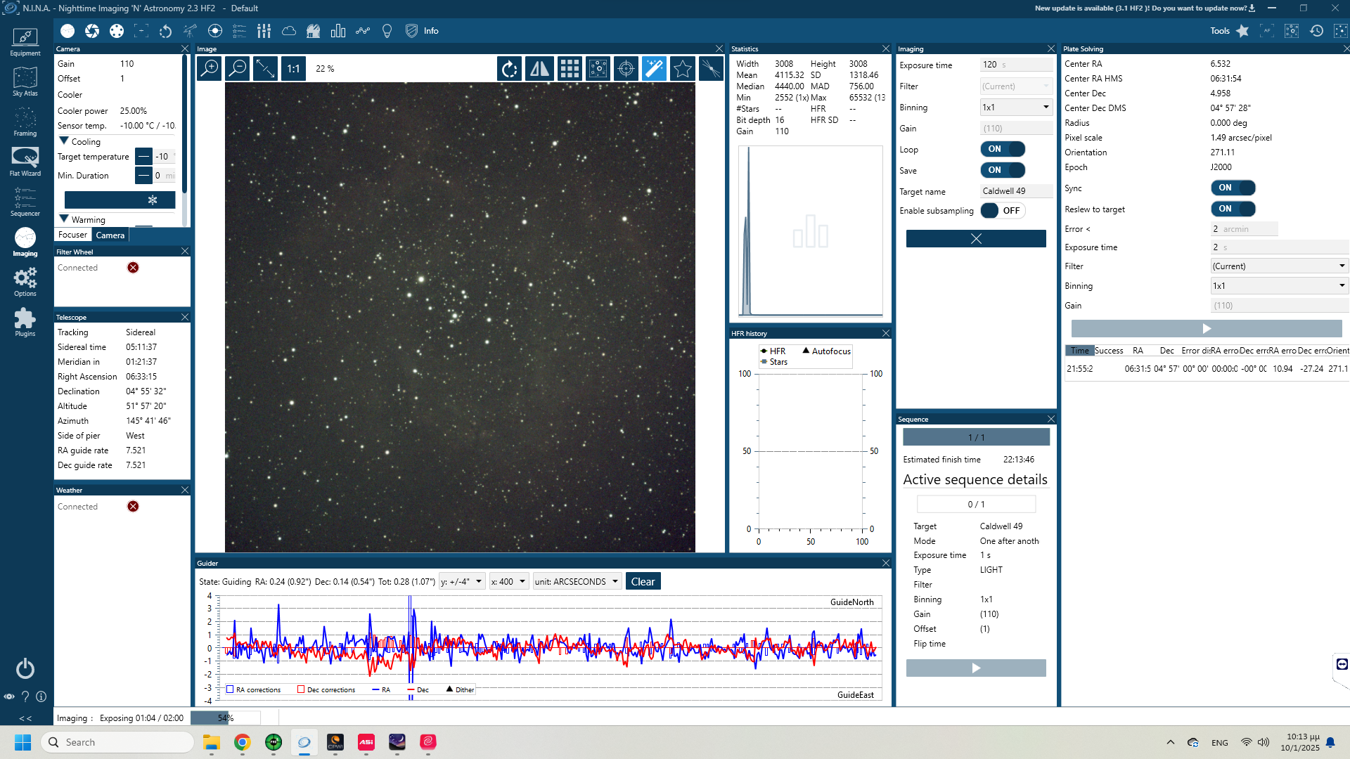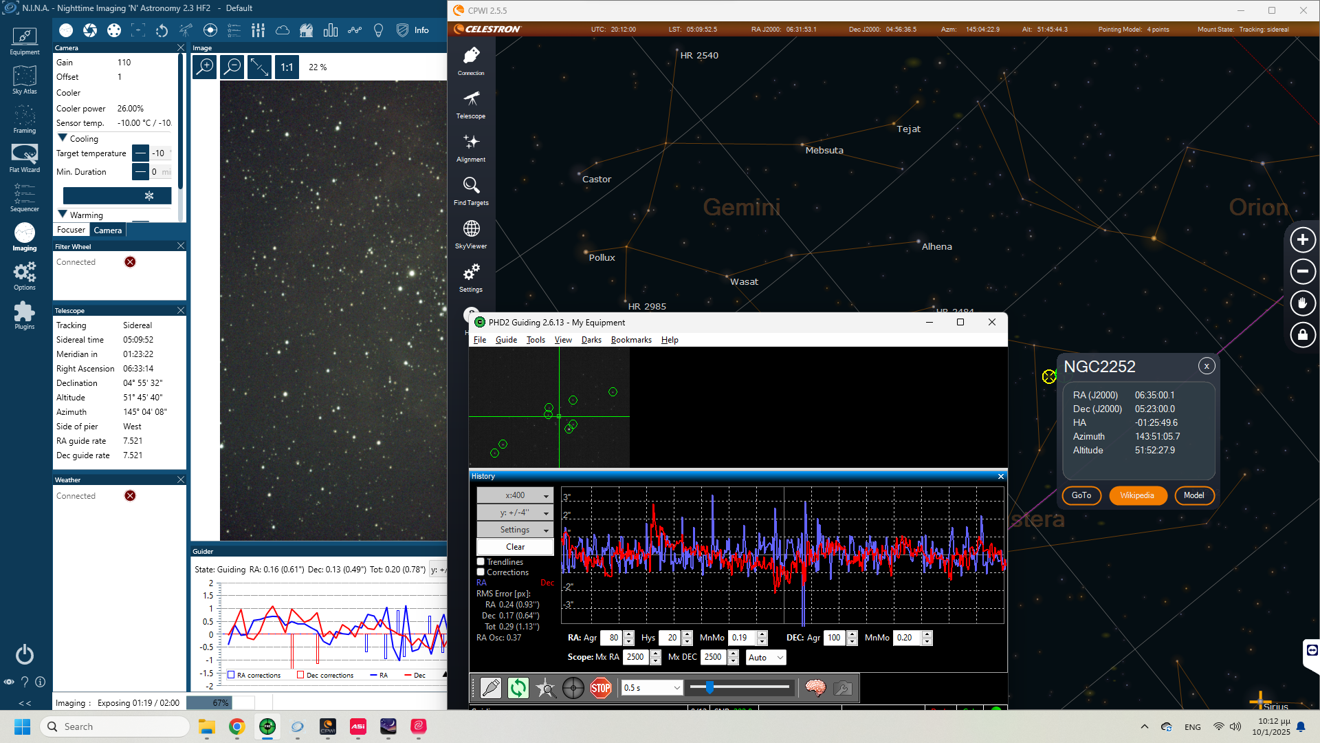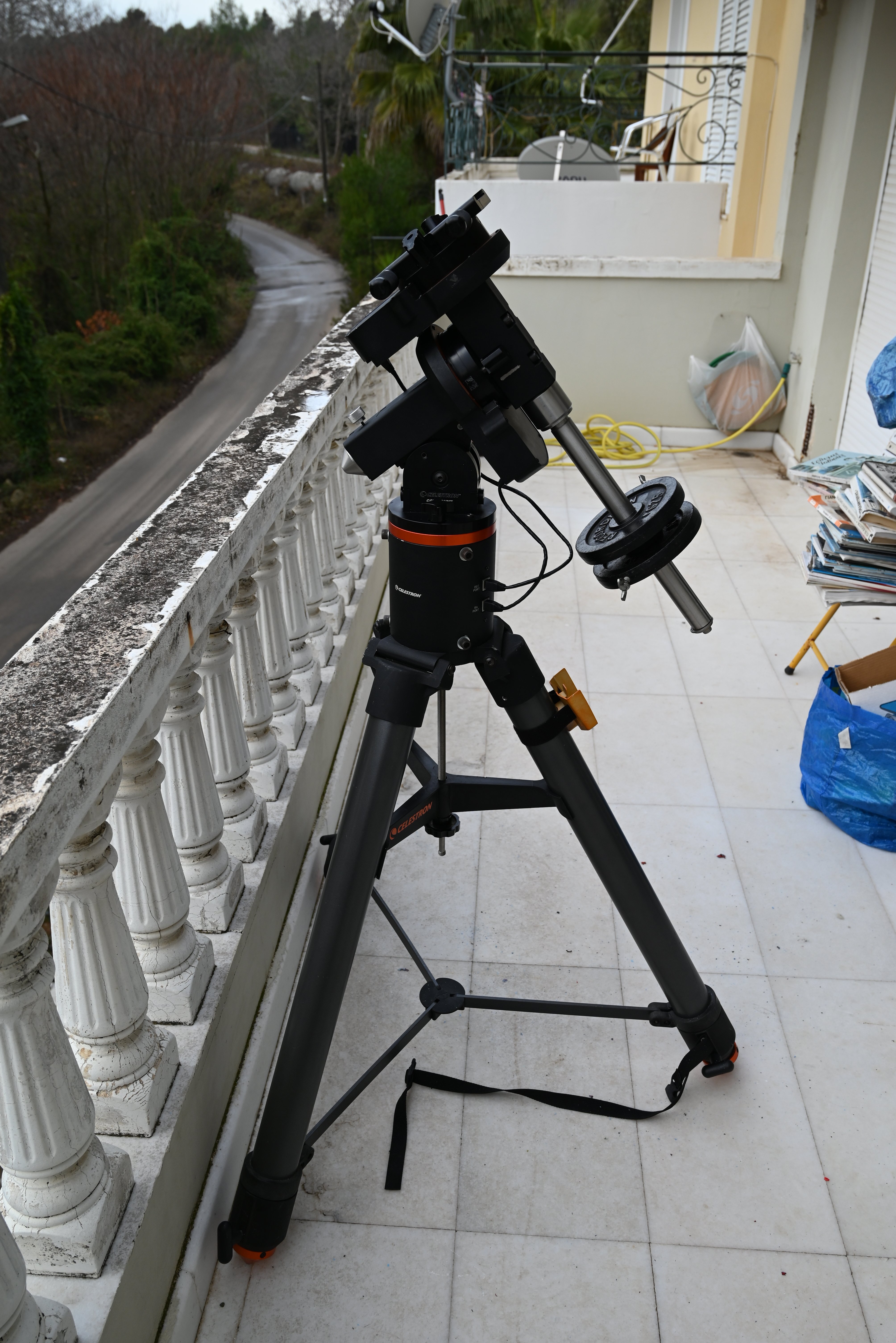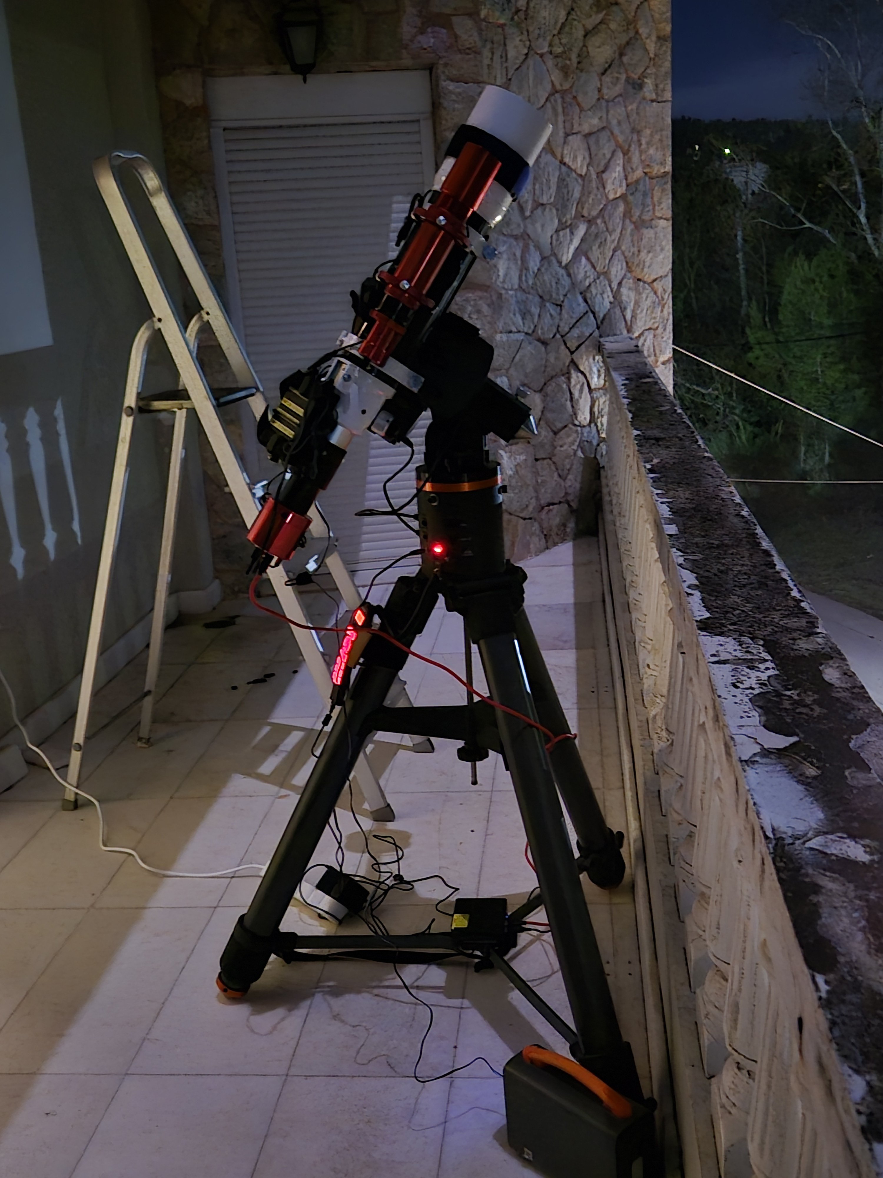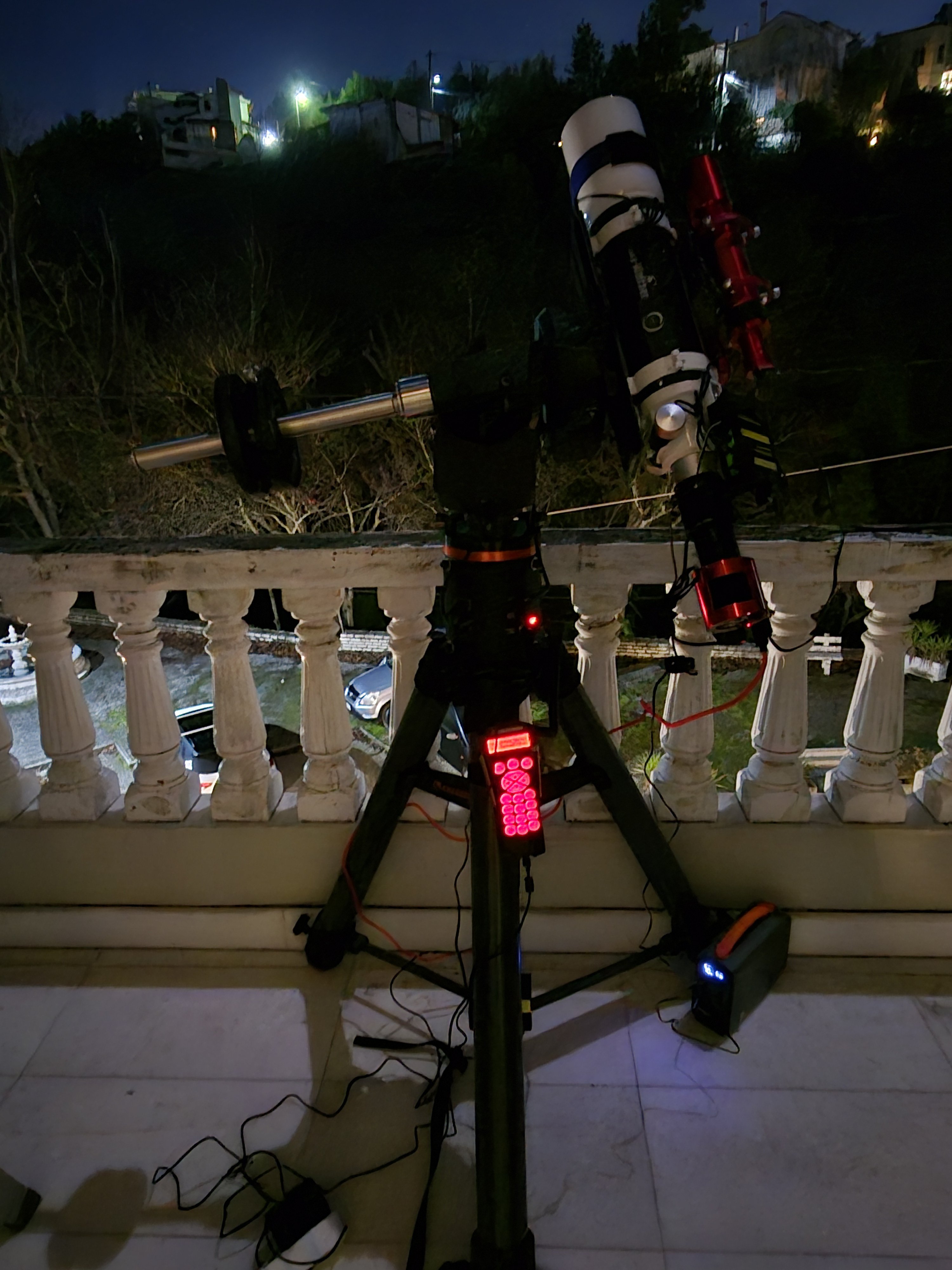 Η κεφαλή έρχεται σε προστατευτική βαλίτσα DIY ενώ ο τρίποδας σκέτος. Περιέχει όλα τα παρελκόμενα (counterweight bar with original counterweight, καλώδια, polar finder, Celestron HC+ για σύνδεση με PC). Βάση Losmandy. Εξαιρετικό tracking για visual αλλά και πολύ καλό guiding για φωτογράφηση (επισυνάπτω φωτογραφίες από αστροφωτογράφηση στις 10/01/2025 με αρκετή υγρασία, όχι πολύ καλό seeing και ελαφριά συννεφιά). Το mount έχει πιάσει και 0,5".