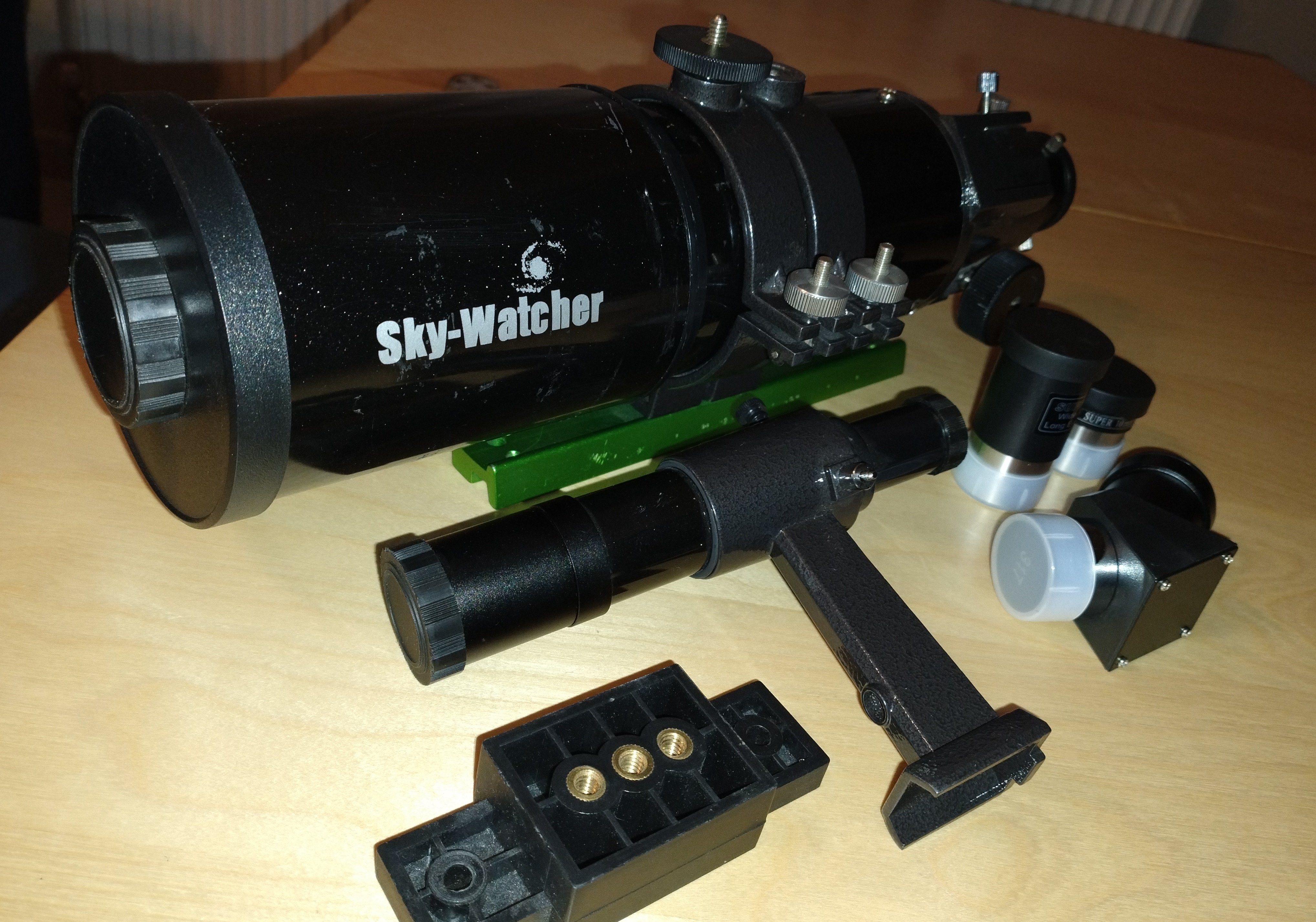 Πωλείται το τηλεσκόπιο Skywatcher StarTravel 80 σε πολύ καλή κατάσταση. Έχει λίγα σημάδια στο σωλήνα και στη dovetail . Τα οπτικά του είναι άριστα.