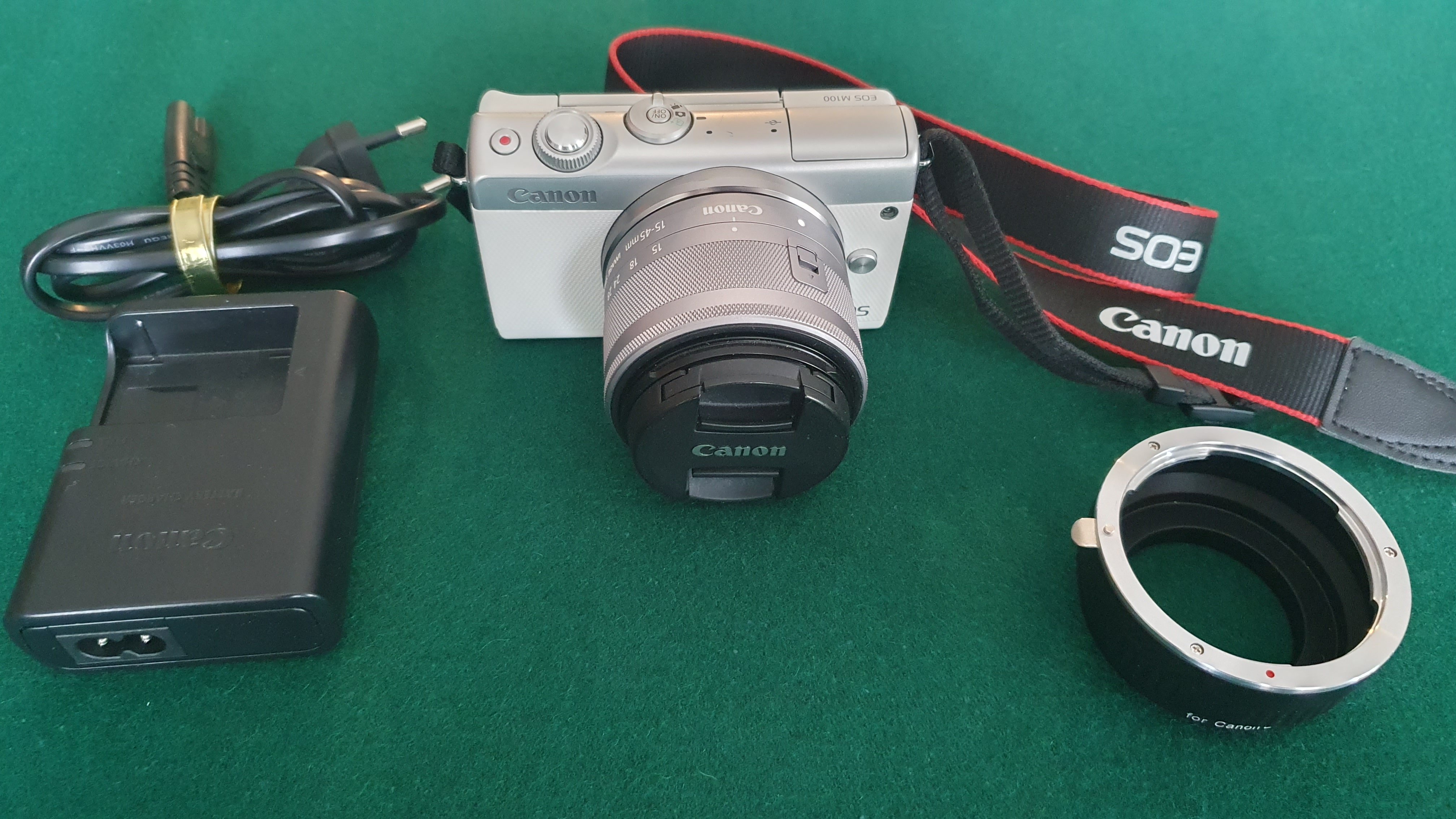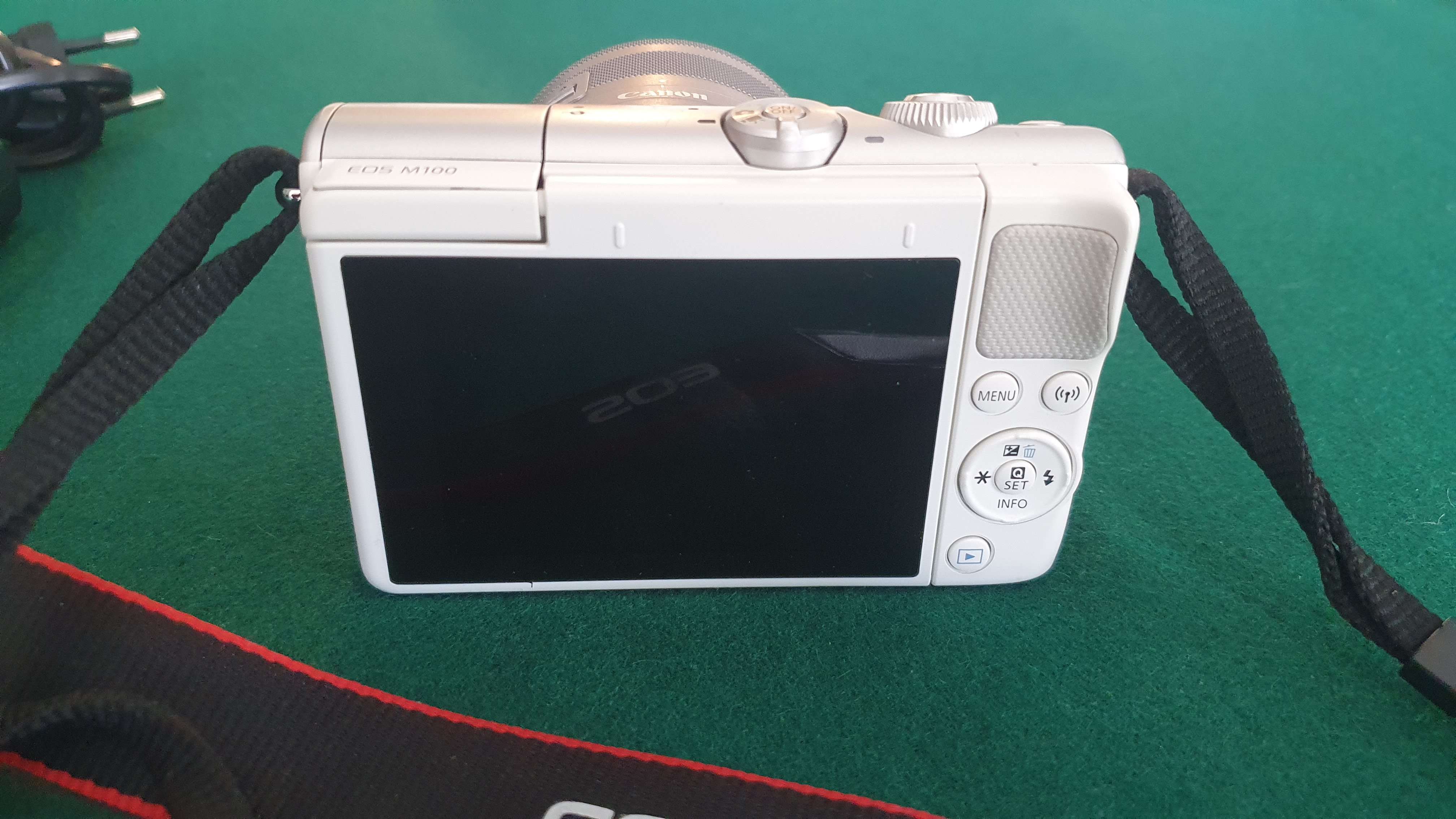 Πωλείται η mirrorless φωτογραφική μηχανή Canon EOS M100 Kit, χρώμα άσπρο, σε κατασταση καινούργιου. Περιλαμβάνονται: