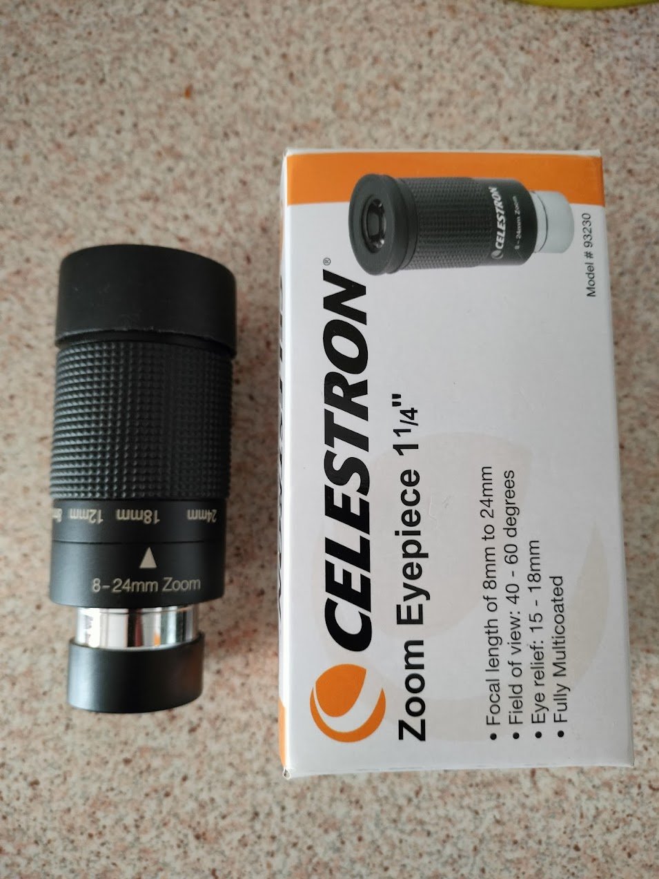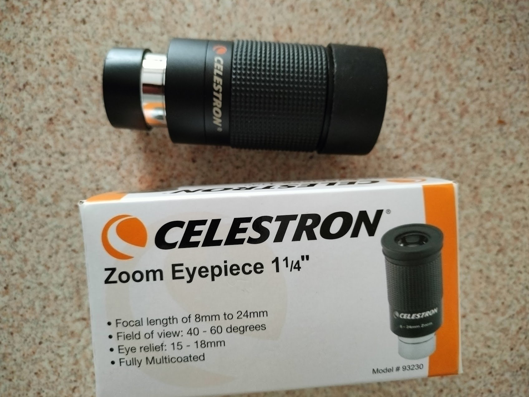 Περισσότερες πληροφορίες και αναφορά στην τιμή καινούργιου εδώ: https://www.astroshop.eu/eyepieces/celestron-zoom-eyepiece-8-24mm-1-25-/p,20224