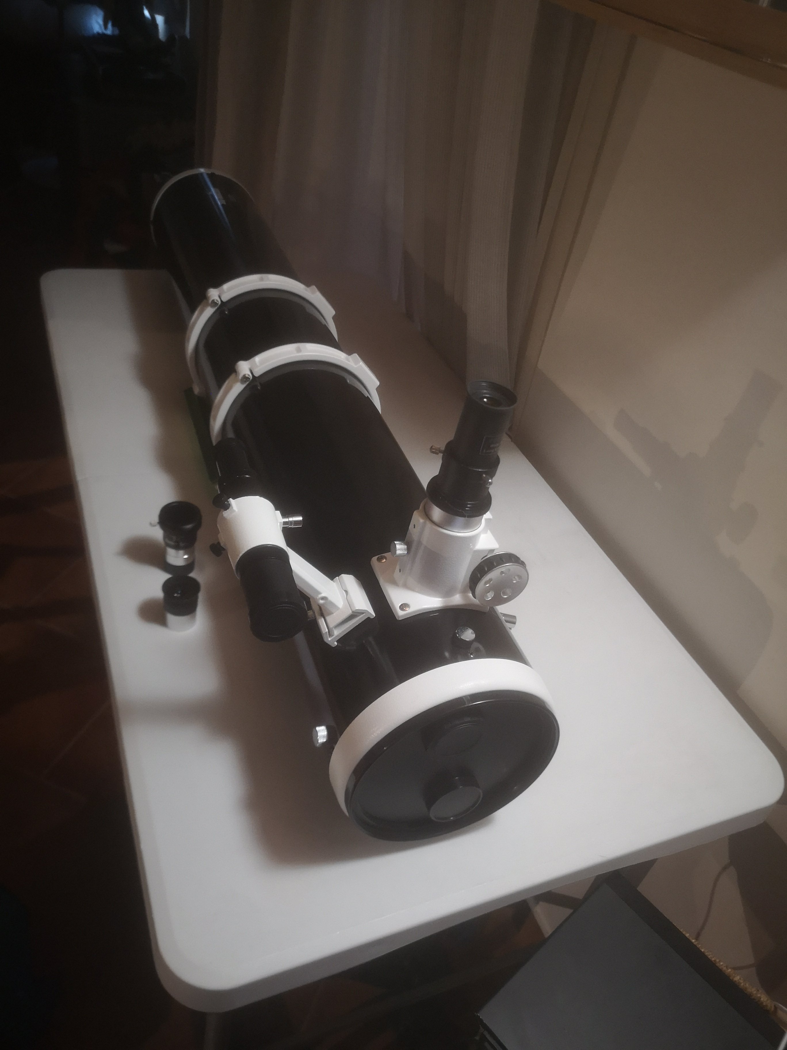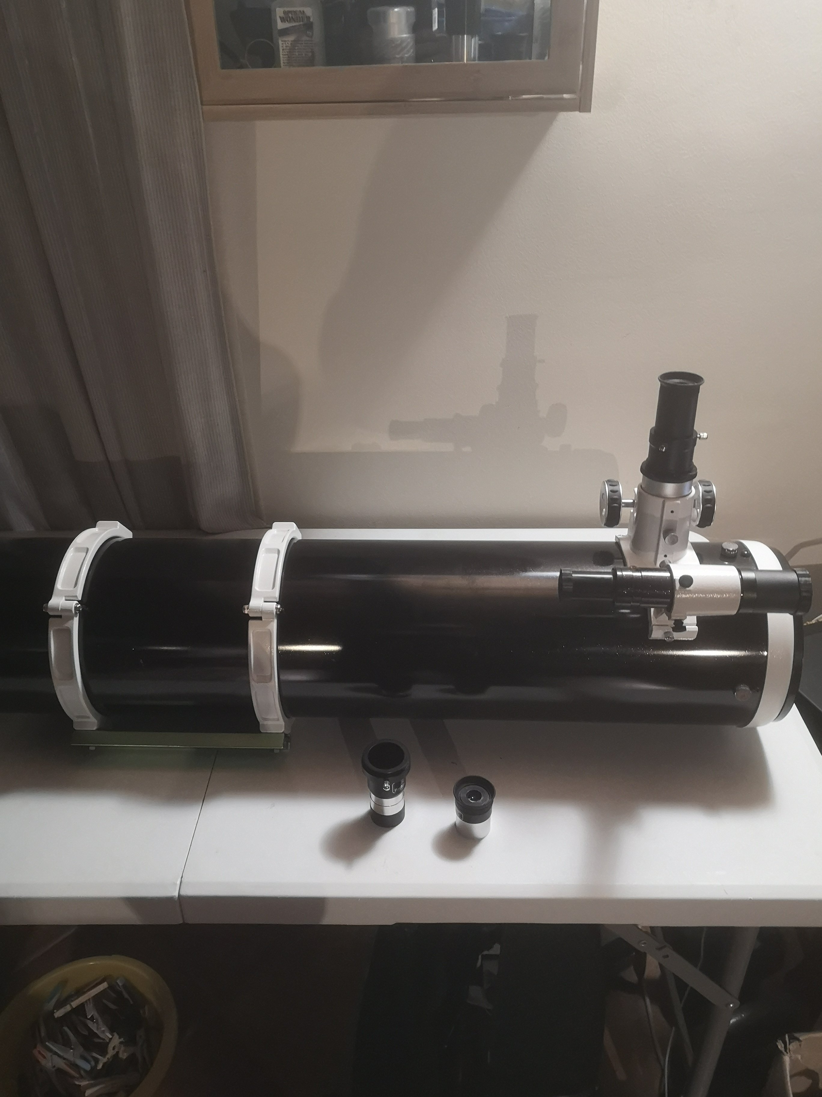 Πωλείται νευτώνειο τηλεσκόπιο skywatcher 150 /1200 pl f8. Το τηλεσκόπιο αγοράστηκε από το πλανητάριο Θεσσαλονίκης πριν 3 περίπου έτη αλλά ζήτημα αν χρησιμοποιήθηκε 3-4 φορές. Είναι σε κατάσταση σχεδόν καινούργιου. Δίδεται με ο, τι είχε κατά την αγορά του : δύο προσοφθαλμια 1,25 10 και 25mm, barlow 2x,ερευνητη 6χ30. Τιμή 160 ευρώ. Αποστολή κατόπιν κατάθεσης του ποσού με έξοδα του αγοραστή. Επικοινωνία με πμ.