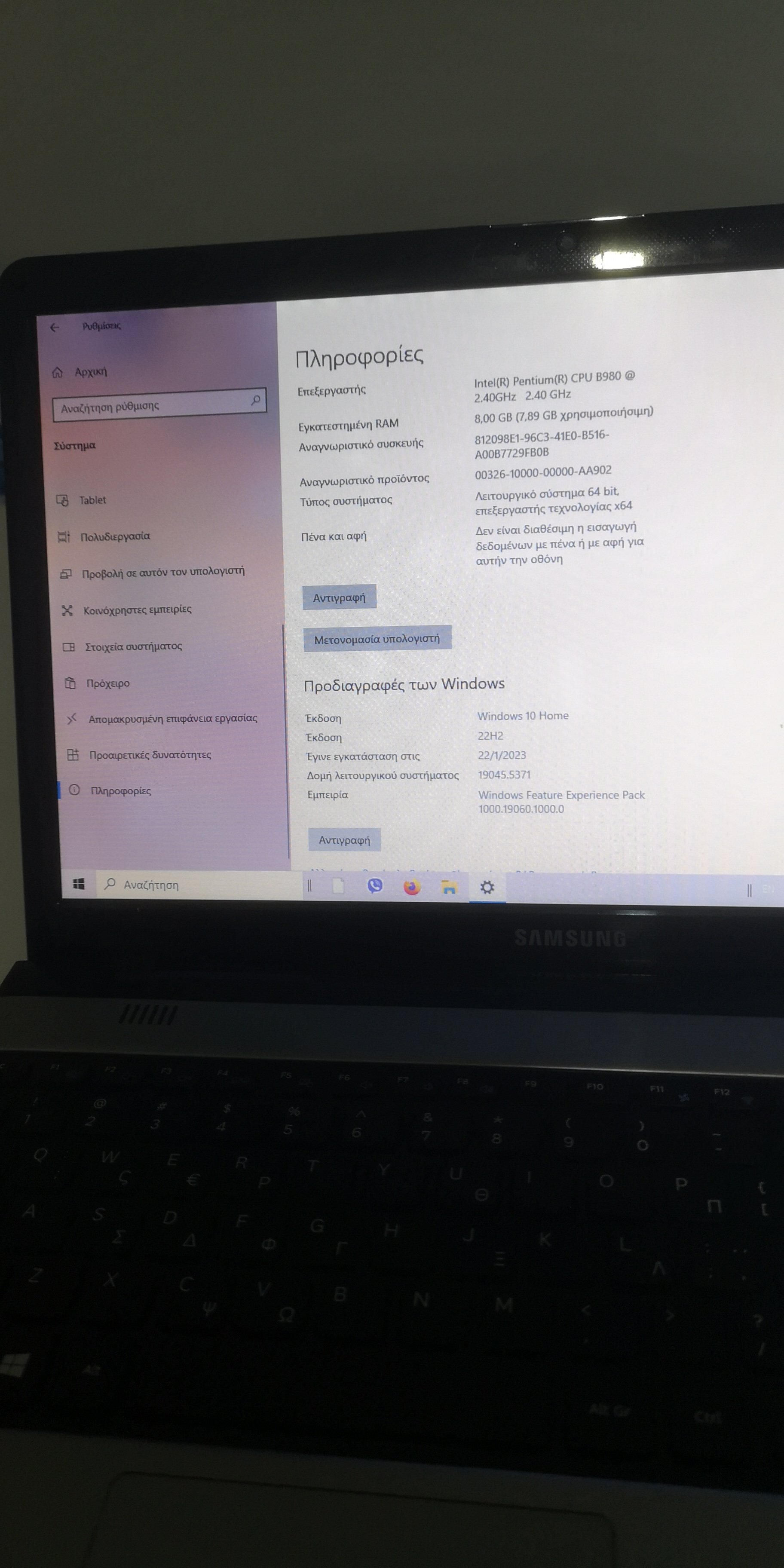 SAMSUNG 350E5C 15.6'' INTEL DUAL CORE B980 ( 2.40 Ghz ) SSD 120 G RAM 8G μειωση τιμης 160 ευρ