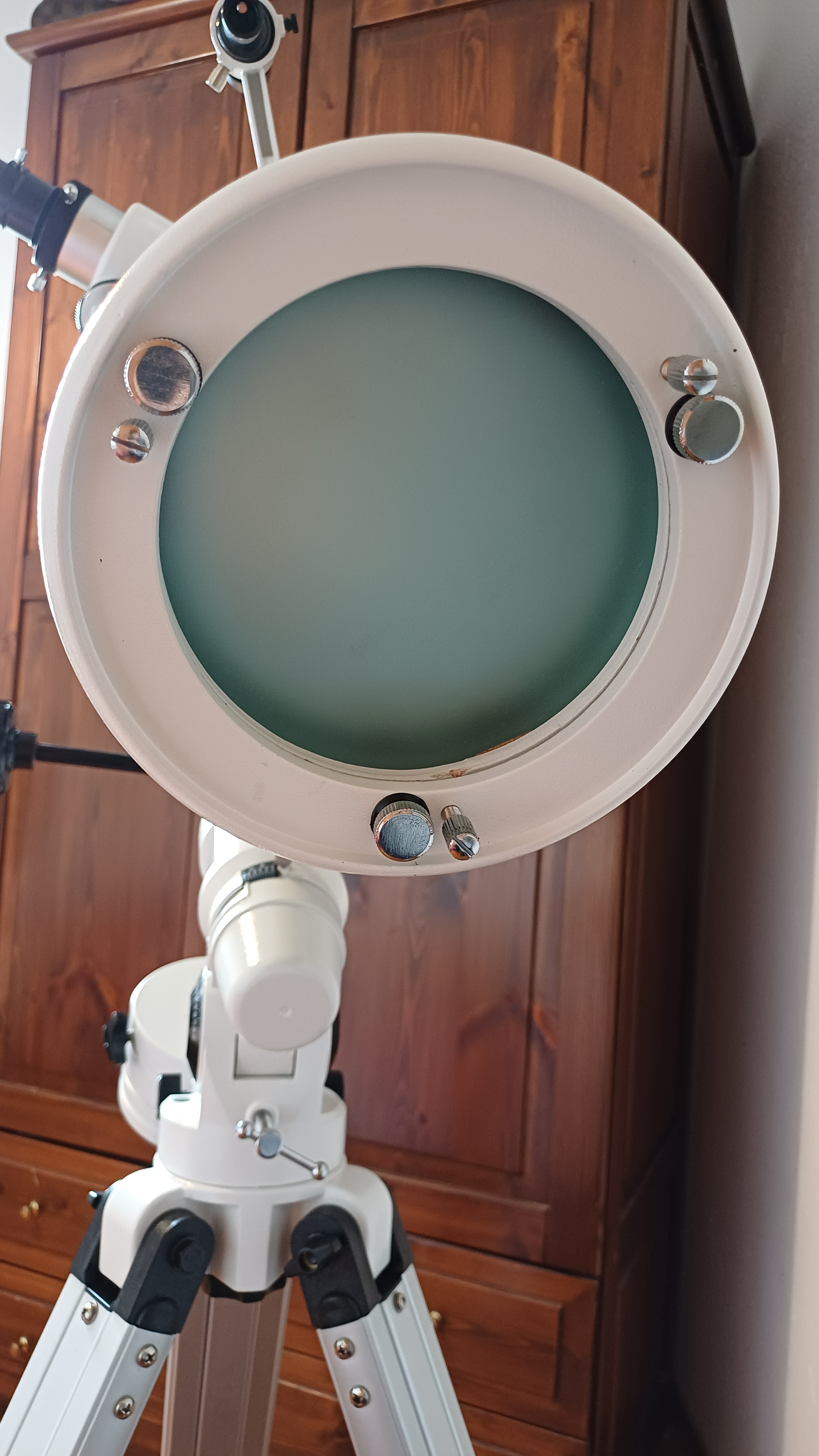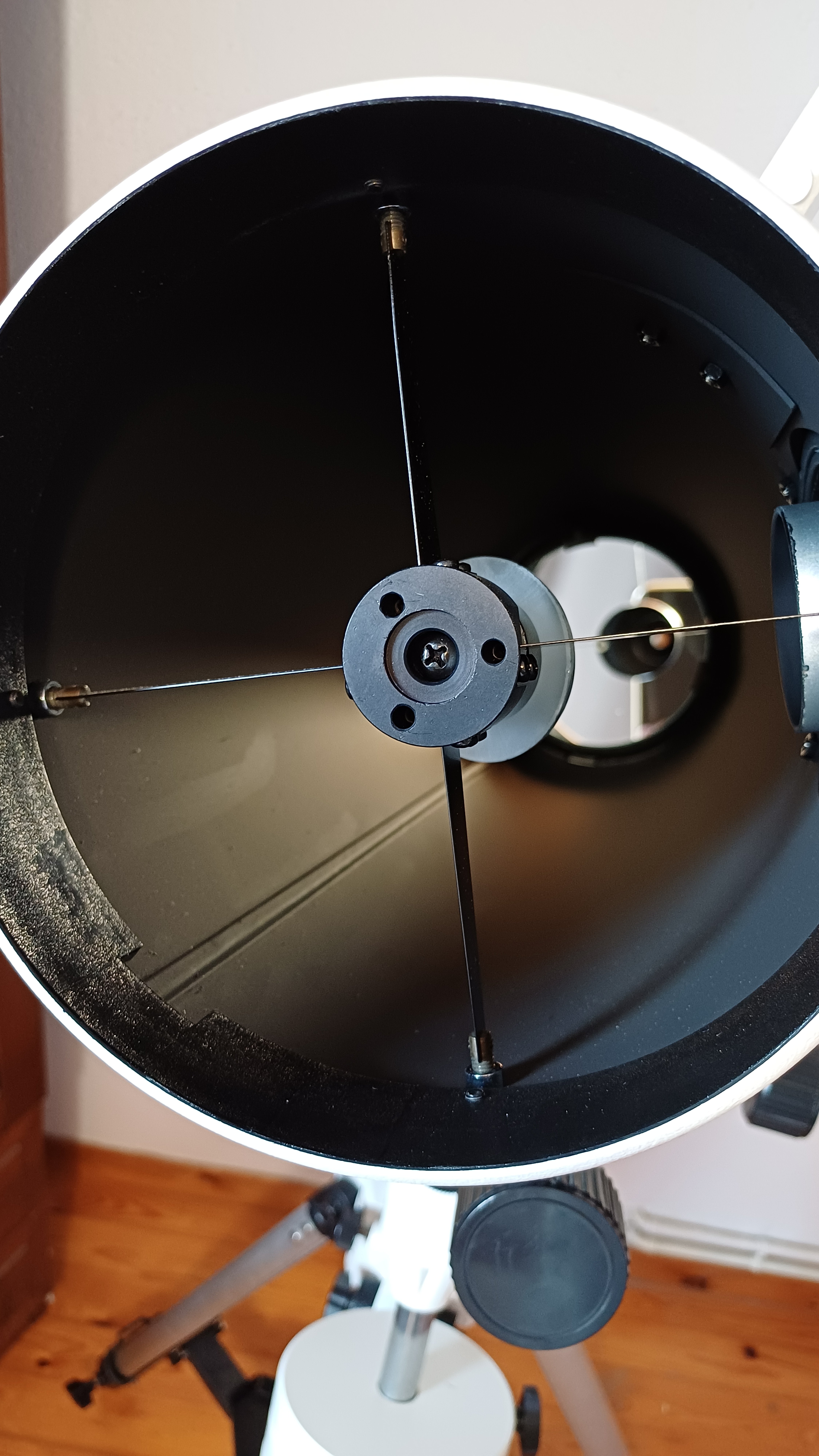 Το δευτερεύον κάτοπτρο στηρίζεται σε μια σταυρωτή διάταξη μεταλλικών ελασμάτων, που έχουν πάχος μόνο 0.5mm, ώστε να περιορίζεται στο ελάχιστο το φαινόμενο της περίθλασης και η απώλεια φωτός