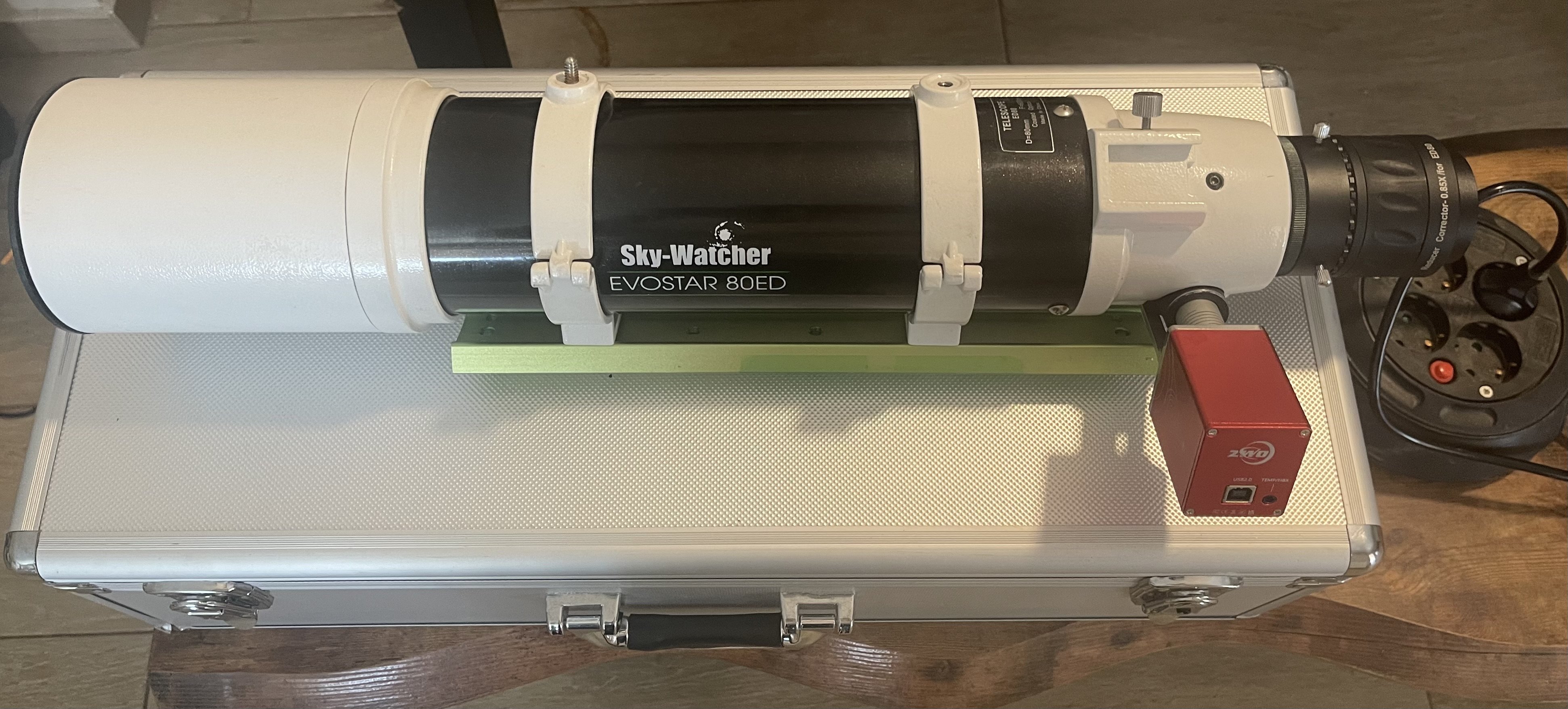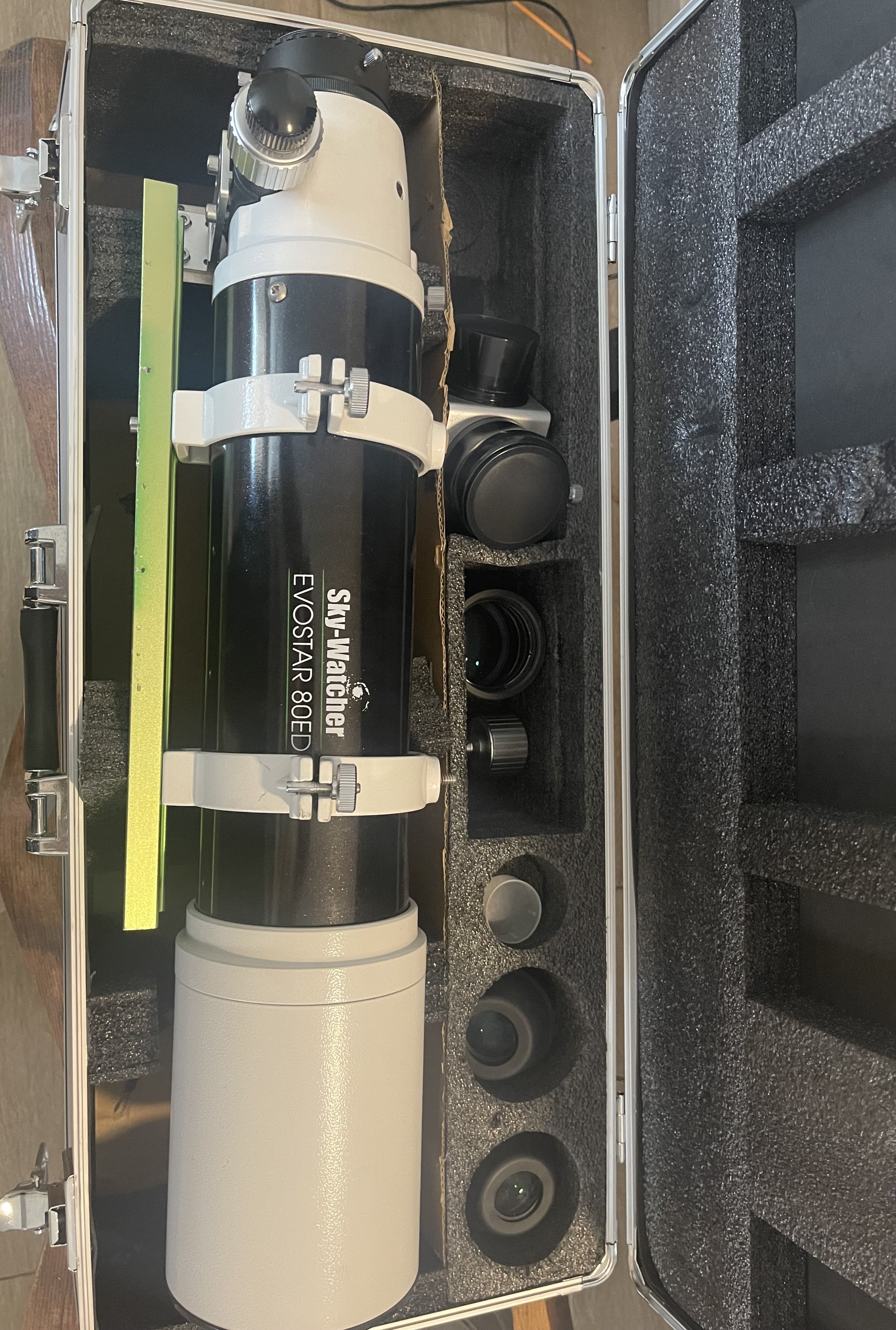 Takahashi FSQ-106 ED, Takahashi 1.6x focal extender, heavy duty case, Prima Luce support rings 125mm