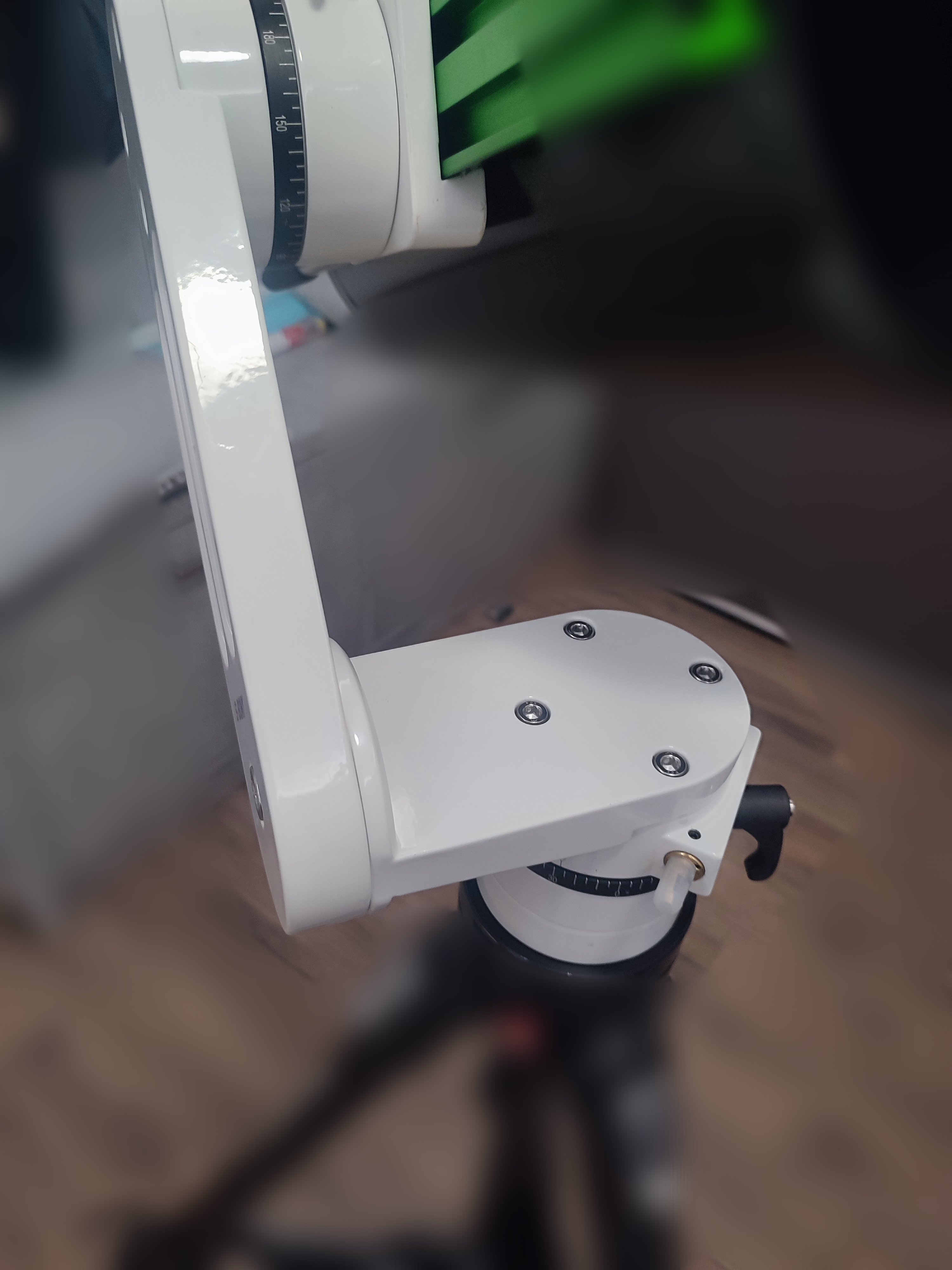 - Η βάση είναι κλασική αλταζιμουθιακή, με δυνατότητα στήριξης τηλεσκοπίων σύμφωνα με τον κατασκευαστή, μέχρι 10kg. Εξαρτάται πάντα και από το τρίποδο. Ενδεικτικά έχει δοκιμαστεί σε 4,5 κιλά σωλήνα με σωστό balance και δεν χρειάστηκε καν να σφίξω τα clutches για altitude και azimuth μέχρι zenith.