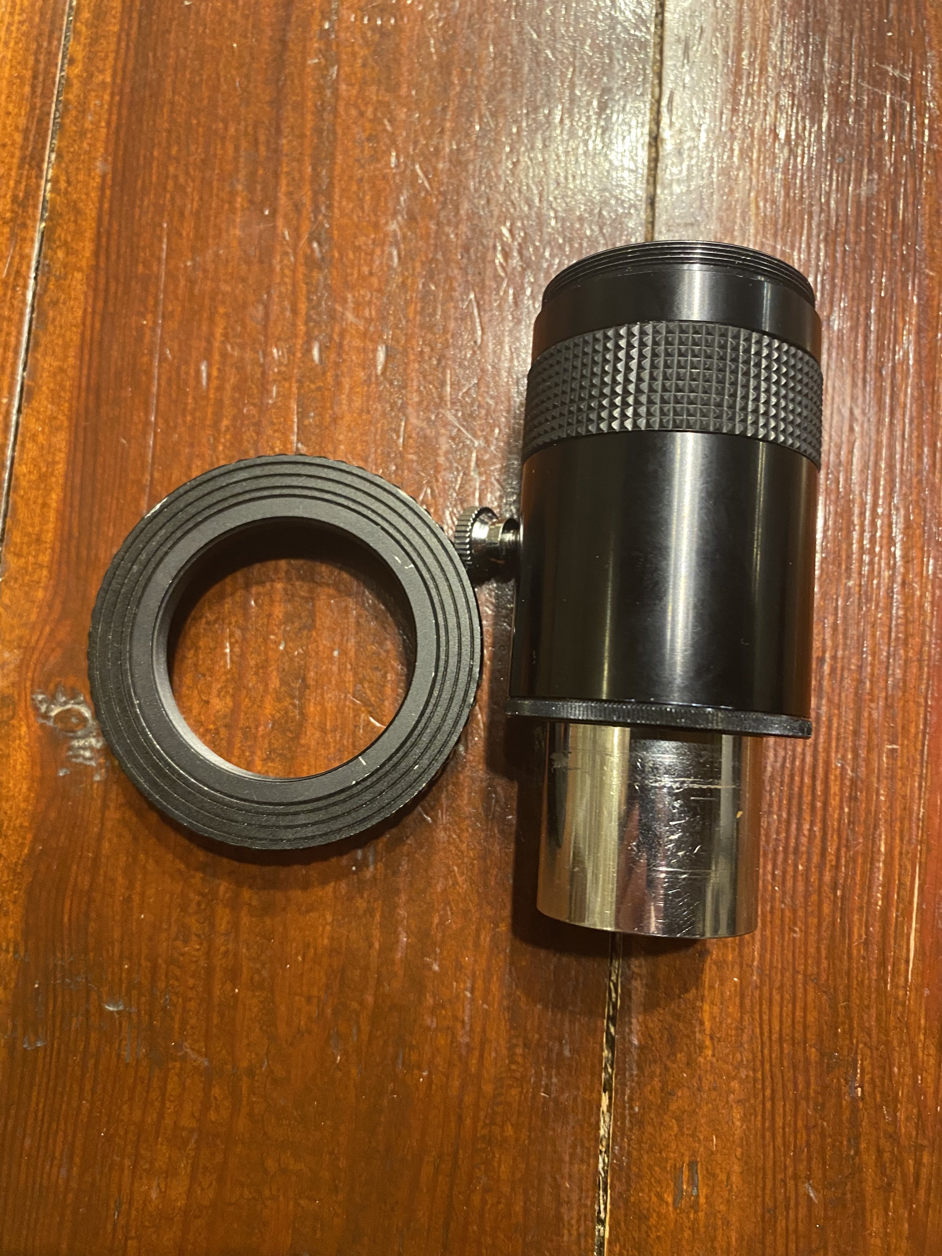 Συγκεκριμένα ο T-ring για Canon EOS APS-C και ανταπτορας, στον οποίο βιδώνει ο Tring που επιτερεπει την προσαρμογή προσοφθαλμιου, ώστε να επιτυγχάνονται μεγαλύτερες μεγέθυνσεις με την κάμερα.