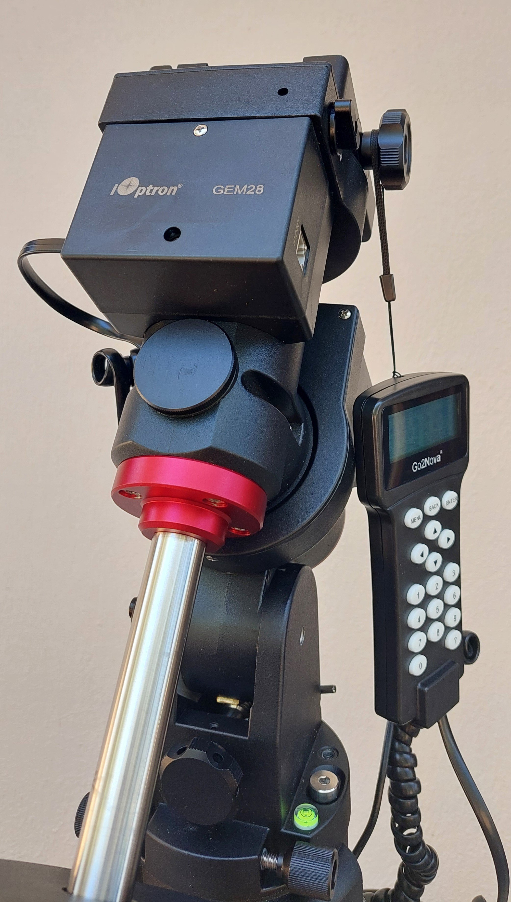 Πωλείται στήριξη iOptron GEM28 GoTo. Αγορασμένη από Πλανητάριο Θεσσαλονίκης. Σε κατάσταση καινούριας, έχει στηθεί μόνο μία φορά στο μπαλκόνι για να δοκιμάσω τη λειτουργία της, καθώς αγοράστηκε σαν 2η φορητή στήριξη. Διαθέτει τον ενισχυμένο τρίποδα LiteRoc 1,75”, ηλεκτρονική πολική διόπτρα iPolar, χειριστήριο Go2Nova 8409, βαλίτσα μεταφοράς, τροφοδοτικό και όλα τα καλώδια για σύνδεση με υπολογιστή. Δεν με ενδιαφέρει ανταλλαγή.