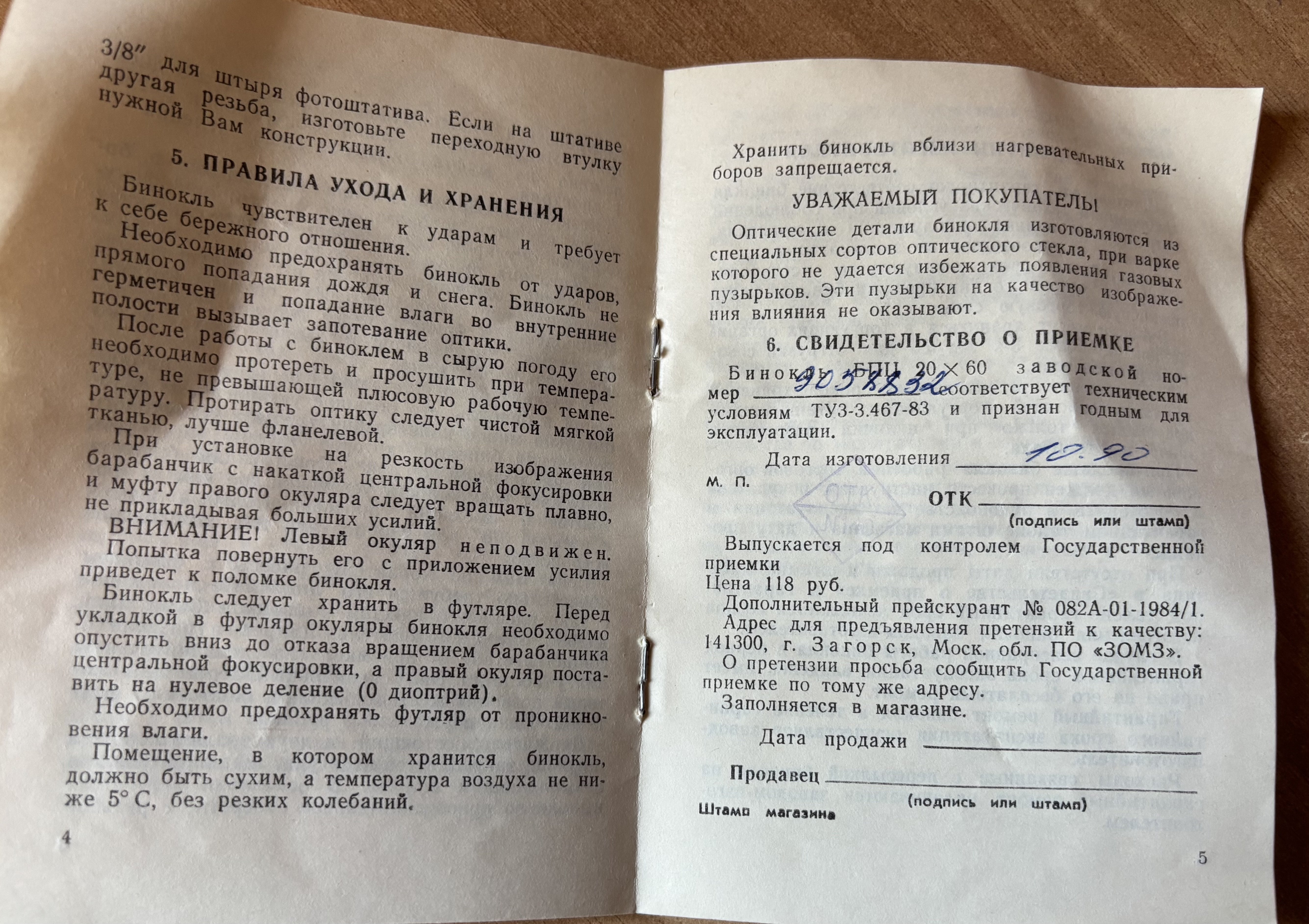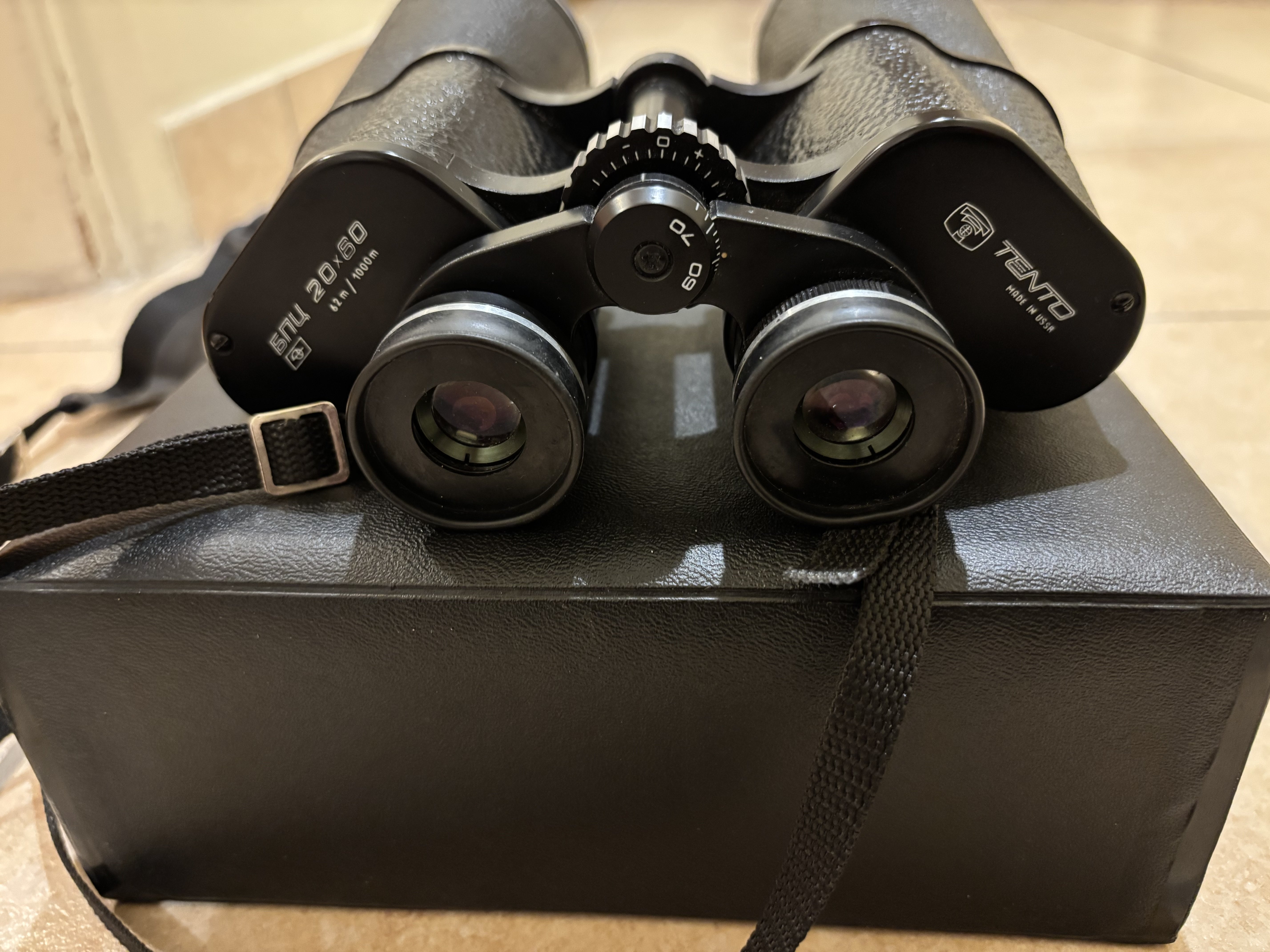 Αγορασμένα πριν από περίπου 30 χρόνια, αυτά τα κιάλια κουβαλούν την ποιότητα και την ιστορία της σοβιετικής οπτικής βιομηχανίας — ένα αυθεντικό κομμάτι εποχής, για όσους εκτιμούν τη λεπτομέρεια και τη διαχρονική κατασκευή.