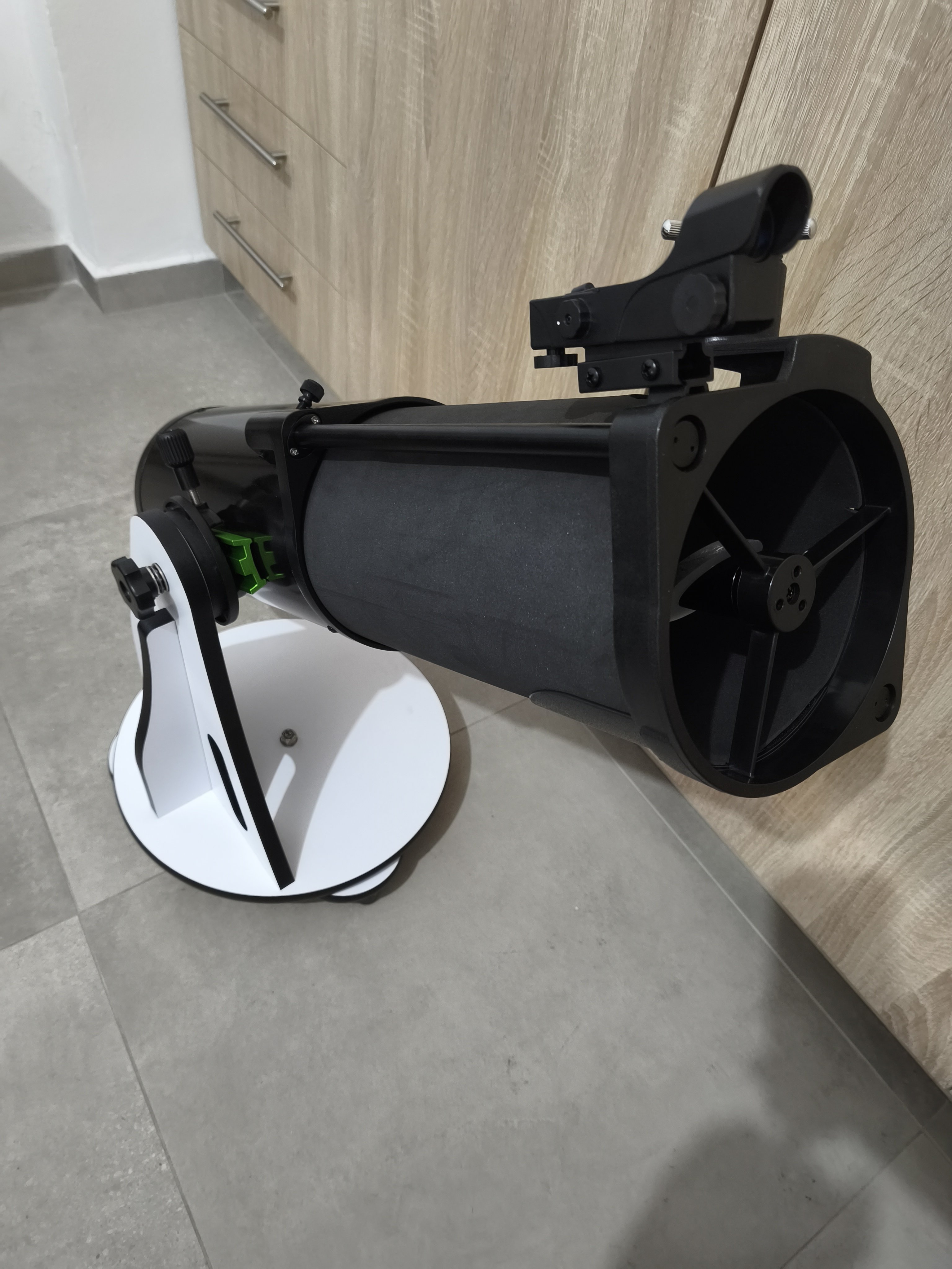 Τηλεσκόπιο dobsonian. Σε άριστη κατάσταση,λίγες φορές χρησιμοποιειμενο, του έχω προσθέσει το μαύρο μανίκι από αφρώδες υλικό για περιορισμό φωτορύπανσης, δώρο ανταπτορας smartphone και φακός Barlow x2.