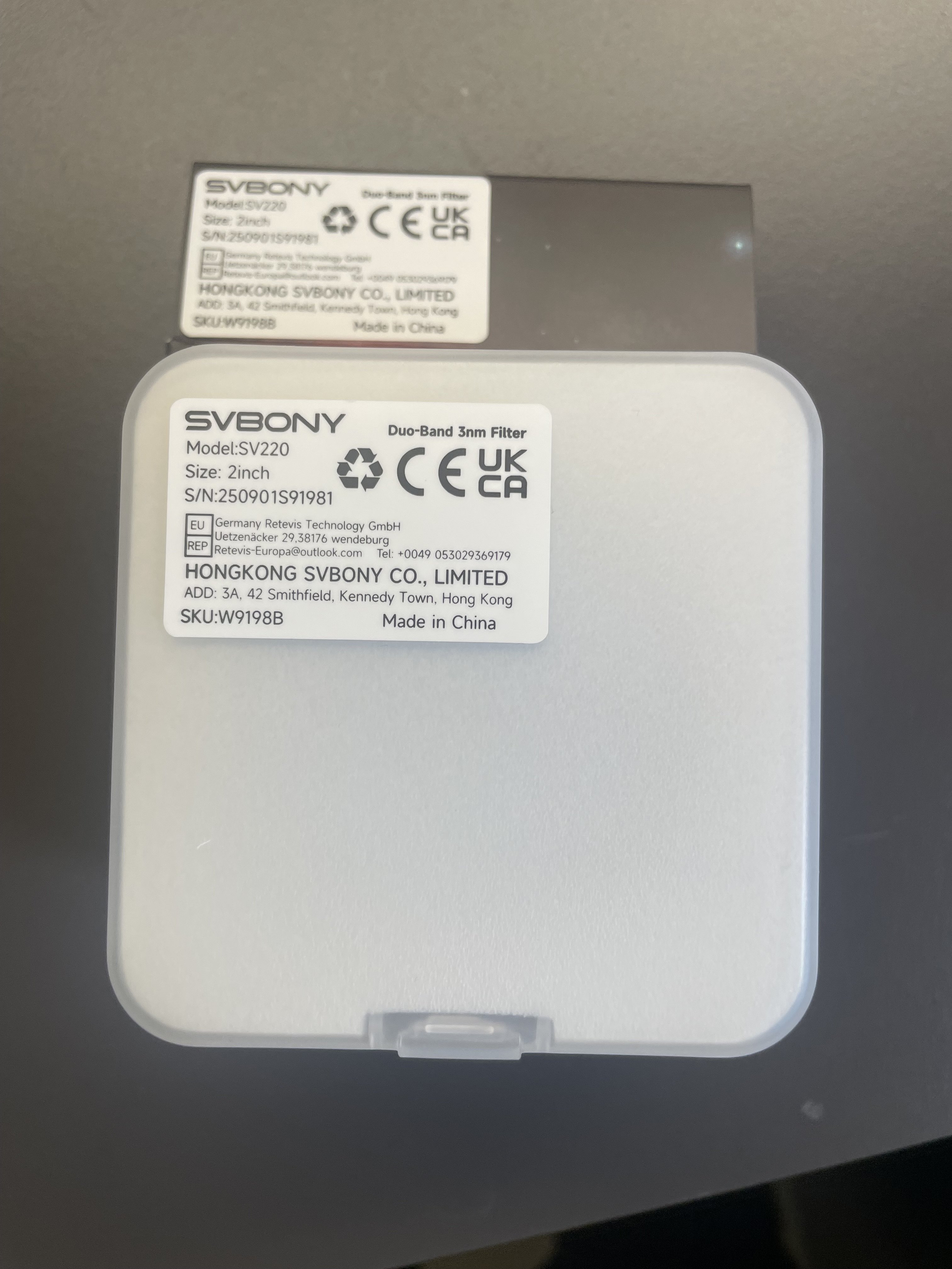 Το φίλτρο της SVBONY (SV220 Duo Band 3nm).