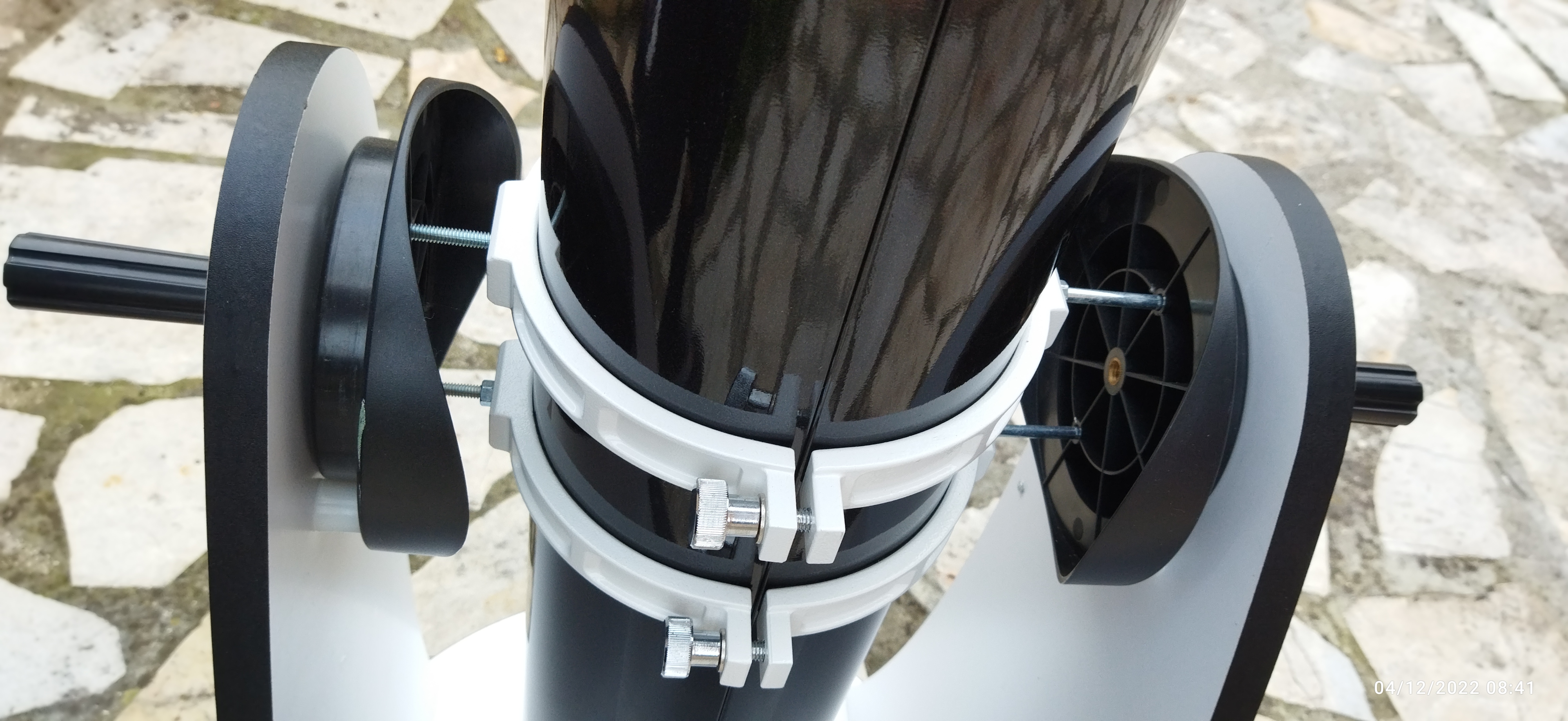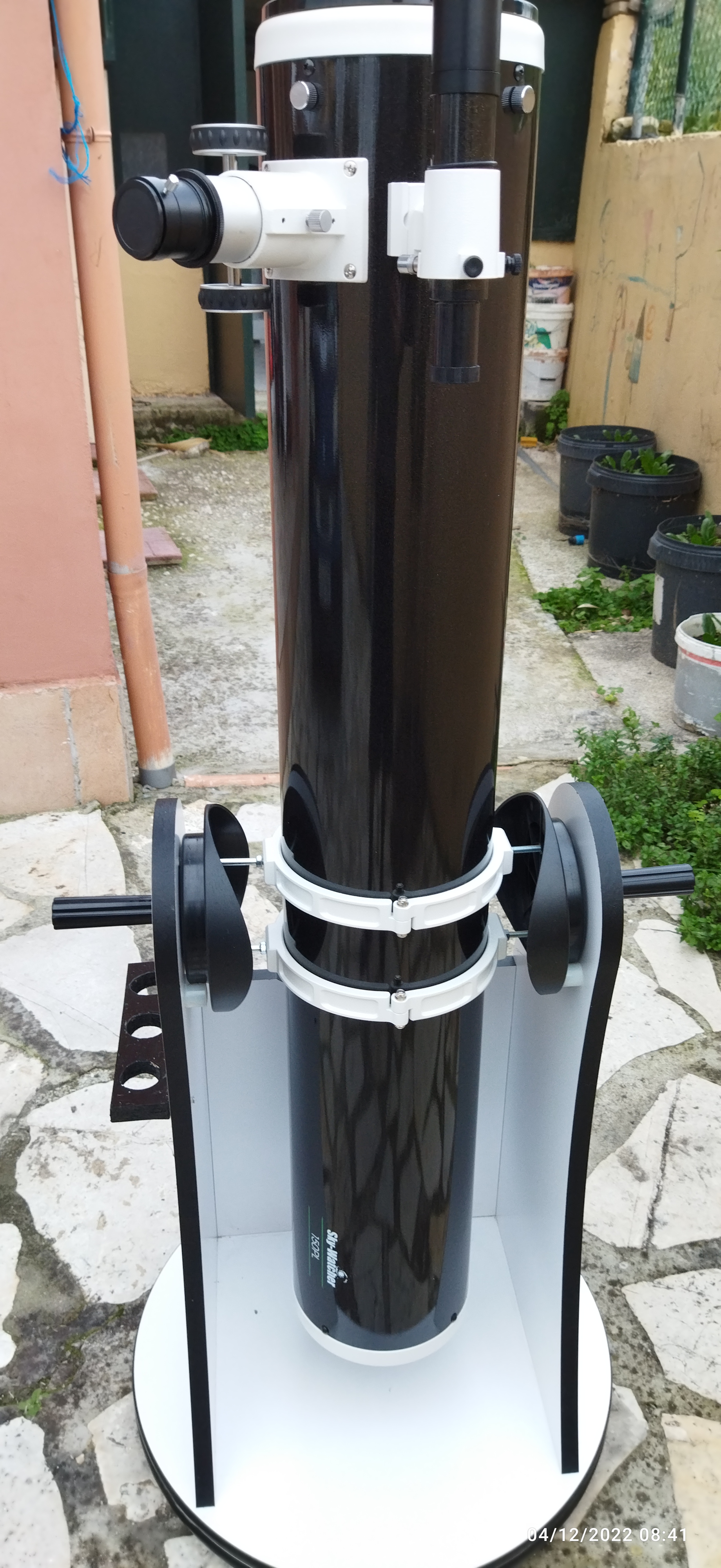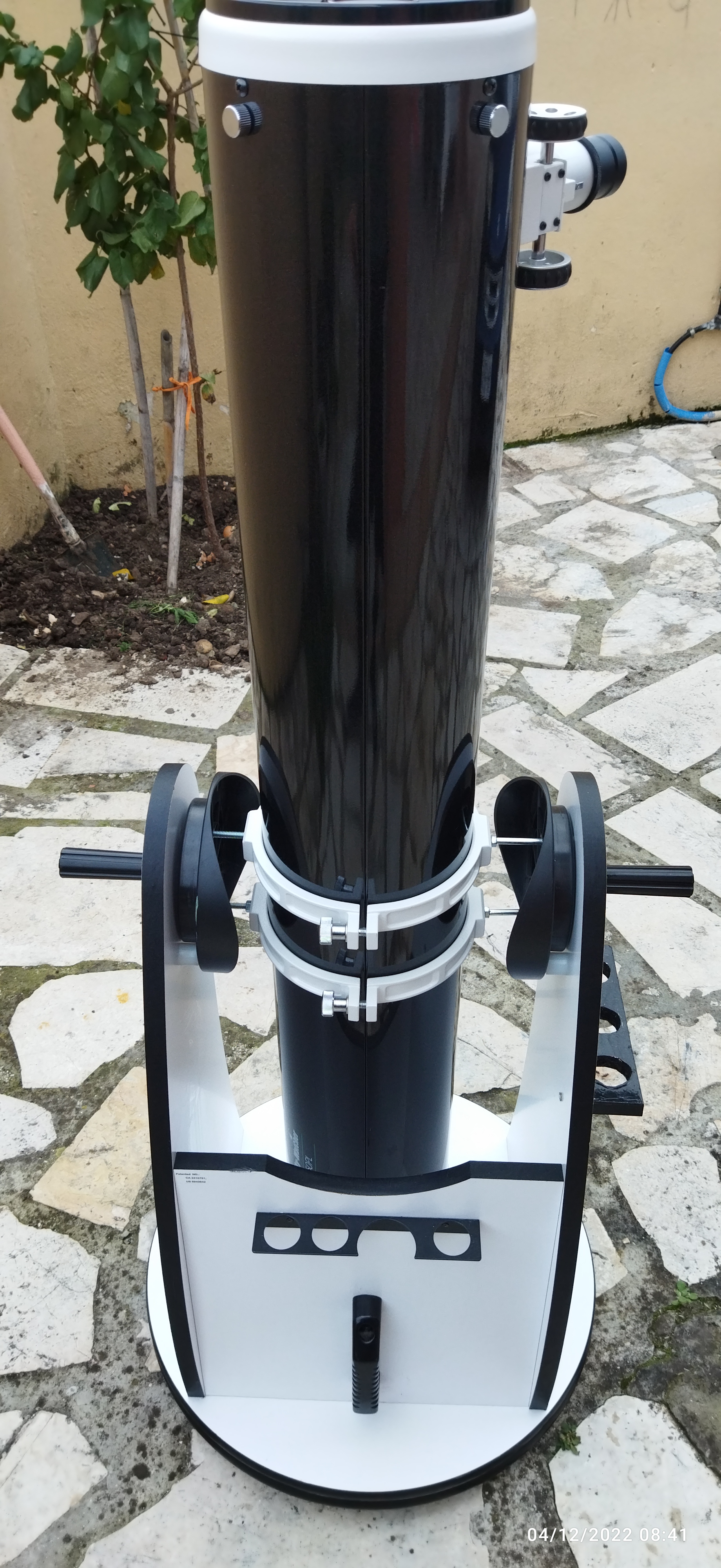 Η βάση dobson όπου έχω είναι από 10αρι τηλεσκόπιο την είχα πάρει λόγω τυχόν αναβάθμισης σωλήνα αργότερα. Έχει γίνει μετατροπή με πιο μεγάλες βίδες για να κάθεται το 6Άρι. Φαίνεται στις φωτογραφίες, λειτουργεί αξιόπιστα και με την μετατροπή, τιμή βάσης 100€.