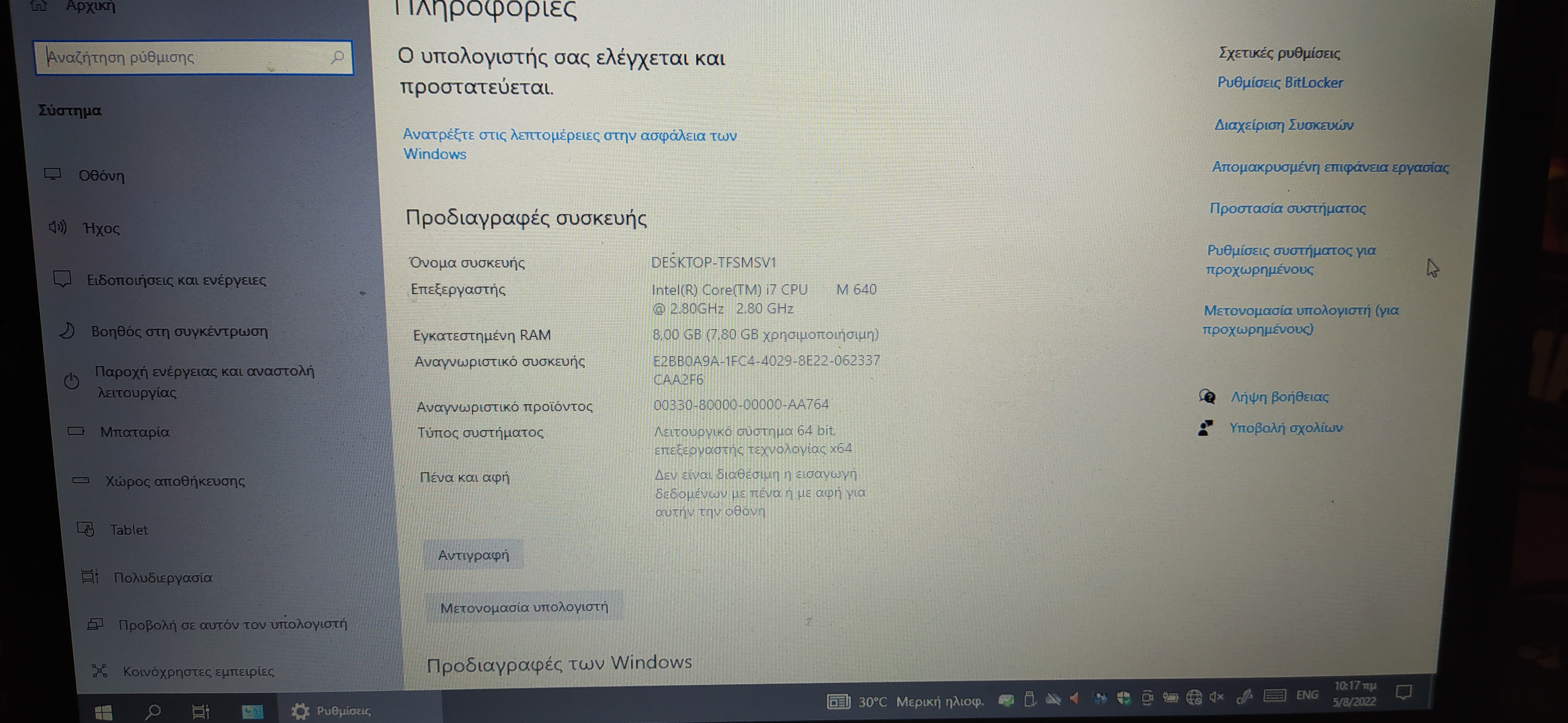 Μικροπροβλήματα: Το λάπτοπ όταν πάρει ρεύμα, είτε από μπριζα είτε από μπαταρία ανοίγει μόνο του και όταν ανοίγει μπαίνει σε diagnostic tests,δεν έχω ψάξει να το λύσω καθώς το λάπτοπ χρησιμοποιούνταν 1-2 φορές το μήνα για αστροφωτογραφία. Μικρό σημάδι στην οθόνη που δεν επηρεάζει πουθενά στη λειτουργία του, λείπουν κάποιες βίδες από το καπάκι που δεν επηρεάζουν πουθενά τη λειτουργία του. Όλα τα παραπάνω φαίνονται στις φωτό.