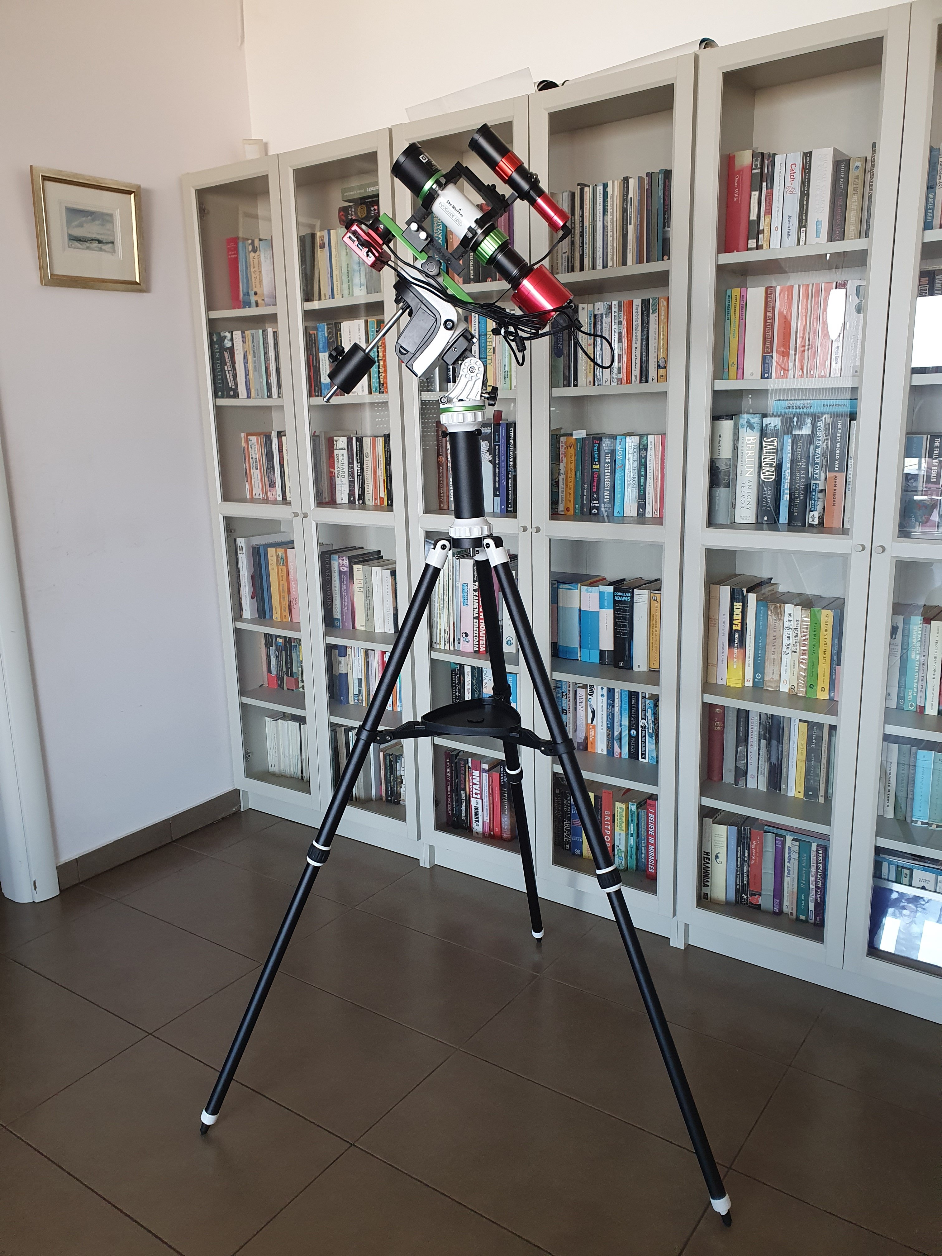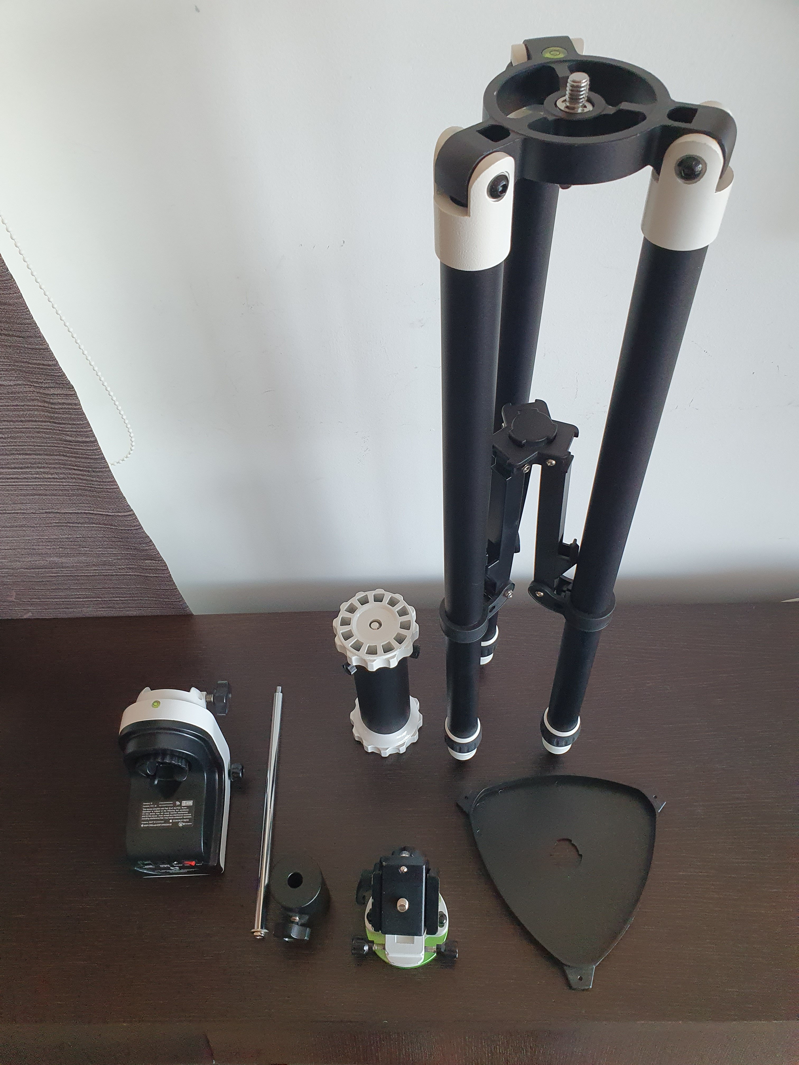 Skywatcher AZ-GTI με τρίποδο, σωλήνα προέκτασης, Ισημερινή σφήνα, άξονα αντιβάρων και αντίβαρο. Διαθέτει το κατάλληλο firmware για ισημερινή λειτουργία.
