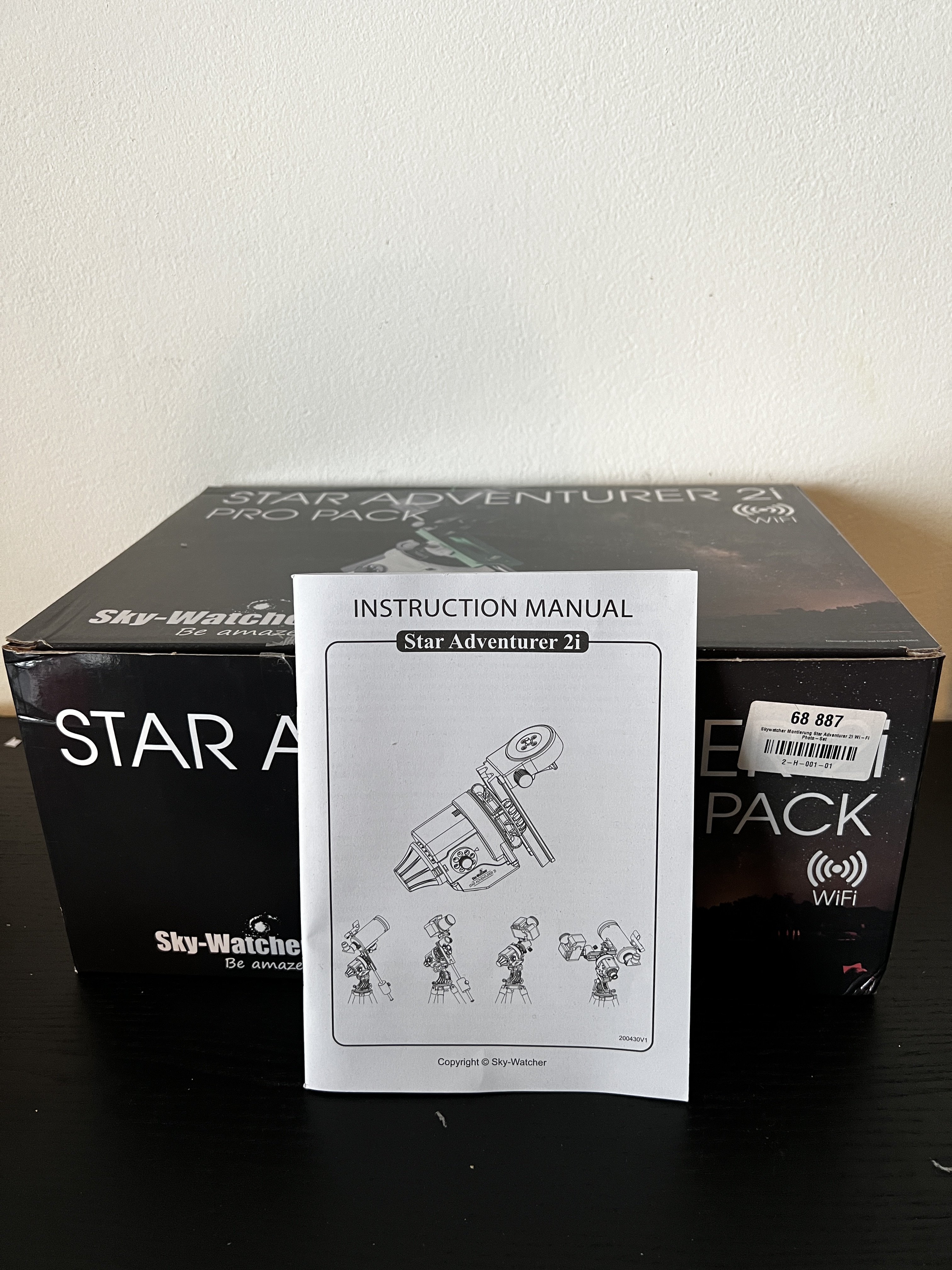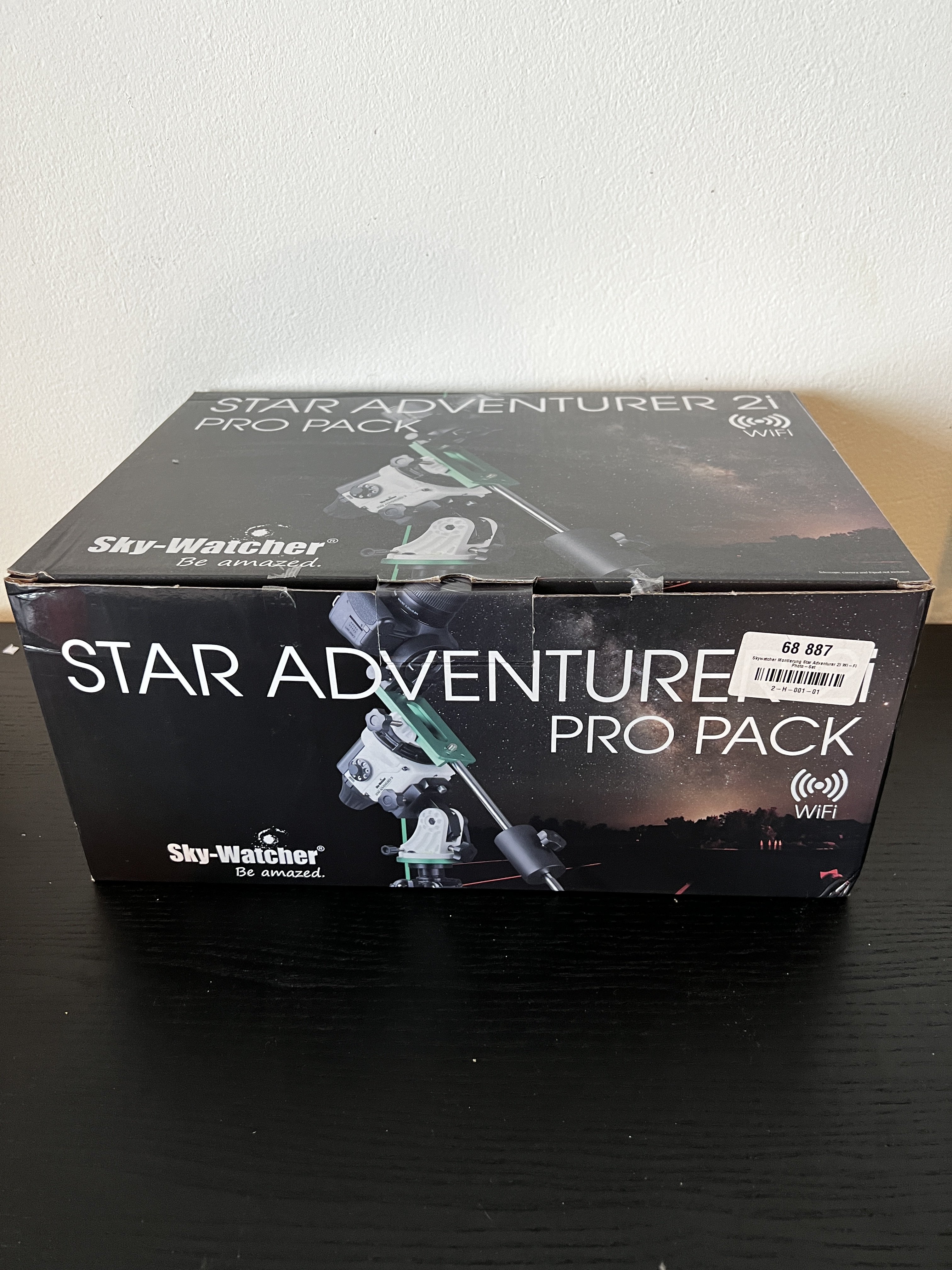 Πωλείται η δημοφιλής στήριξη της Sky- Watcher, το Star Adventurer 2i PRO PACK με το κουτί του και όλα τα παρελκόμενα (αντίβαρο, οδηγίες, βάση για DSLR κλπ). Έχει χρησιμοποιηθεί 5 φορές και το δίνω με βαριά καρδιά λόγω έλλειψης χρόνου. Είναι αγορασμένο από το Astroshop.eu στις 04.01.2023 και δεν χρησιμοποιήθηκε από τότε λόγω του ότι μένω στο κέντρο της Πάτρας, άρα λόγω του Light Pollution δεν μπορούσα να βγάλω φωτογραφίες. Υπάρχει και απόδειξη.