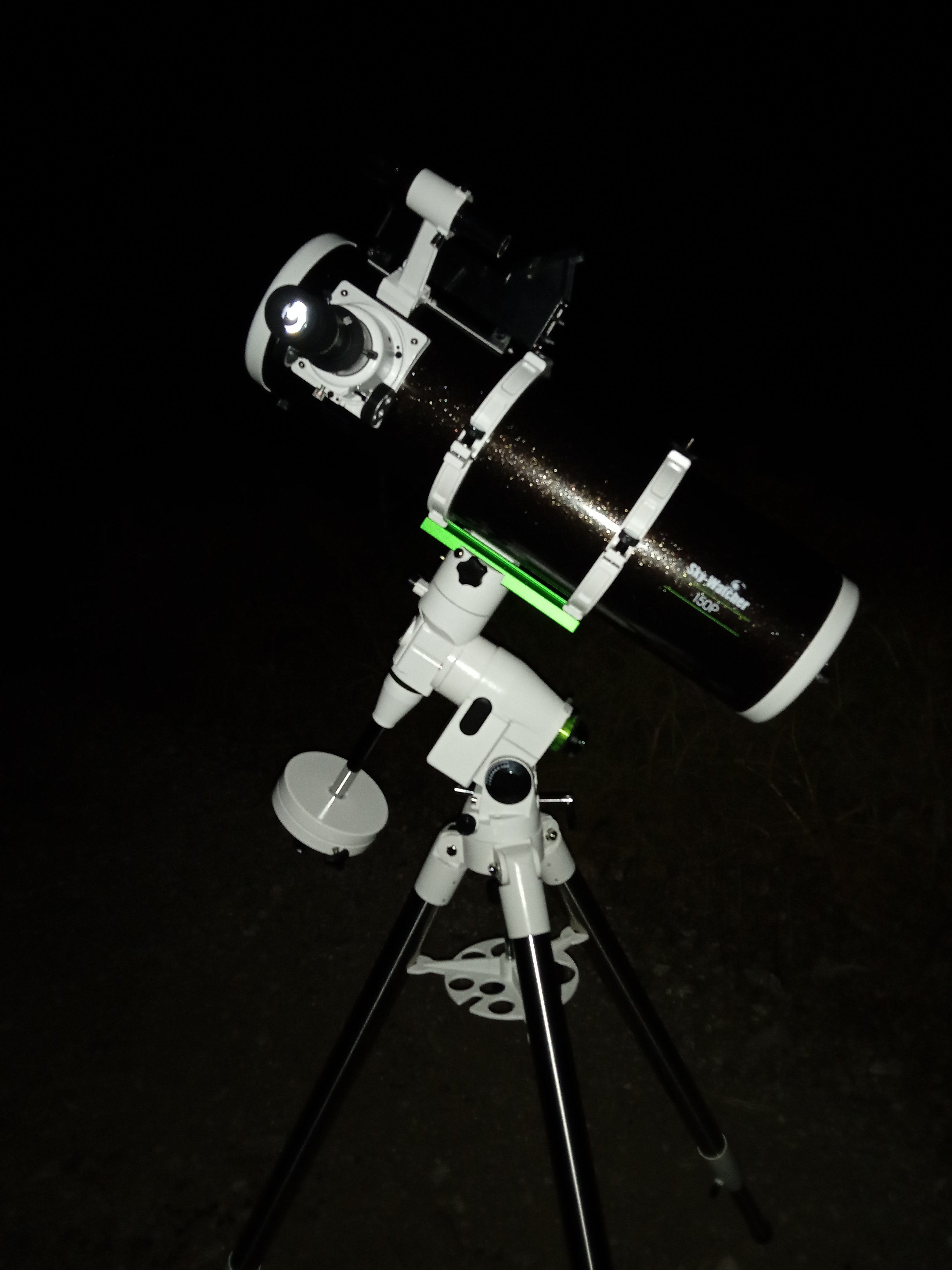 Για χαρη φιλου που χρησιμοποιησε μια φορα αυτο το σεταπ καθως πειραματιζεται με εξοπλισμους προκειται για ολοκαινουριο εξοπλισμο η πολυ στιβαρη skywatcher eq5 με δυο αντιβαρα και στιβαρο ατσαλινο τριποδο και το εξαιρετικο black diamond 150/750 εξαιντσο παραβολικο σωληνα με crayford εστιαστη με δαχτυλιδια συγκρατησης εξαιρετικα κοφτερα οπτικα εχθες τσεκαρα και την ευθυγραμμιση του ειναι τελεια ερχεται με ερευνητη 6 επι 30 και ερευνητη telrad με δυο προσοφθαλμια 25 και 10 χιλιοστων ολα αυτα μαζι πακετο στα 560 ευρω πωλουνται και ξεχωριστα 350 ευρω η στηριξη η οποια αμα θελει καποιος της βαζει goto εξαιρετικη για πολλες εφαρμογες και 270 ευρω ο σωληνας υψηλης ποιοτητας που ερχεται με προσοφθαλμια και με δυο ερευνητες