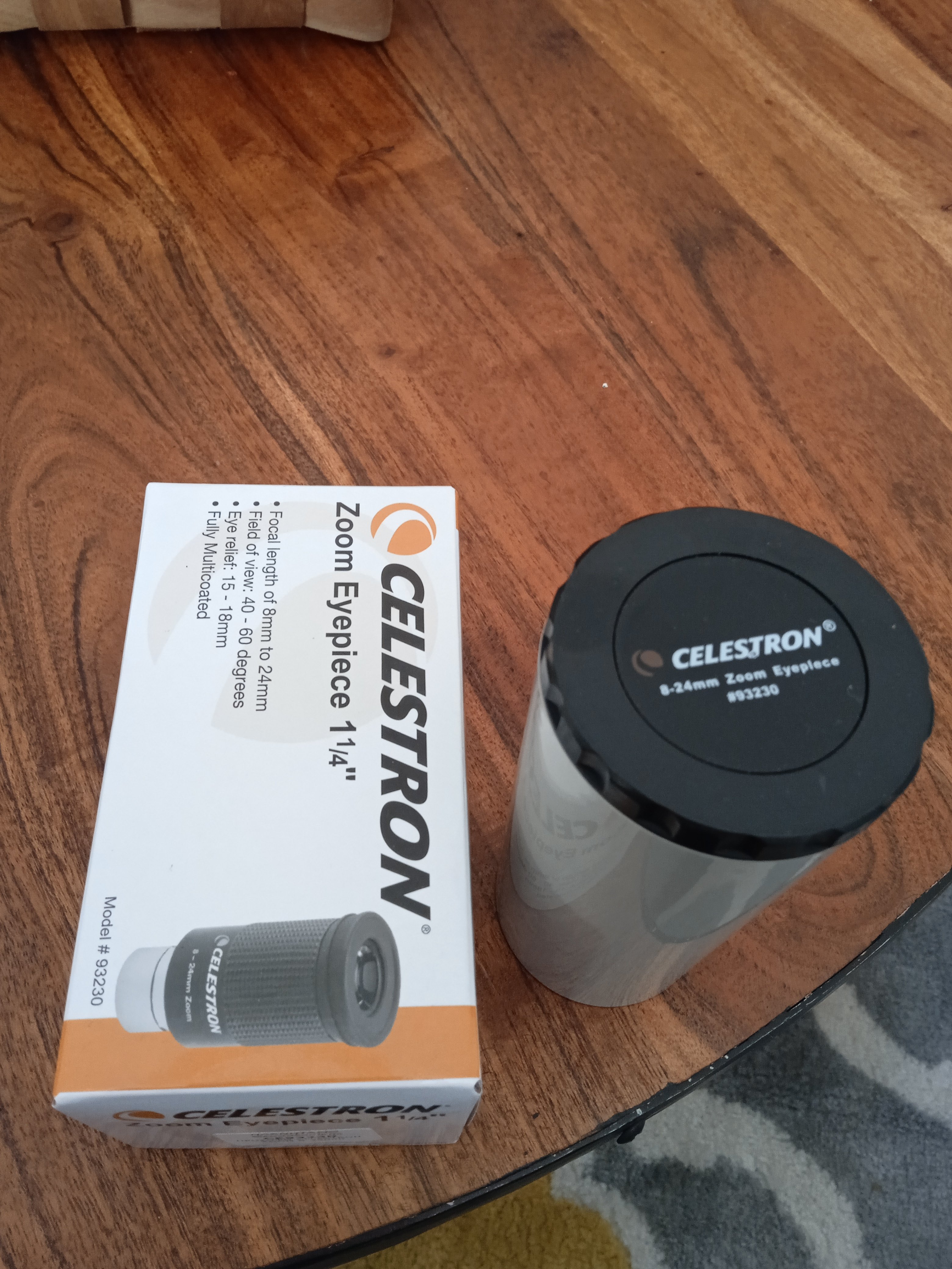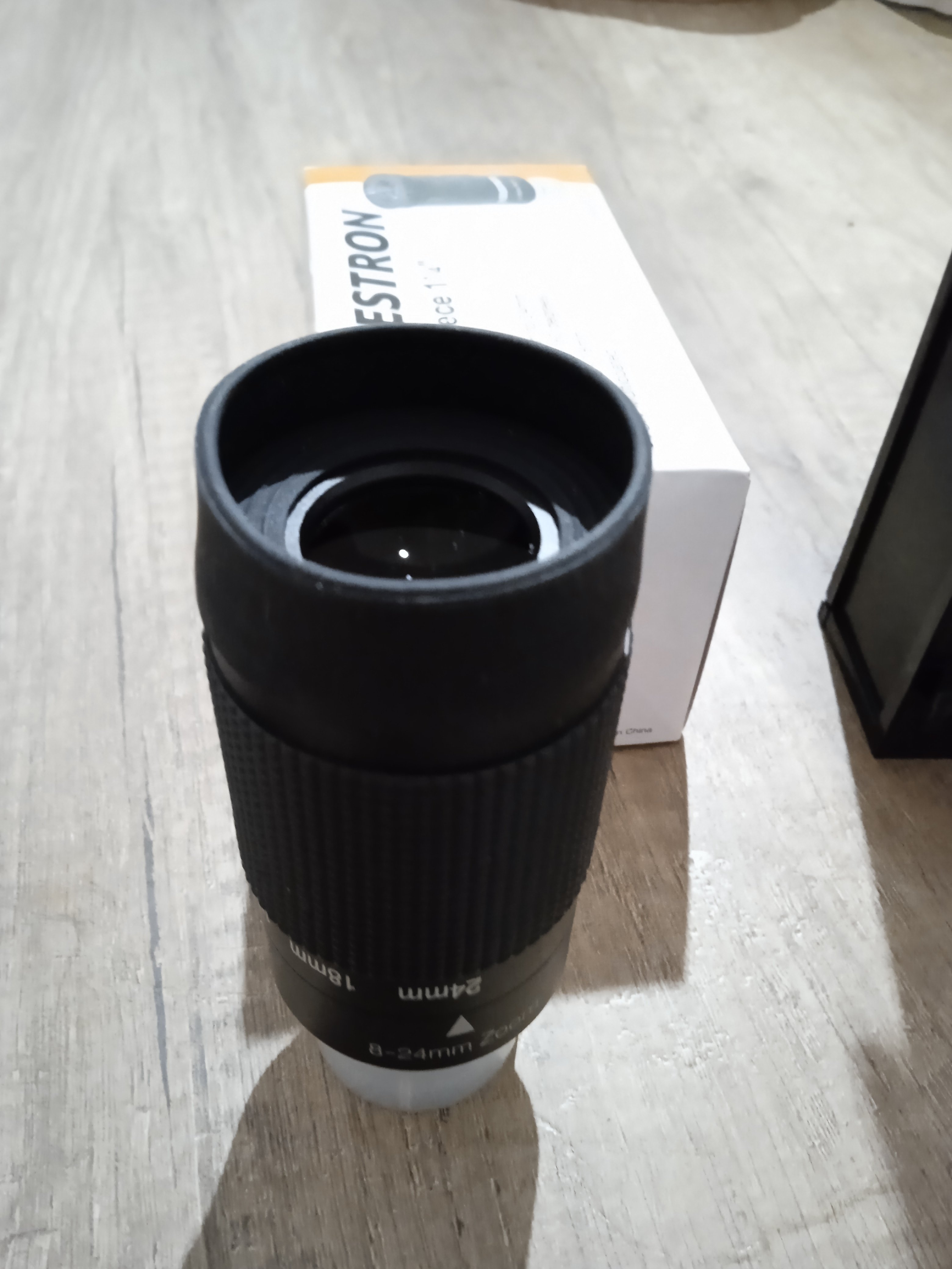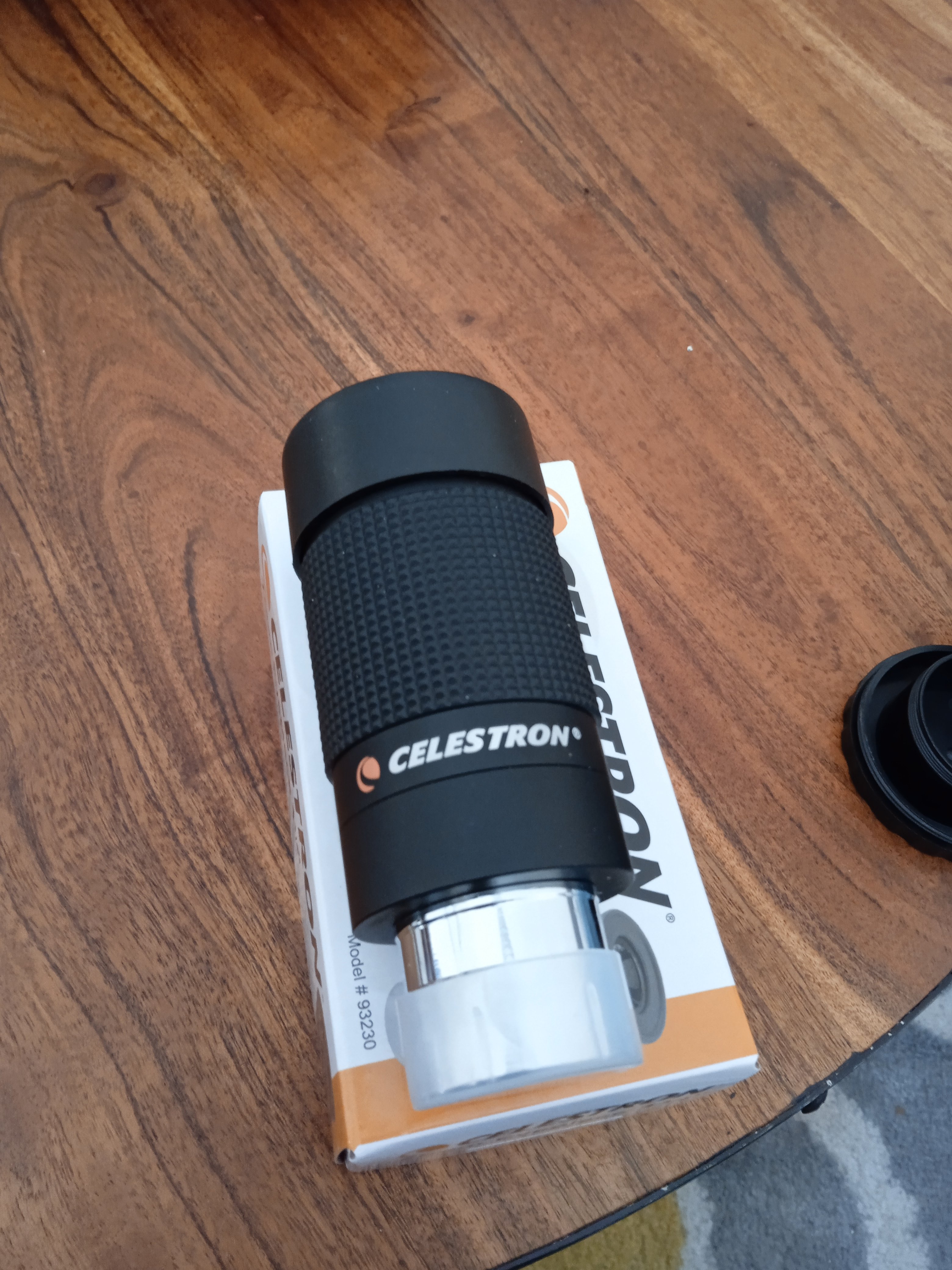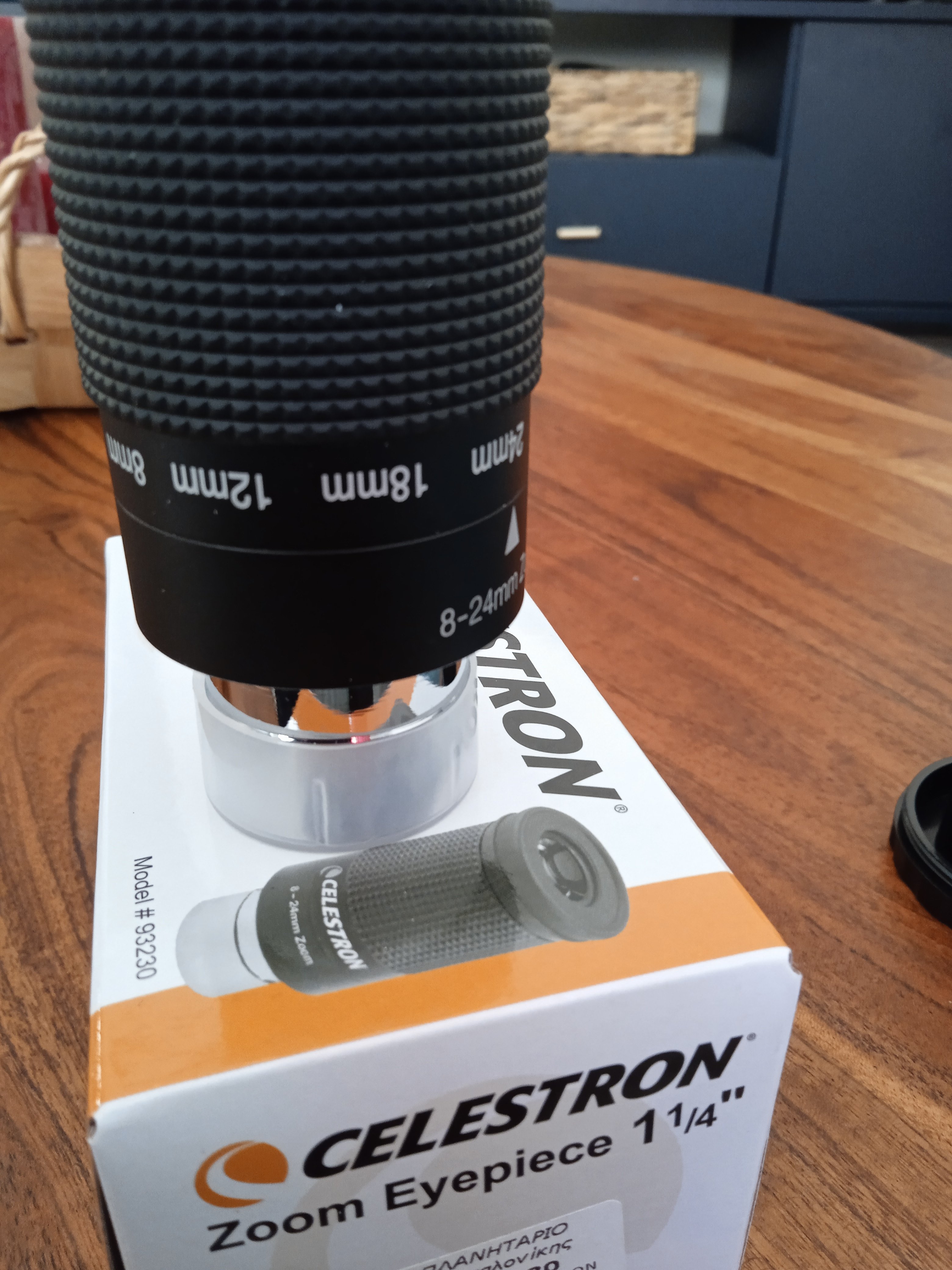 Πωλειται το πολυ καλο zoom eyepiece της celestron σαν καινουριο στο κουτι του μια φορα χρησιμοποιηθηκε αθικτο εξαιρετικη εικονα και ευκολια στην παρατηρηση καθως δε χρειαζεται να αλλαζουμε προσοφθαλμιο αφου εχουμε με αυτο ολες τις εστιακες με ανοιγμα 1.25 και προσαρμοζεται και με barlow για να διπλασιασουμε την μεγεθυνση επισης εχει σπείρωμα για να προσαρμοστει σε καμερες dslr
