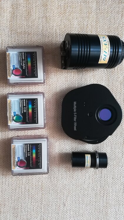 Πωλείται η ψυχώμενη mono ccd της Starlight-xpress SXV-H9, ίδια με την atik 314l, θεωρείται πως έχει καλύτερη ποιότητα κατασκευής από την atik. Εκπληκτικά καθαρή κάμερα, δεν χρειάζεται darks, ακόμα και στις θερμοκρασιες της Ελλάδας. Η ψύξη δουλεύει πάντα στο full, δεν έχει set-point, όπως και η 314L σε αντίθεση με την 314L+. Η κάμερα έχει σχετικά μικρό πεδίο σε σχέση με τις aps-c DSLR, αλλά όχι και πολύ μικρότερο από την εξαιρετική atik 460.