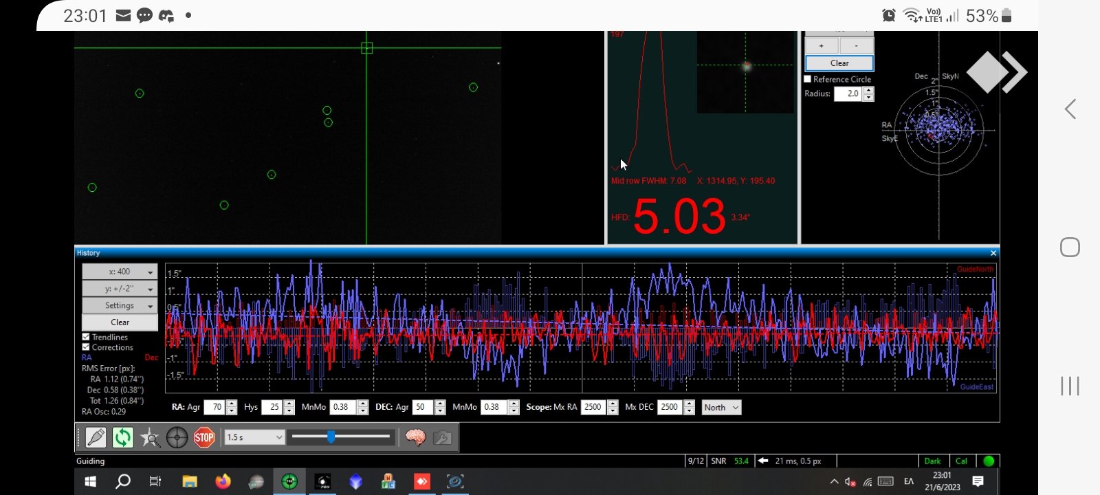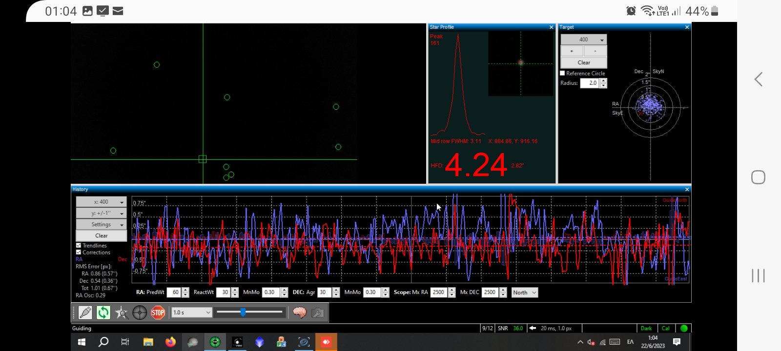Η στήριξη είναι σε εξαιρετική κατάσταση, δεν έχει μείνει έξω σε καιρικά στοιχεία και με την λίγη εμπειρία που έχω είναι ένα αντιπροσωπευτικό δείγμα αυτού του μοντέλου από άποψη επιδόσεων. Όσον αφορά στην συμπεριφορά της με οδηγητική, εγώ καταφέρνω να πάρω τα παραπάνω αποτελέσματα σε μία τυπική βραδιά από Αθήνα με oag στα 900mm.