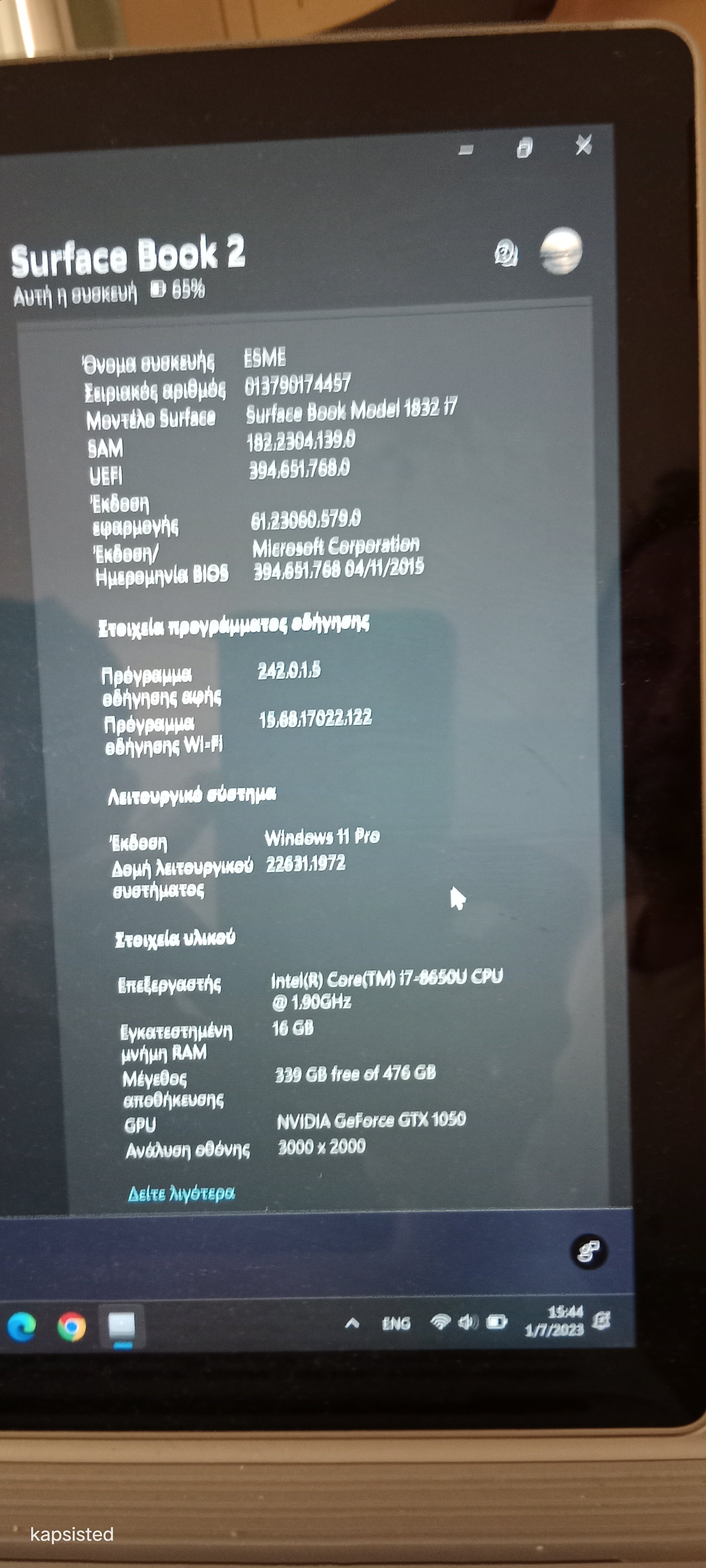 Πωλείται εκ μέρους φίλου το Παραπάνω laptop σε κατάσταση καινούριου. Το laptop έχει αποσπώμενη οθόνη με αυτόνομη μπαταρία,στην ουσία η συσκευή έχει 2 μπαταρίες, επίσης συνοδεύεται και από το πενάκι του. Χαρακτηριστικά και λεπτομέρειες μπορείτε να δείτε εδώ......https://support.microsoft.com/el-gr/surface/surface-book-2-προδιαγραφές-και-δυνατότητες-d752c78d-d1fc-c483-c80d-8343e68ad96b