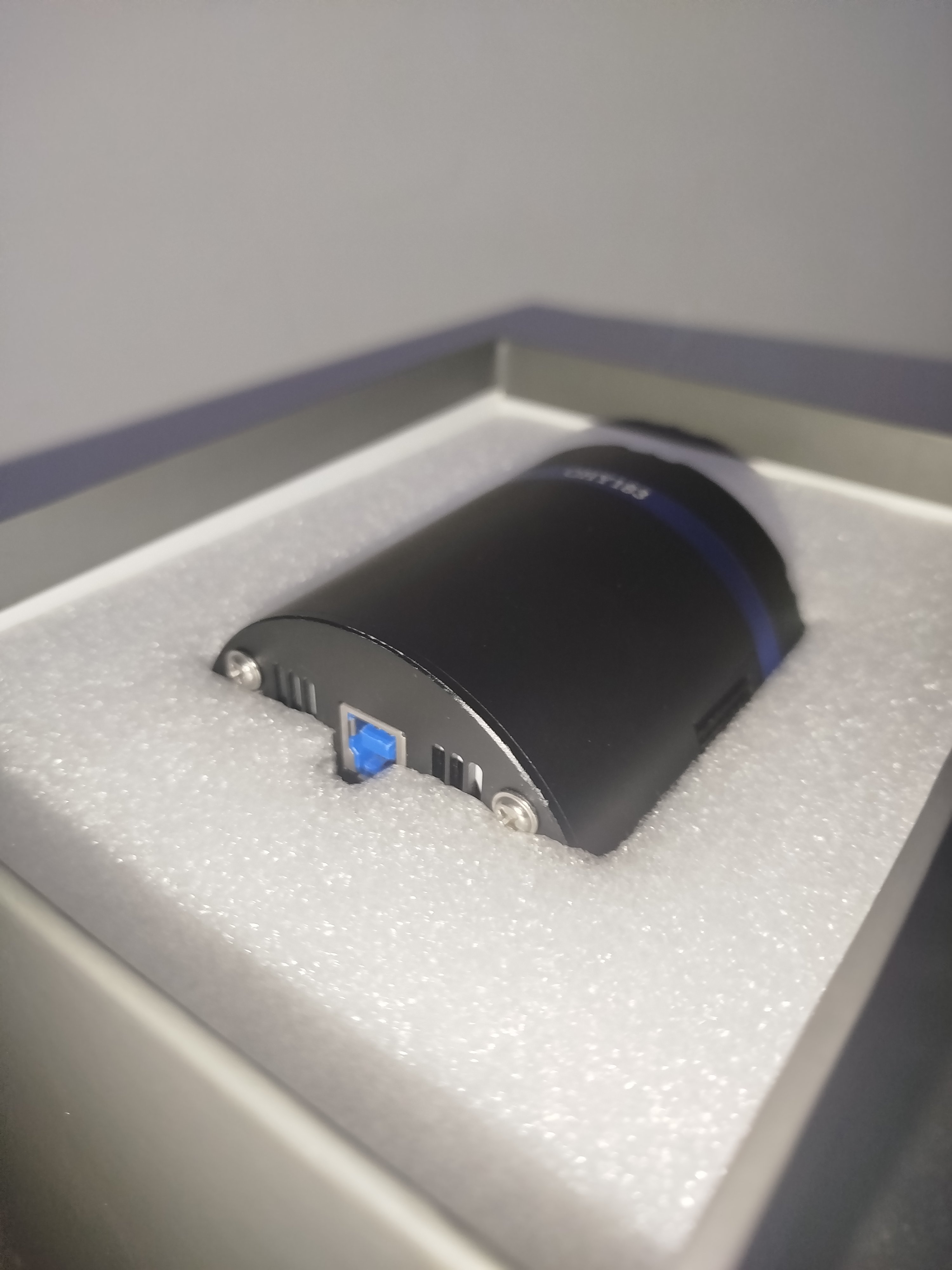 Πωλείται η CMOS QHY183, μονόχρωμη και ψυχώμενη, στο κουτί της με τα καλωδιά της.