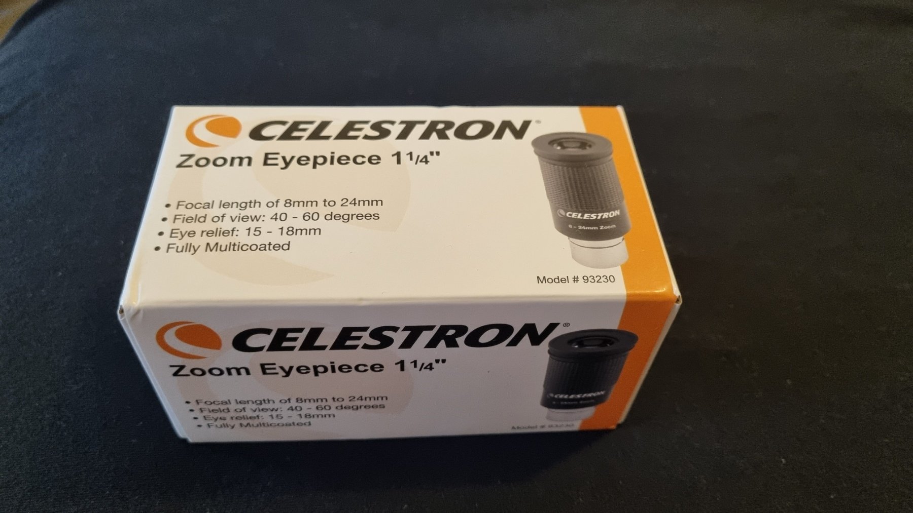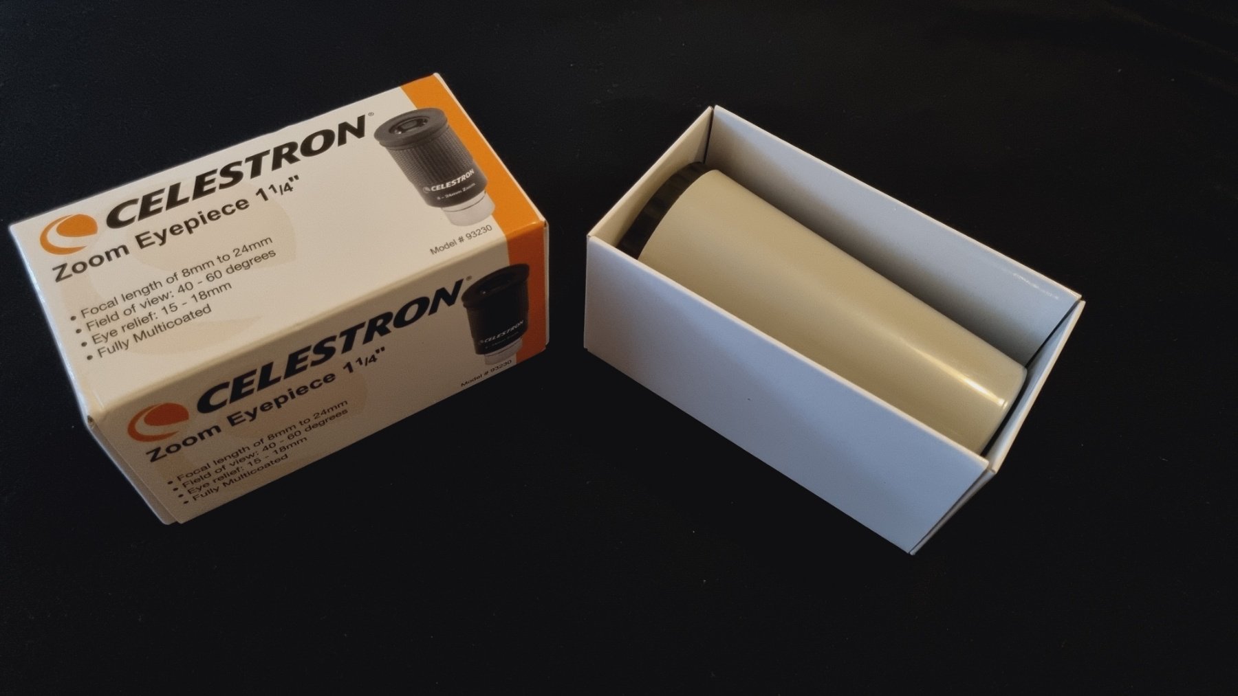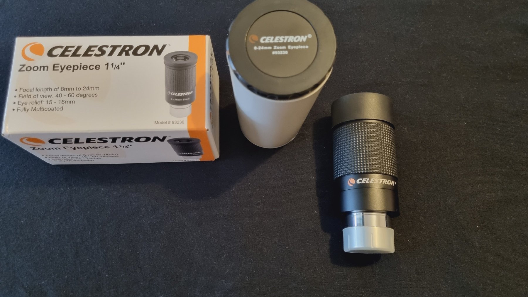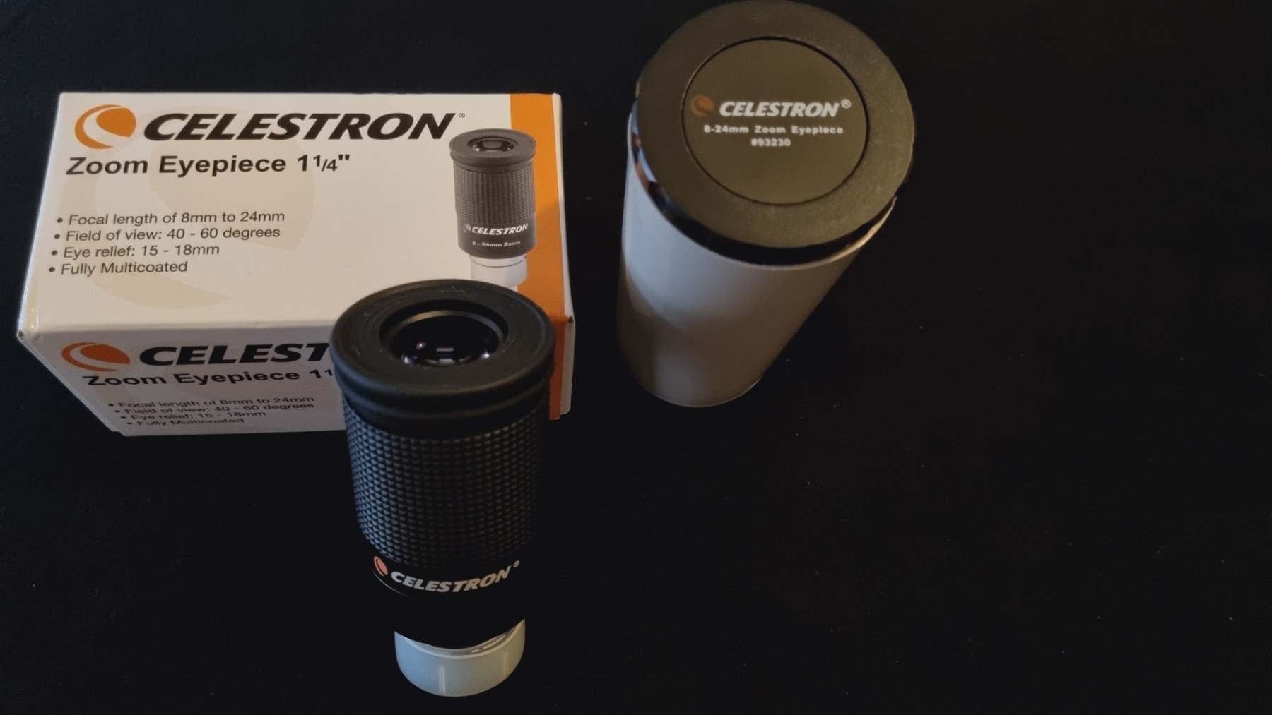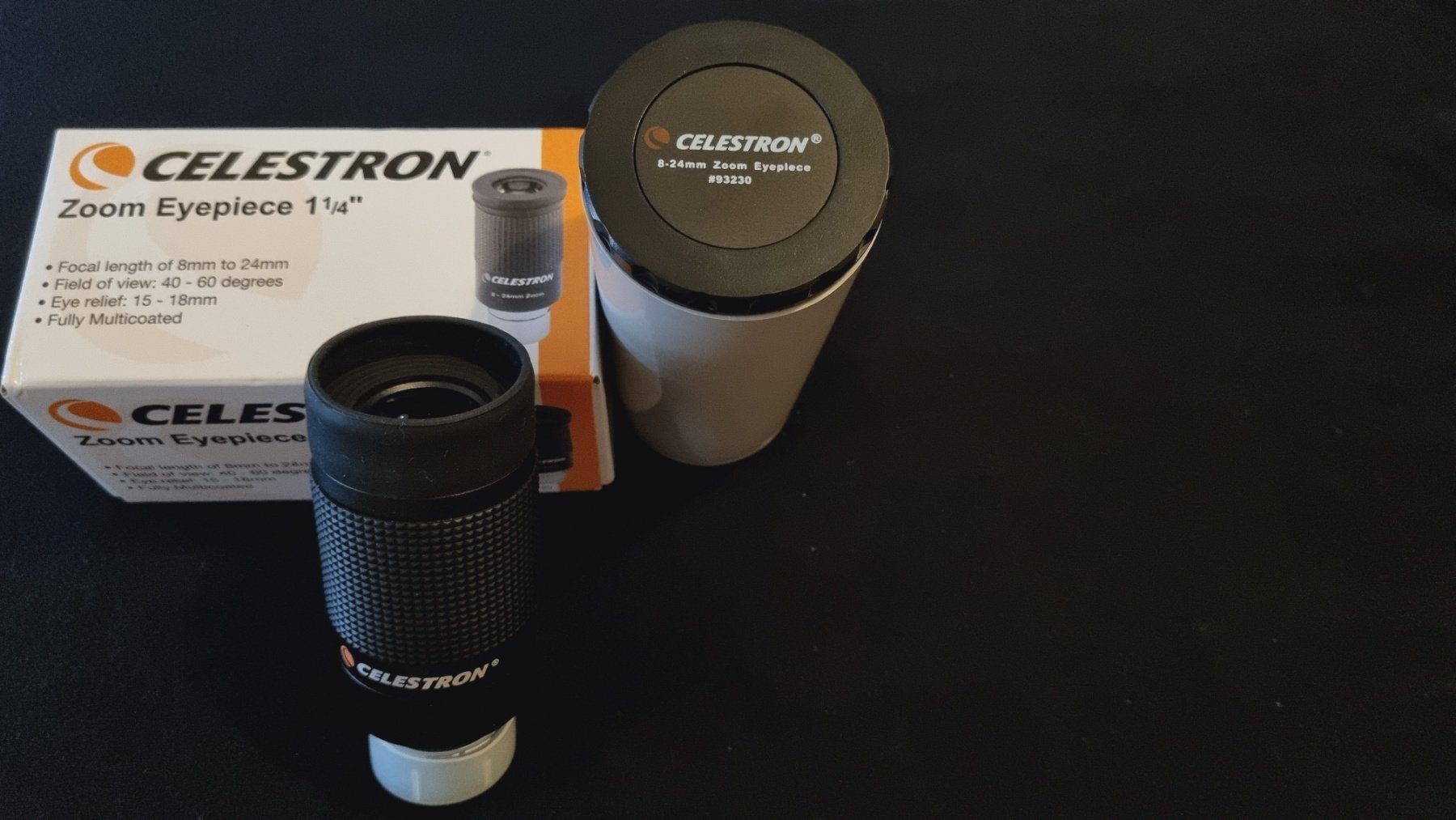 Celestron zoom σαν καινούργιος. Τον έχω χρησιμοποιήσει 2 φορές γιατί τελικά μου κάνανε δώρο έναν Hyperion zoom. Φοβερός για πλανήτες και Φεγγάρι και όχι μόνο. Αρκετά καλή προσθήκη για ένα τηλεσκόπιο.