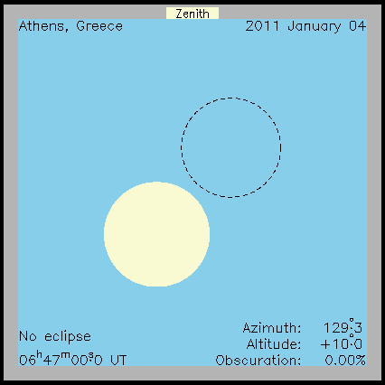 Την Τρίτη 04 Ιανουαρίου 2011 θα είναι απο την Ελλάδα ορατή μια πολύ καλή Μερική Έκλειψη Ηλίου