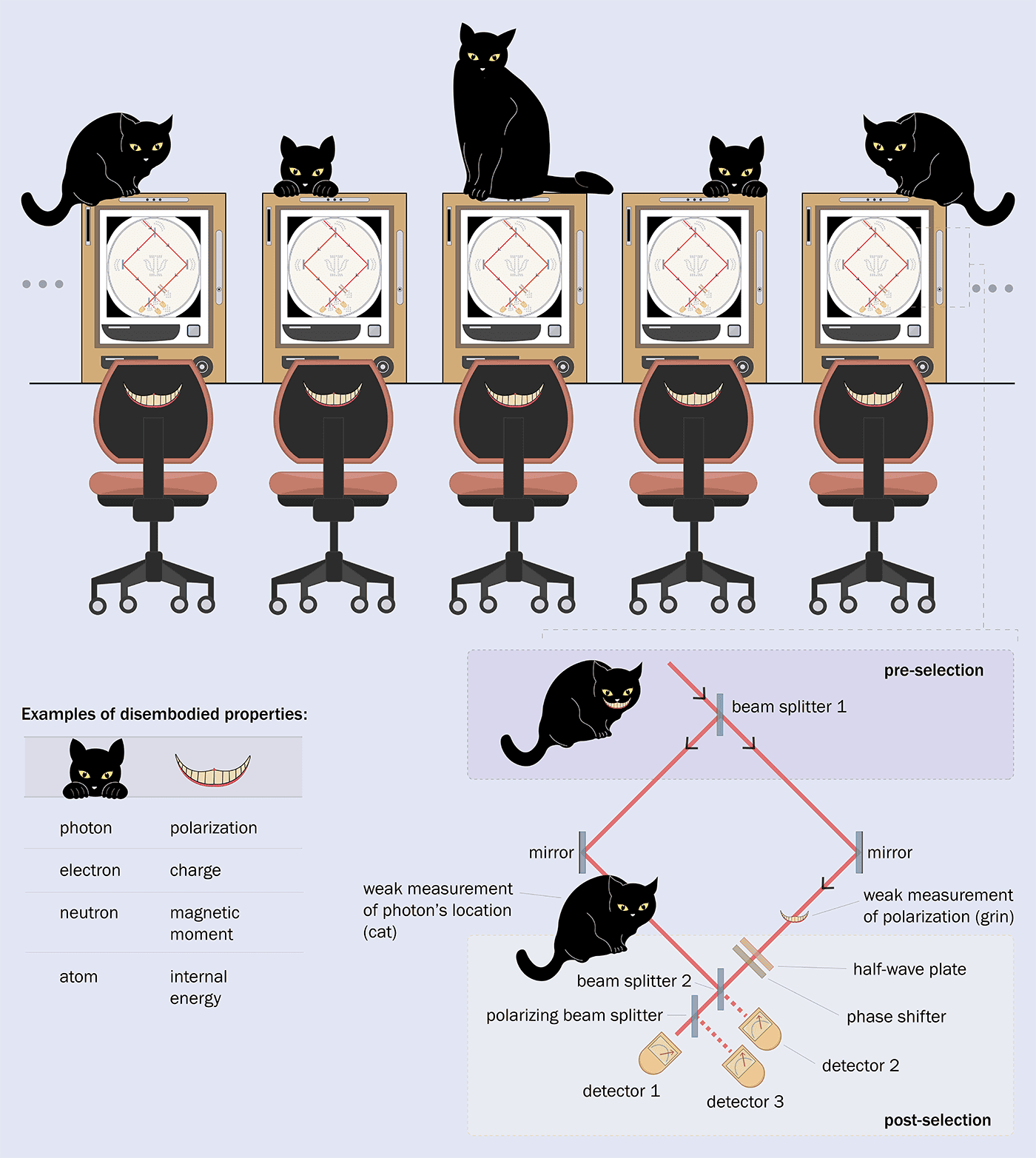 Δροσος Γεωργιος Δημοσιεύτηκε Νοέμβριος 16 Συγγραφέας Δημοσιεύτηκε Νοέμβριος 16 Ο κβαντικός γάτος του Τσέσαϊρ. Είναι δυνατόν μια ιδιότητα ενός σωματιδίου να βρίσκεται σε διαφορετική θέση από το ίδιο το σωματίδιο; Η πόλωση ενός φωτονίου, για παράδειγμα, θα μπορούσε να βρίσκεται σε ένα εντελώς διαφορετικό σημείο από το ίδιο το φωτόνιο; Αν κάτι τέτοιο είναι δυνατόν να πραγματοποιηθεί, τότε μιλάμε για το αμφιλεγόμενο φαινόμενο του κβαντικού γάτου του Τσέσαϊρ. Το όνομα προέρχεται από τον γάτο του Τσέσαϊρ (Cheshire) στο παραμύθι «Η Αλίκη στη χώρα των θαυμάτων» του Lewis Carroll, ο οποίος εξαφανιζόταν αφήνοντας πίσω μόνο το χαμόγελό του: «Εντάξει», είπε ο Γάτος· και αυτή τη φορά εξαφανίστηκε αρκετά αργά, ξεκινώντας από την άκρη της ουράς και τελειώνοντας με το χαμόγελο, το οποίο παρέμεινε αρκετή ώρα αφότου είχε εξαφανιστεί το υπόλοιπο σώμα. «Λοιπόν! Έχω δει συχνά μια γάτα χωρίς χαμόγελο», σκέφτηκε η Αλίκη, «αλλά ένα χαμόγελο χωρίς γάτα! Είναι το πιο περίεργο πράγμα που έχω δει ποτέ στη ζωή μου!»Δεν είναι περίεργο που η Αλίκη εκπλήσσεται. Στην πραγματική ζωή, υποθέτοντας ότι οι γάτες όντως χαμογελούν, το χαμόγελο είναι ιδιότητα της γάτας – δεν έχει νόημα να σκεφτόμαστε ένα χαμόγελο χωρίς γάτα. Και αυτό ισχύει για σχεδόν όλες τις φυσικές ιδιότητες. Για παράδειγμα, η πόλωση είναι ιδιότητα των φωτονίων. Δεν έχει νόημα να μιλάμε για πόλωση χωρίς φωτόνιο. Ωστόσο, όπως υποστήριξαν για πρώτη φορά οι Yakir Aharonov et al στη δημοσίευσή τους το 2013 με τίτλο Quantum Cheshire Cats (New J. Phys. 15 113015), η πόλωση των φωτονίων μπορεί να υπάρχει εκεί που δεν υπάρχει καθόλου φωτόνιο. https://validate.perfdrive.com/fb803c746e9148689b3984a31fccd902/?ssa=cb651fb1-9866-4d56-b10c-4a52773d71c0&ssb=20298228254&ssc=https%3A%2F%2Fiopscience.iop.org%2Farticle%2F10.1088%2F1367-2630%2F15%2F11%2F113015%3Futm_source%3Dresearchgate.net%26medium%3Darticle&ssi=cb9b65f4-cnvj-4584-b5b7-4a7ca94576f5&ssk=botmanager_support@radware.com&ssm=37889024410973630102535800605091&ssn=5b94ac72fba9d9f273f8721ee288a984fa18638b1373-ec66-48f9-bdbfbf&sso=897038af-aa76553c43cbdbf819db681b0ec033fb14aaa7899c9c4fae&ssp=20726927591763398924176334552819770&ssq=01627971236778140300512367424434836893699&ssr=MzEuMjE3LjE3My4x&sst=Mozilla/5.0 (Windows NT 10.0; Win64; x64) AppleWebKit/537.36 (KHTML, like Gecko) Chrome/142.0.0.0 Safari/537.36&ssu=&ssv=&ssw=&ssx=eyJfX3V6bWYiOiI3ZjkwMDA2MzhiMTM3My1lYzY2LTQ4ZjktYjhhZi1hYTc2NTUzYzQzY2IxLTE3NjMzMTIzNjc5NTUwLTAwMThmMTY4ZjhlMDMyMzZiNDUxMCIsInV6bXgiOiI3ZjkwMDA2NzI3MjYzNy1jNDk2LTQ2NWEtOTE2MS0wZTVlNGM2Yjc4OWYxLTE3NjMzMTIzNjc5NTUwLTlkMGUzYTQ0OGIwODFkMjAxMCIsInJkIjoiaW9wLm9yZyJ9 Πλέον ακούγεται βαρετό να λέμε ότι τα πράγματα είναι παράξενα στον κβαντικό κόσμο. Αλλά μπορούν να γίνουν πολύ πιο παράξενα, όταν η ιδιότητα ενός σωματιδίου φαίνεται να βρίσκεται σε διαφορετική θέση από το ίδιο το σωματίδιο, όπως η πόλωση ενός φωτονίου μπορεί να υπάρχει σε εντελώς διαφορετικό σημείο από το ίδιο το φωτόνιο· κι αυτό είναι μια κβαντική γάτα του Τσέσαϊρ.Αν και η προοπτική «ασώματων ιδιοτήτων» μπορεί να φαίνεται ανησυχητική, αποτελεί έναν τρόπο ερμηνείας των κομψών προβλέψεων της κβαντικής μηχανικής. Αυτή τουλάχιστον ήταν η σκέψη όταν οι Yakir Aharonov, Sandu Popescu, Daniel Rohrlich και Paul Skrzypczyk παρουσίασαν για πρώτη φορά τις κβαντικές γάτες του Τσέσαϊρ.Για να κατανοήσει κανείς την έννοια, πρέπει να θυμηθεί ότι μια μέτρηση σε κβαντικό σύστημα το «καταρρέει» σε μία από τις ιδιοκαταστάσεις του – όπως όταν ανοίγεις το κουτί και βρίσκεις τη γάτα του Σρέντινγκερ είτε νεκρή είτε ζωντανή. https://physicsgg.me/2013/08/18/το-παράδοξο-της-γάτας-του-schrodinger-ι/ Ωστόσο, παίζοντας μεταξύ του βαθμού παρεμβατικότητας της μέτρησης και της αβεβαιότητας του αποτελέσματος, μπορεί κανείς να αποσπάσει ελάχιστη πληροφορία διαταράσσοντας ελάχιστα το σύστημα. Αν μια τέτοια μέτρηση επαναληφθεί πολλές φορές ή σε σύνολο σ