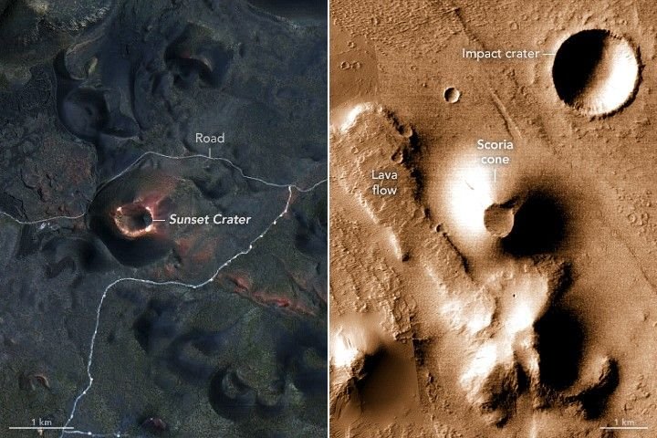 Δροσος Γεωργιος Δημοσιεύτηκε 46 λεπτά πριν Συγγραφέας Δημοσιεύτηκε 46 λεπτά πριν Κώνοι σκωρίας στη Γη και τον Άρη. Από τη δεκαετία του 1970, οι πλανητικοί γεωλόγοι γνωρίζουν ότι τα ηφαιστειακά χαρακτηριστικά καλύπτουν μεγάλες εκτάσεις του Άρη. Οι πρώτες εικόνες του Mariner 9 αποκάλυψαν τεράστια ηφαίστεια ασπίδας και πεδιάδες λάβας σε μια κλίμακα που δεν έχει ξανασυμβεί στη Γη. Το όρος Όλυμπος , το ψηλότερο ηφαίστειο στο ηλιακό σύστημα, βρίσκεται σχεδόν τρεις φορές ψηλότερα από το Έβερεστ. Το όρος Άλμπα Μονς , το ευρύτερο ηφαίστειο του πλανήτη, εκτείνεται σε απόσταση συγκρίσιμη με το μήκος των ηπειρωτικών Ηνωμένων Πολιτειών.Τόσο το Όλυμπος Μονς όσο και το Άλμπα Μονς σχηματίστηκαν κυρίως από βασαλτικές εκρήξεις — σχετικά ήρεμες εκρήξεις «ρευστών» λάβων που εξαπλώθηκαν στην επιφάνεια σε στρώματα. Αυτός θεωρείται ο πιο συνηθισμένος τύπος ηφαιστειακής δραστηριότητας στον Άρη, που ευθύνεται για τη συντριπτική πλειοψηφία των ηφαιστειακών γεωμορφών του. Ωστόσο, ένα μικρό μέρος προήλθε από εκρηκτική ηφαιστειακή δραστηριότητα του είδους που σχηματίζει ηφαιστειακούς κώνους , πυροκλαστικές ροές και κατακρημνίσεις τέφρας .Η έλλειψη εκρηκτικών ηφαιστειακών χαρακτηριστικών στον Άρη απασχολεί εδώ και καιρό τους γεωλόγους. Με μέση ατμοσφαιρική πίεση 160 φορές χαμηλότερη από αυτή της Γης και μόνο το ένα τρίτο της βαρύτητας, οι εκρηκτικές εκρήξεις θα έπρεπε θεωρητικά να συμβαίνουν πιο εύκολα στον Κόκκινο Πλανήτη, δήλωσε ο Petr Brož, πλανητικός γεωλόγος της Τσεχικής Ακαδημίας Επιστημών. Αυτή η σπανιότητα είναι μέρος αυτού που καθιστά χαρακτηριστικά όπως οι ηφαιστειακοί κώνοι (που φαίνονται παραπάνω) που βρίσκονται στην περιοχή Ulysses Colles του Άρη τόσο συναρπαστικά για τους πλανητικούς γεωλόγους.«Φαίνονται να είναι κώνοι σκωρίας — ένα σαφές σημάδι εκρηκτικής ηφαιστειακής δραστηριότητας», πρόσθεσε ο Μπροζ. «Ήταν οι πρώτοι που εντοπίστηκαν στην περιοχή Θαρσίς τη δεκαετία του 2010 και βοήθησαν να σχηματιστεί μια ευρύτερη και πιο ολοκληρωμένη εικόνα της ηφαιστειακής δραστηριότητας στον Άρη».Η κάμερα CTX (Context Camera) στο Mars Reconnaissance Orbiter της NASA κατέγραψε αυτήν την εικόνα (δεύτερη εικόνα παραπάνω) του Ulysses Colles στις 7 Μαΐου 2014. Το Ulysses Colles βρίσκεται στο νότιο άκρο των Ulysses Fossae , μιας ομάδας κοιλάδων εντός της ηφαιστειακής περιοχής Tharsis .Το OLI (Operational Land Imager) στο Landsat 8 κατέγραψε μια εικόνα με παρόμοιους κώνους στο ηφαιστειακό πεδίο του Σαν Φρανσίσκο (SFVF) στη βόρεια Αριζόνα στις 19 Ιουνίου 2025 (πάνω). Οι πλανητικοί γεωλόγοι θεωρούν τους κώνους στις δύο τοποθεσίες πολύ παρόμοιους. Και οι δύο εικόνες περιλαμβάνουν επίσης γκρεμπέν - γραμμικά μπλοκ φλοιού που έχουν μετατοπιστεί προς τα κάτω.Και στις δύο εικόνες, οι κώνοι σκωρίας εμφανίζονται ως στρογγυλεμένοι λόφοι που στέφονται με κυκλικές οπές, ενώ οι ροές λάβας εξαπλώνονται προς τα έξω ως σκούρες, ανάγλυφες περιοχές γύρω από τις βάσεις των κώνων. Και στις δύο τοποθεσίες, φαινομενικά νεότερες και μικρότερες ροές λάβας φαίνεται να ξεχύνονται από ορισμένους κώνους, ενώ παλαιότερες, πιο φθαρμένες ροές βρίσκονται στο φόντο.«Η κατανόηση παρόμοιων χαρακτηριστικών στη Γη μας βοηθά να γνωρίζουμε τι να αναζητήσουμε στον Άρη και να ερμηνεύσουμε διεργασίες που δεν μπορούμε να παρατηρήσουμε άμεσα», δήλωσε ο Πάτρικ Γουέλι, ηφαιστειολόγος της NASA, ο οποίος είναι μέλος μιας ομάδας που αναπτύσσει εξοπλισμό πεδίου και τεχνικές για την εξερε