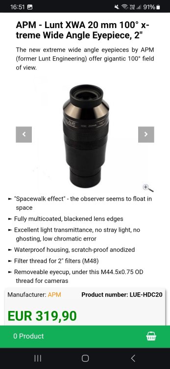 konstasd Δημοσιεύτηκε Σεπτέμβριος 15, 2018 Δημοσιεύτηκε Σεπτέμβριος 15, 2018 Καλησπέρα,έχει κανείς χρησιμοποιήσει το προσοφθαλμιο αυτό; Διαβάζω πολύ καλές κριτικές για τις επιδόσεις του σε ξένα φόρα και φαίνεται να έχει δελεαστική τιμή... Κάποια γνώμη ή εμπειρία για το πως θα συμπεριφέρεται σε ένα νευτώνειο 10" F4.7; https://www.apm-telescopes.de/en/eyepieces/more-74-ultra-wide-angle/apm-lunt-eyepieces/apm-hdc-xwa-20-mm-100-eyepiece.html