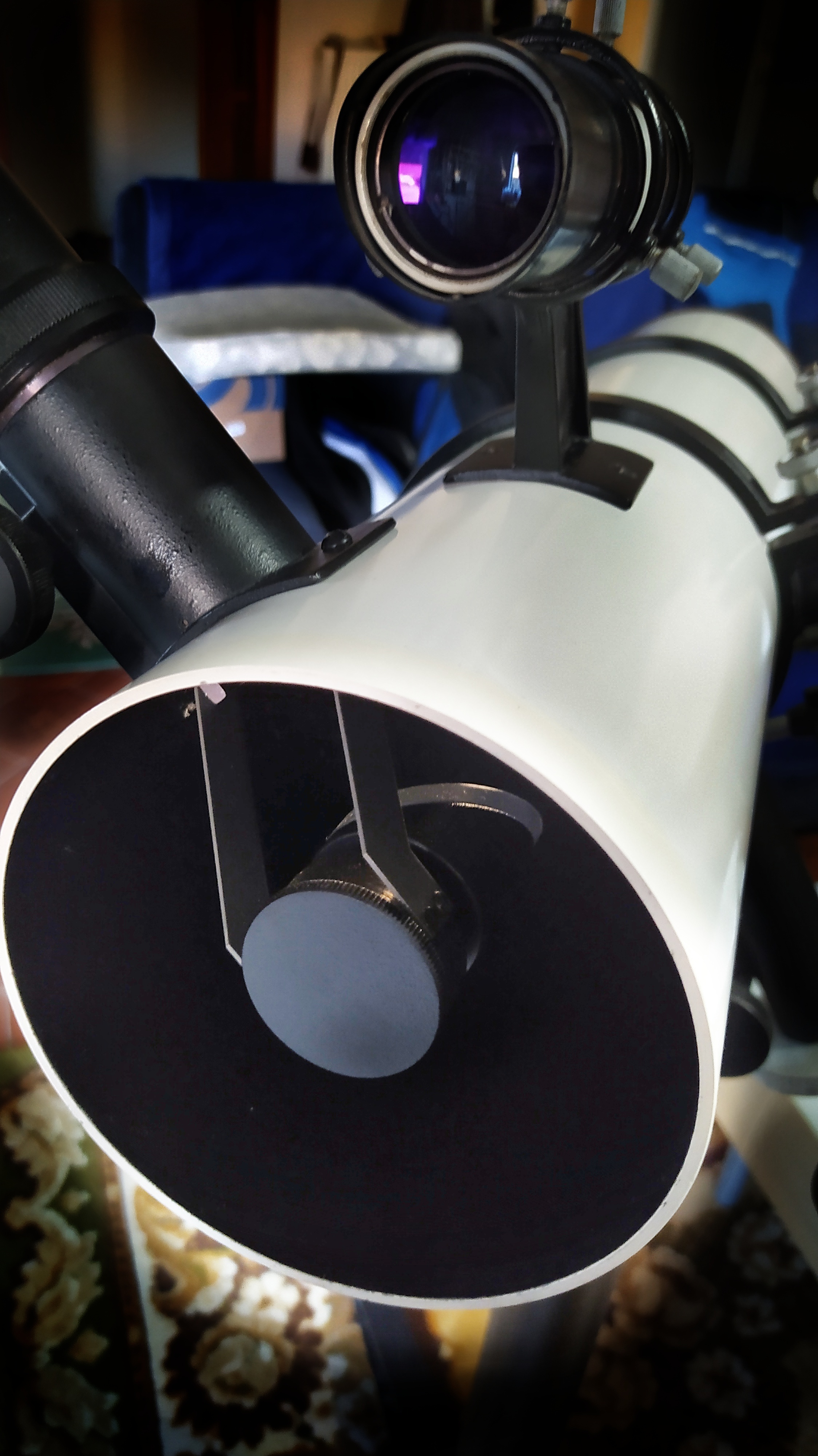 Sagitarius Δημοσιεύτηκε Ιανουάριος 22, 2021 Συγγραφέας Δημοσιεύτηκε Ιανουάριος 22, 2021 Είναι από αυτοκόλλητη ταινία Avery. Επειδή είναι σημασμένο το κέντρο του κύκλου, μάλλον ήθελε να το προσαρμόσει με μια τρύπα στο κέντρο, όπως κάνουμε στα φιλμόκουτα, για ευθυγράμμιση. Το φιλμόκουτο όμως είναι διαμέτρου 1.25" και βολεύει. Ομως από ότι φαίνεται δεν το έκανε ποτέ. Το θέμα με το τηλεσκόπιο αυτό ειναι ότι ο κύριος καθρέπτης ειναι fixed μόνο γυρίζει πατώντας στον οδηγό ενω οι λάμες που το πιέζουν είναι και αυτές χωρίς ρύθμιση. Το δευτερεύον ειναι επίσης συνδεδεμένο με τον εστιαστή αλλα αυτό έχει τις βίδες για μικροκινησεις και τη κεντρική βέβαια που χαλαρώνει για να περιστραφεί. Πολυ εύκολα το κεντραρα να βλέπει τους 3 συγκρατητές του κύριου καθρέπτη. Μετα κοιτώντας με το μάτι και τις τρεις βίδες να μην φαίνεται καθόλου πλαϊνό τμήμα. Αυτο δε ξερω αν σημαίνει και πολλά πολλά άλλα οι επιγειοι στόχοι φαίνονται καθαροί από άκρο εις άκρο. Τ ρα τι να κάνω να φτιάξω τη τρυπιτσα και και ενα δακτύλιο γύρω της με ανάκλαση? Ενα washer πχ και να κεντραρω το Σείριο πχ ή να παρω laser? Το defocus αστεριών χωρίς τίποτε από ολα αυτά οταν ειναι κύκλος ειναι ασφαλής ένδειξη?