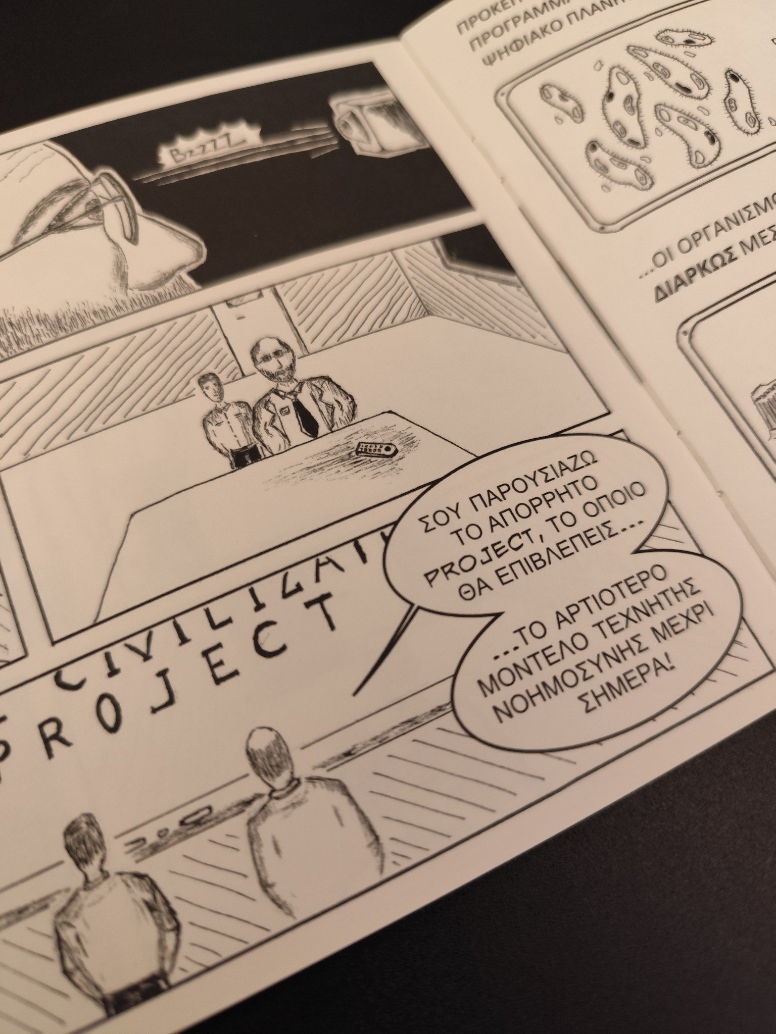 ASTRONOMOS1 Δημοσιεύτηκε Τετάρτη στις 03:01 PM Δημοσιεύτηκε Τετάρτη στις 03:01 PM Καλησπέρα σε όλους! Με μεγάλη χαρά θα ήθελα να μοιραστώ μαζί σας τους "Διάττοντες Αστέρες", την πρώτη αυτοέκδοση κόμικ μου, την οποία σχεδίασα με πολύ μεράκι. Η μεγάλη αγάπη για την αστρονομία, οι βραδινές υπαρξιακές ανησυχίες και οι ατέρμονες συζητήσεις περί τεχνητής νοημοσύνης οδήγησαν στη γέννηση του φιλοσοφικού αυτού κόμικ. Λίγα λόγια για το κόμικ: Τι κοινό έχει η ανθρώπινη ζωή με ένα πεφταστέρι; Πως θα αντιδρούσες αν μάθαινες ότι ζούμε σε προσομοίωση; Τι σημαίνει να είναι κανείς ελεύθερος; Οι "Διάττοντες Αστέρες" (ή αλλιώς "Πεφταστέρια") εξερευνούν το μυστήριο της ζωής και προβληματίζονται γύρω από το νόημα της ανθρώπινης ύπαρξης. Πληροφορίες: Διαστάσεις: 20.5cm x 14.8cm Τύπος Χαρτιού: Βιοδιασπώμενο χαρτί υψηλής ποιότητας, φιλικό προς το περιβάλλον (Old Mill 190gr - FSC certified) Σενάριο-Σχέδιο-Επιμέλεια: Δημήτρης Κύρου Όσοι ενδιαφέρεστε μπορείτε να το παραγγείλετε στον παρακάτω σύνδεσμο: https://ko-fi.com/s/fba8137559 Όσοι το διαβάσετε θα χαρώ πολύ να μου δώσετε το ειλικρινές σας feedback σε κάποιον από τους λογαριασμούς μου στα social media, είτε στο mail μου: https://linktr.ee/sketchstories 1