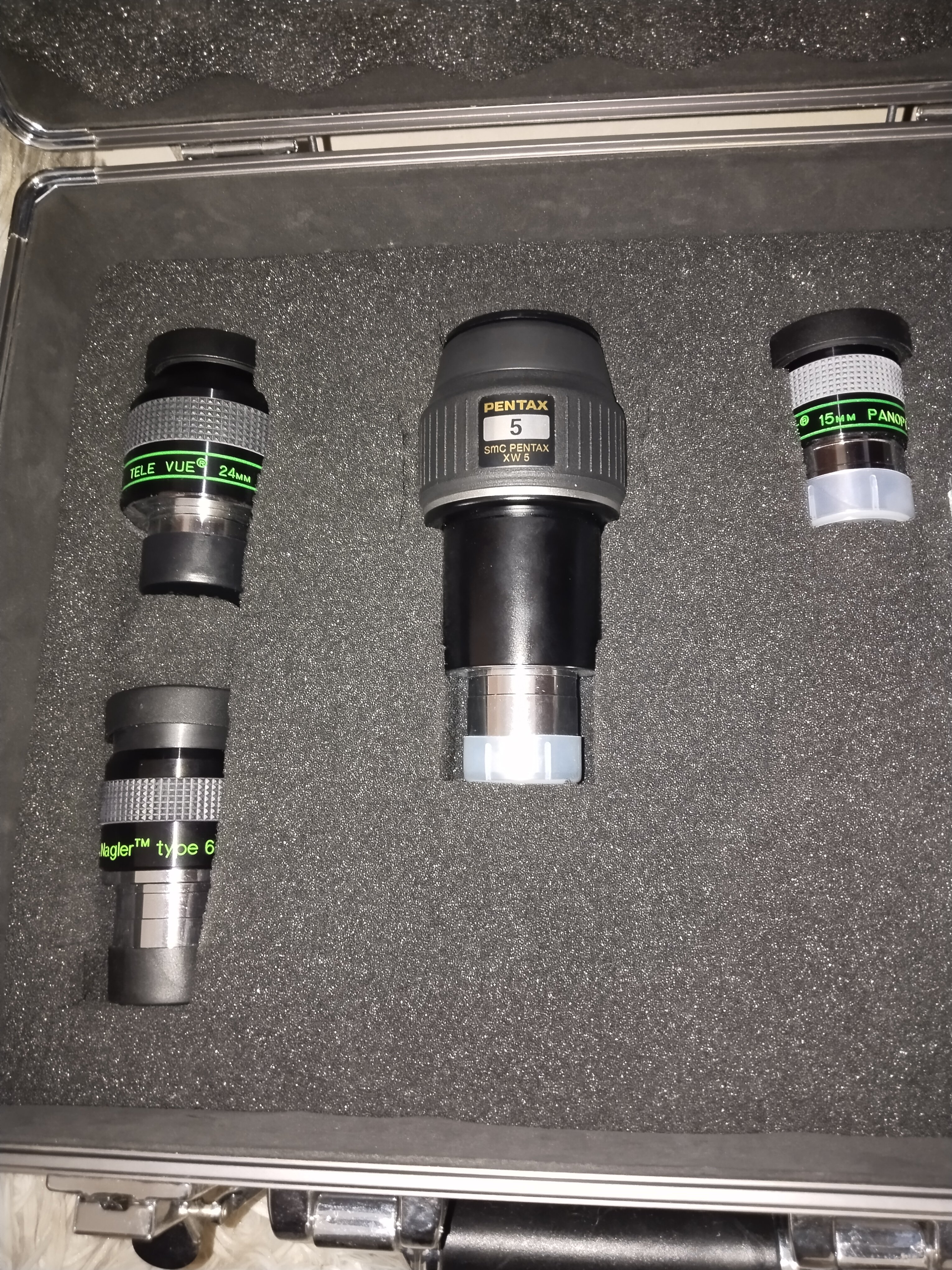 seirios14 Δημοσιεύτηκε 3 ώρες πριν Δημοσιεύτηκε 3 ώρες πριν (επεξεργάστηκε) Πωλούνται τα πιο κάτω προσοφθάλμια: Tele Vue Nagler Type 6 – 11 mm Pentax XW – 5 mm Tele Vue Panoptic – 24 mm Tele Vue Panoptic – 15 mm Επίσης πωλείται μαζί με τα άνωθεν τηλεσκόπιο 6" sky watcher κατοπτρικό με την ισημερινή στήριξη. Όλα μαζί 1200€. Δώρο και η βαλίτσα που φαίνεται στη φωτογραφία καθώς και 2 φίλτρα Σελήνης και πλανητών. Έχουν αγοραστεί πριν 20 χρόνια αλλά φυλάσσονταν πολυ καλά. Με ενδιαφέρει να τα δώσω όλα μαζί. Ευχαριστώ! Το επεξεργάστηκε 3 ώρες πριν ο seirios14 Φιλικά, Λεωνίδας